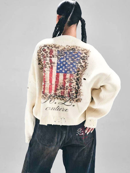 REGEN ZONE | Leopard Print Navy Flag Cardigan