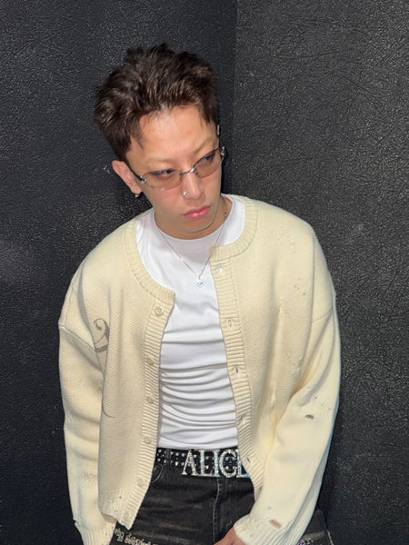 REGEN ZONE丨「RIOT」フォグホワイト ダメージ加工スエード クロップドパンツ