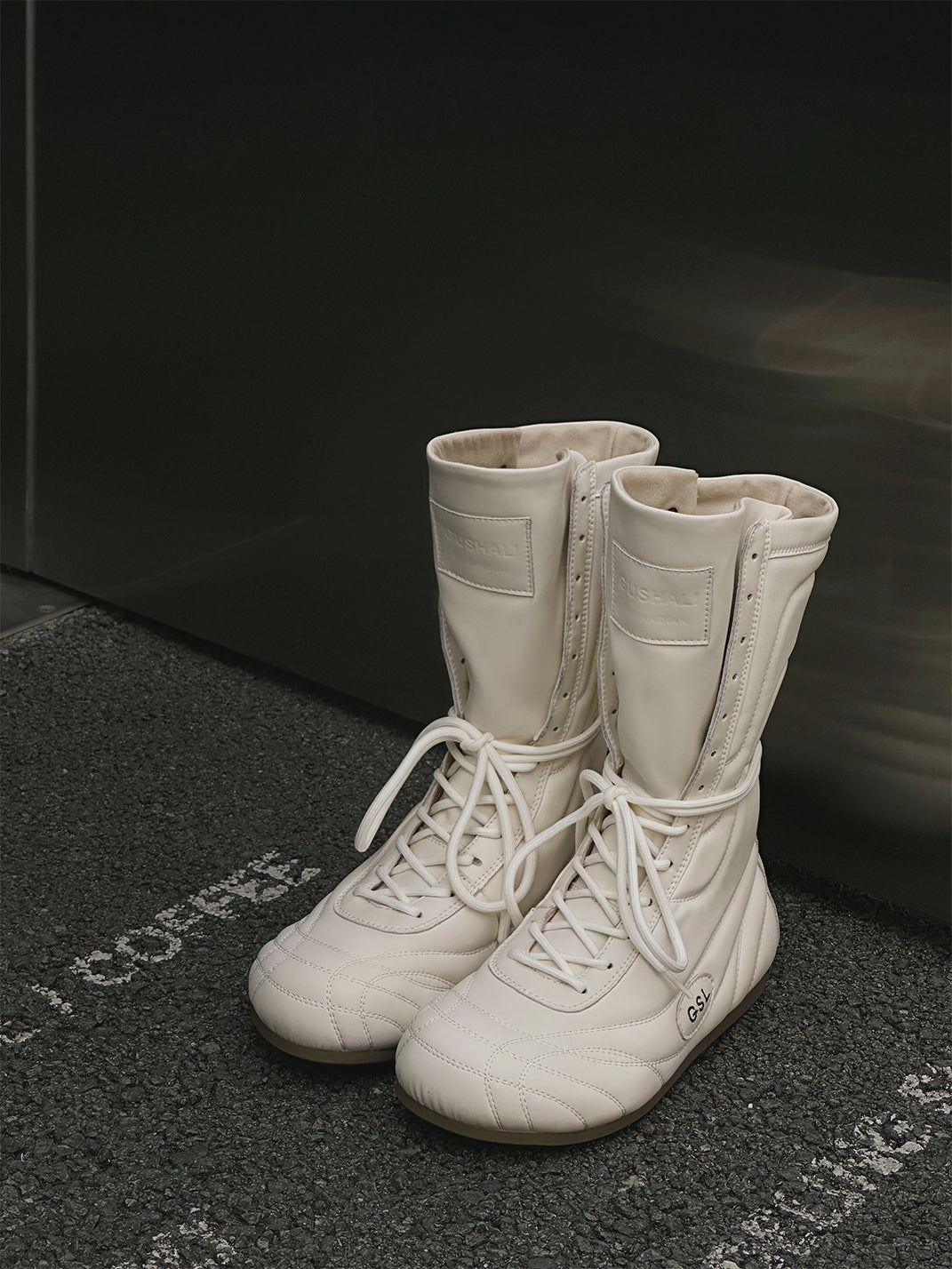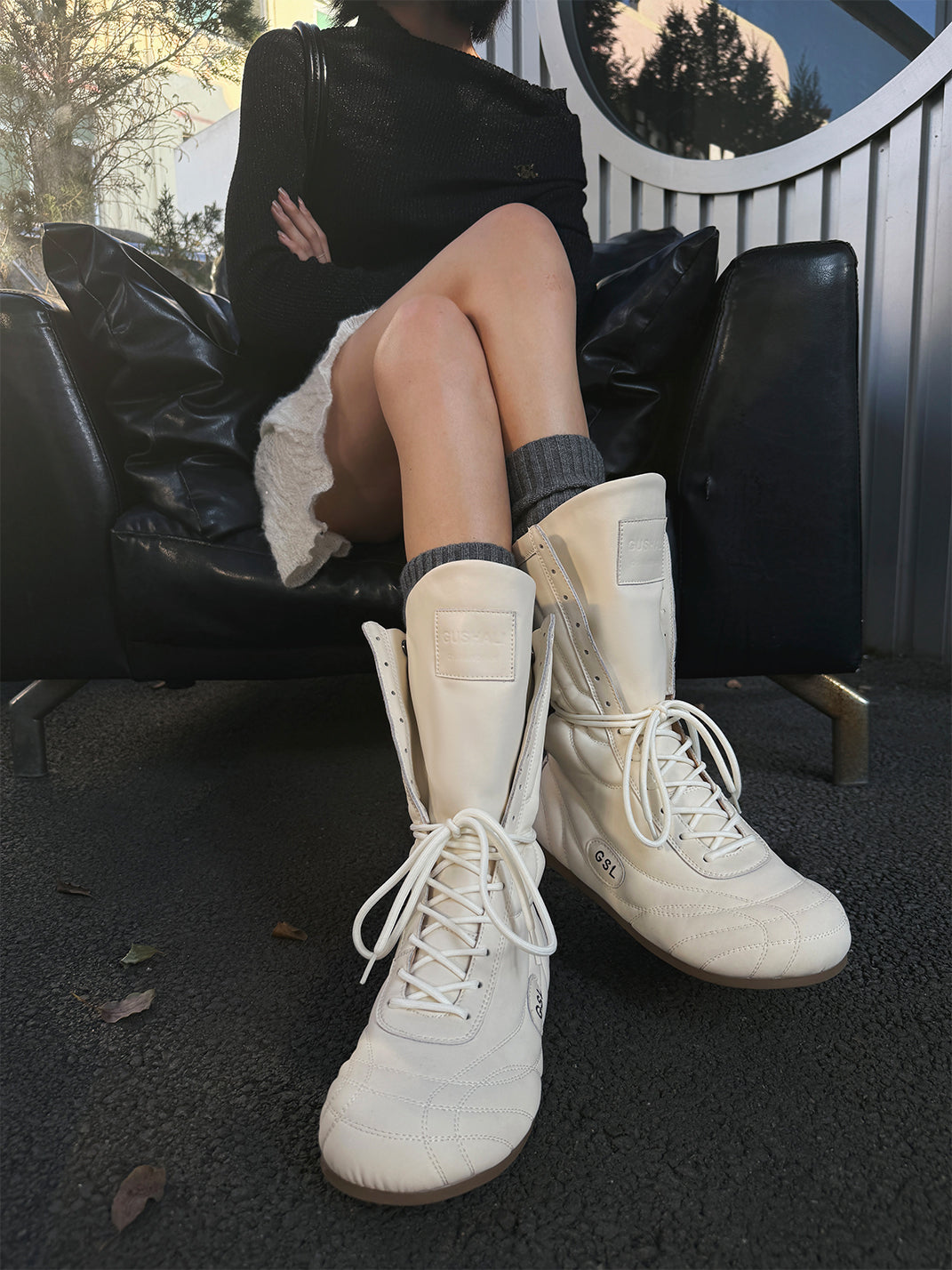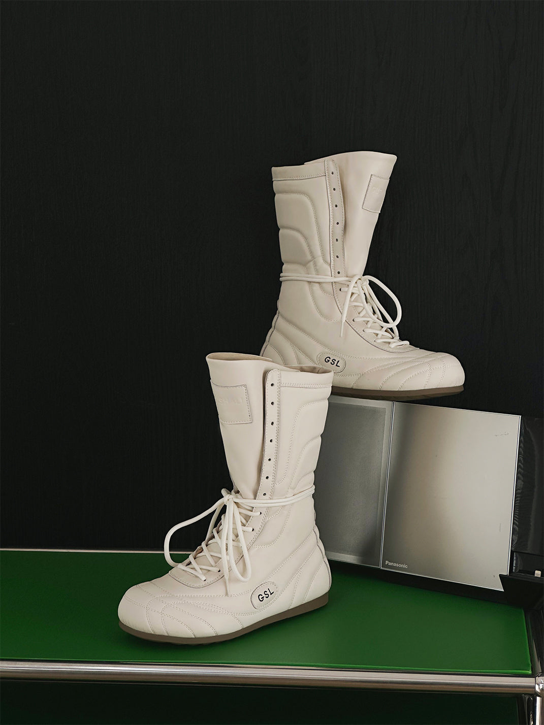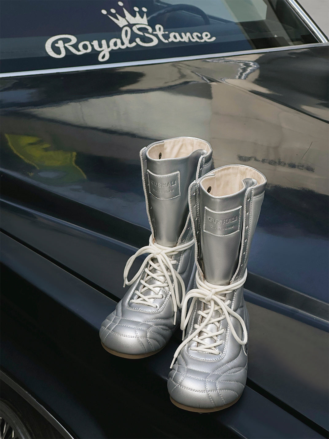 Design Concept: Inspired by the classic military heritage of the German Training Shoe (Deutsch Training Shoe) and the dynamic spirit of American street sports, this high-top women’s sneaker merges three worlds: the functional support of boxing boots, the retro last proportions of Bourbon shoes, and the timeless silhouette of GATs. The result is a bold, vintage-meets-athletic design that delivers both performance and attitude—crafted for urban women who demand the perfect balance of sport functionality and fashion statement.