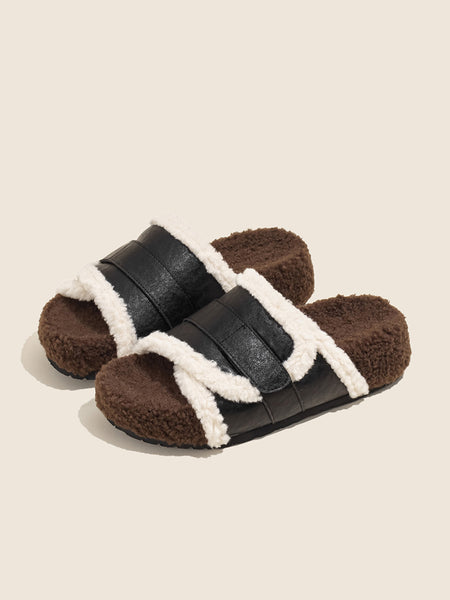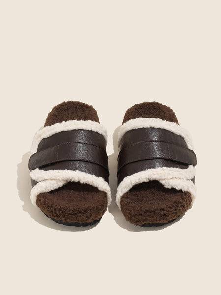OLDMEOW | Retro Brown Fuzzy Slide Sandals
