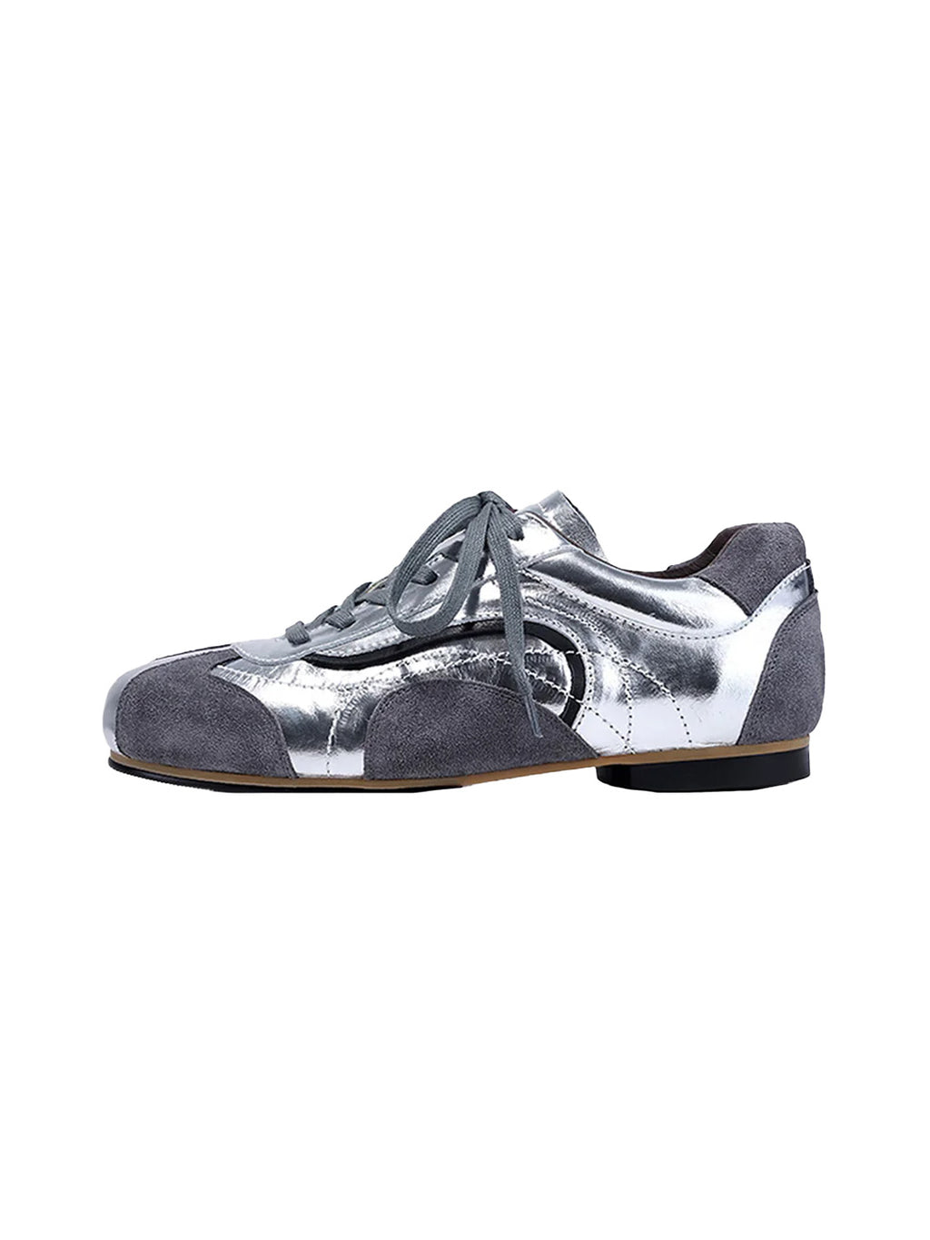 BellaLily丨レザーパネルミニマリストトレーニングシューズ-ホワイト&グレー