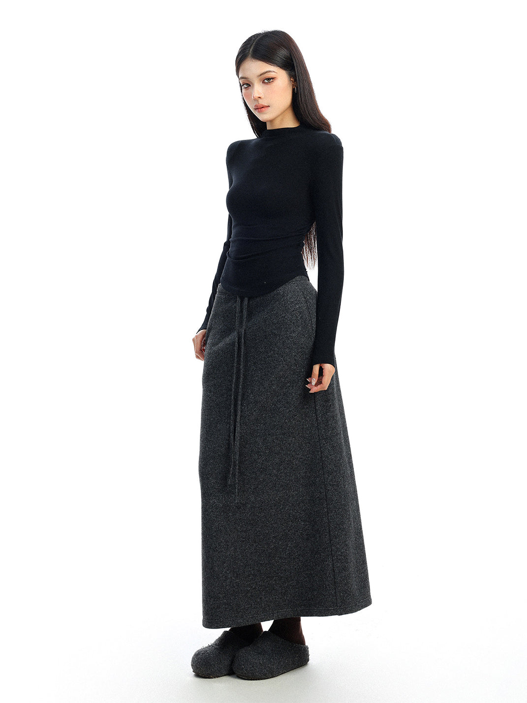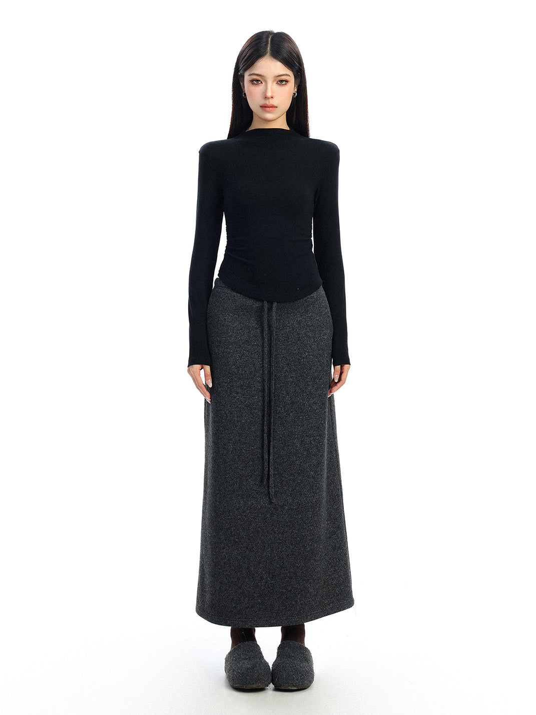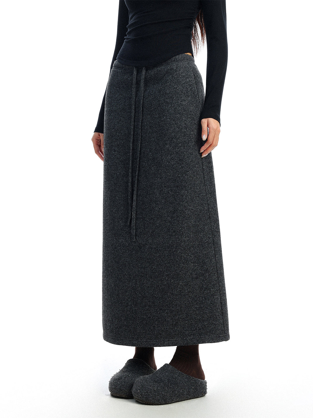 BIGGOLD | Drawstring Straight Wool Midi Skirt コンテンツにスキップ