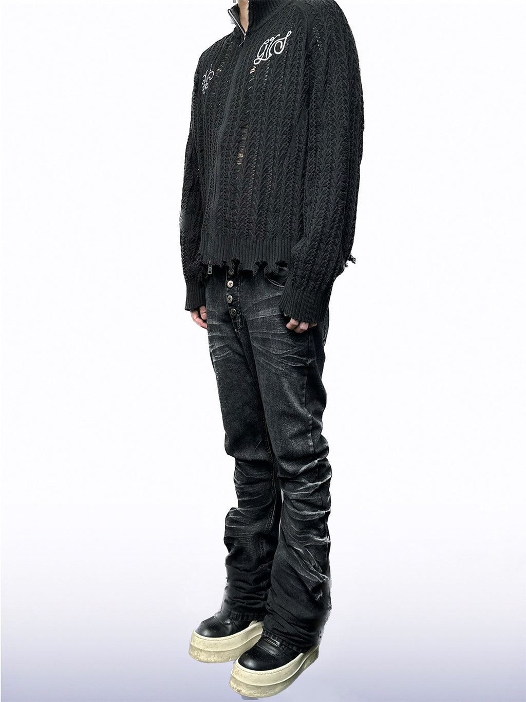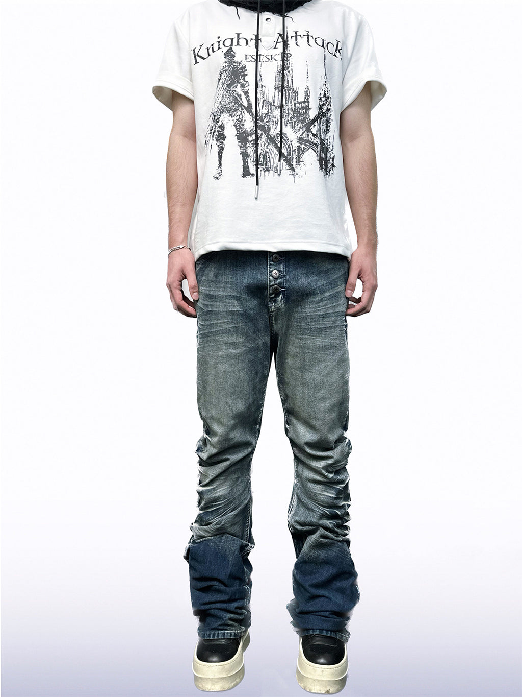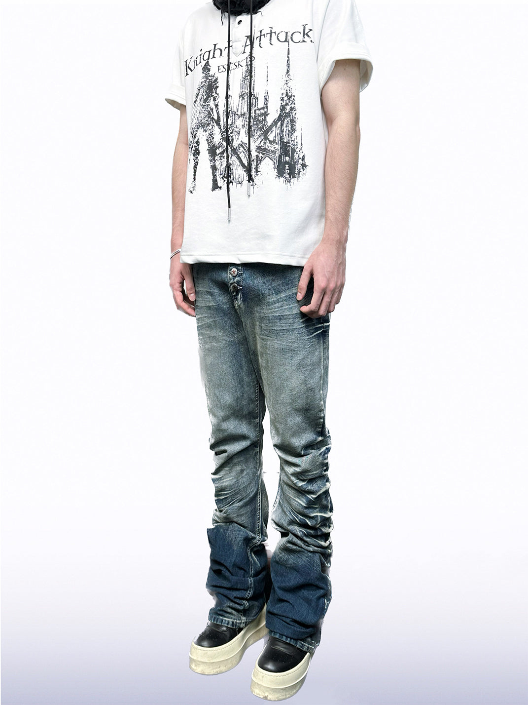 CandyCash | Crackled Washed Whiskered Flared Jeans コンテンツにスキップ