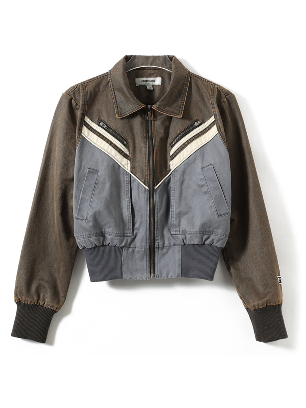 The slim-fit, short-length design is suitable for body types under 65kg. It has a crisp, structured look. The soda ash washing process allows the surface dye to naturally bleed away, creating an antique, brownish hue. The black and blue fabric is combined, and the black and white stripes on the chest create a V-shaped silhouette.