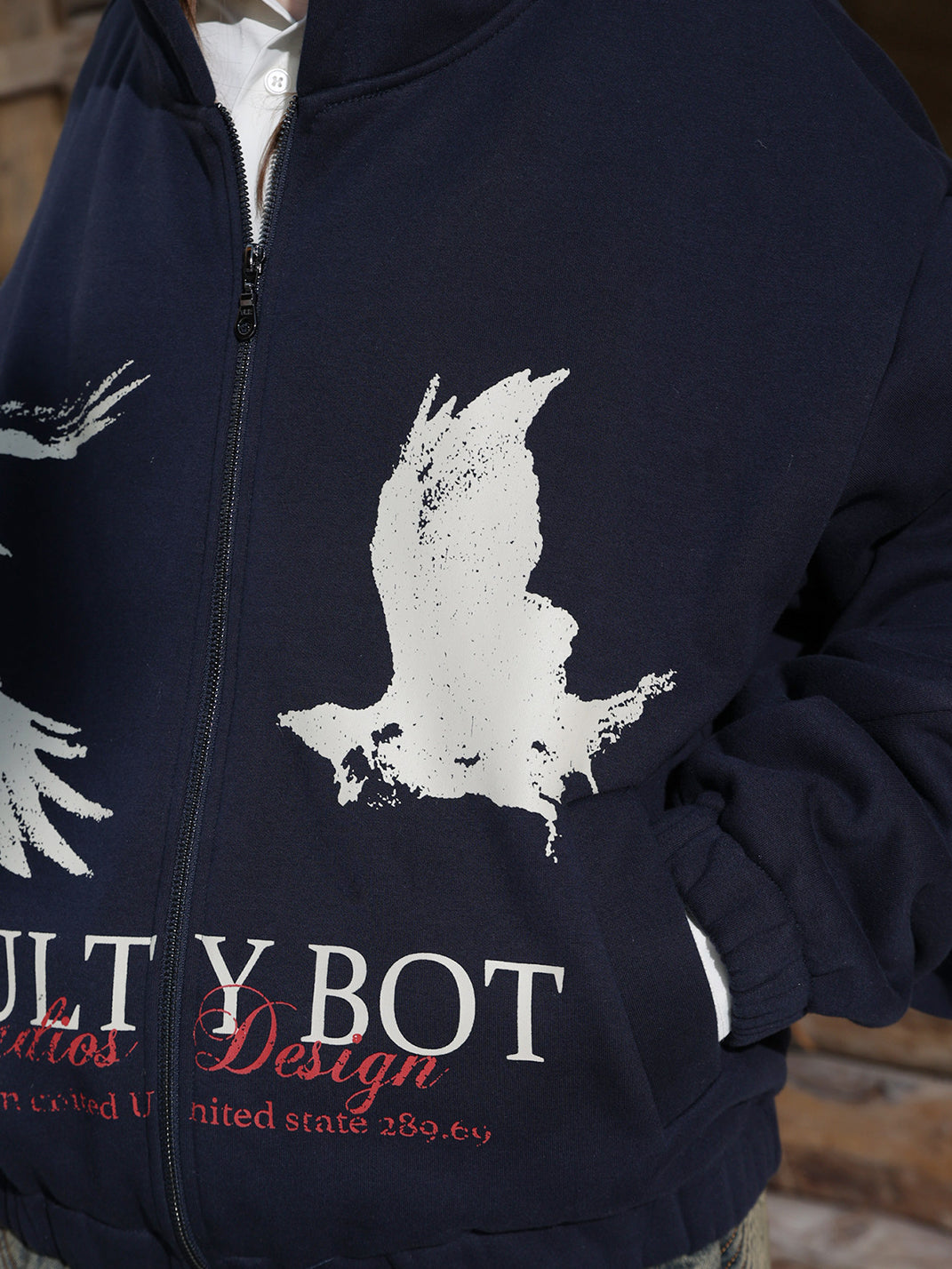 The pure cotton fleece-lined fabric provides warmth while also being soft and comfortable against the skin when worn alone. The bird print is screen-printed and will remain firmly attached even after multiple washes.