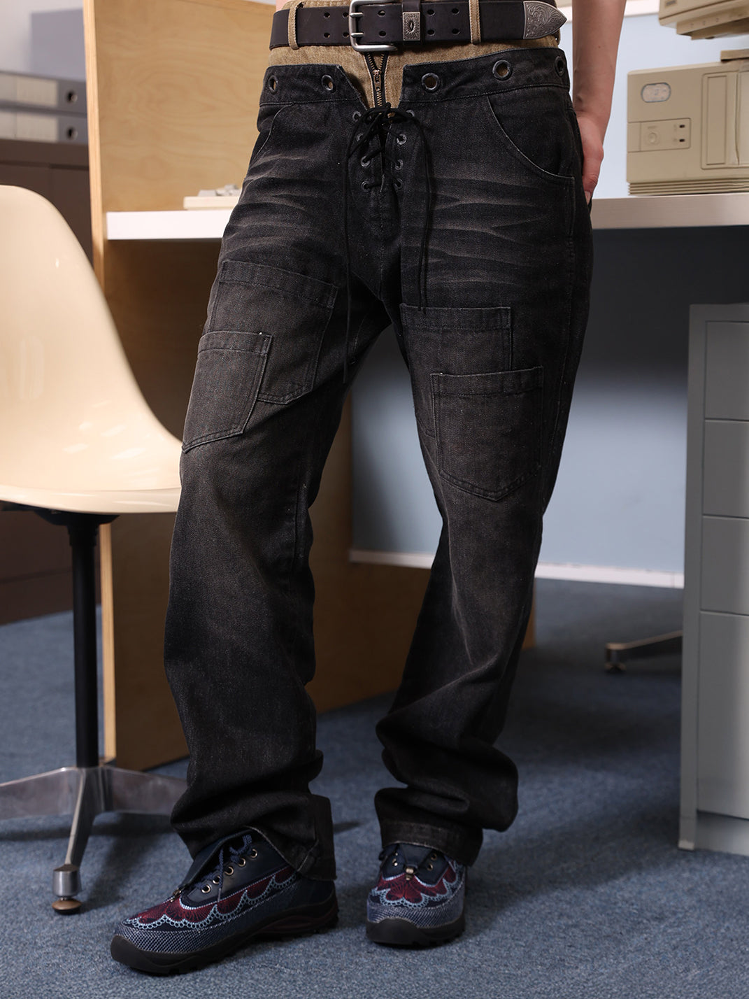 ECR | Washed Double-Waist Straight-Leg Jeans