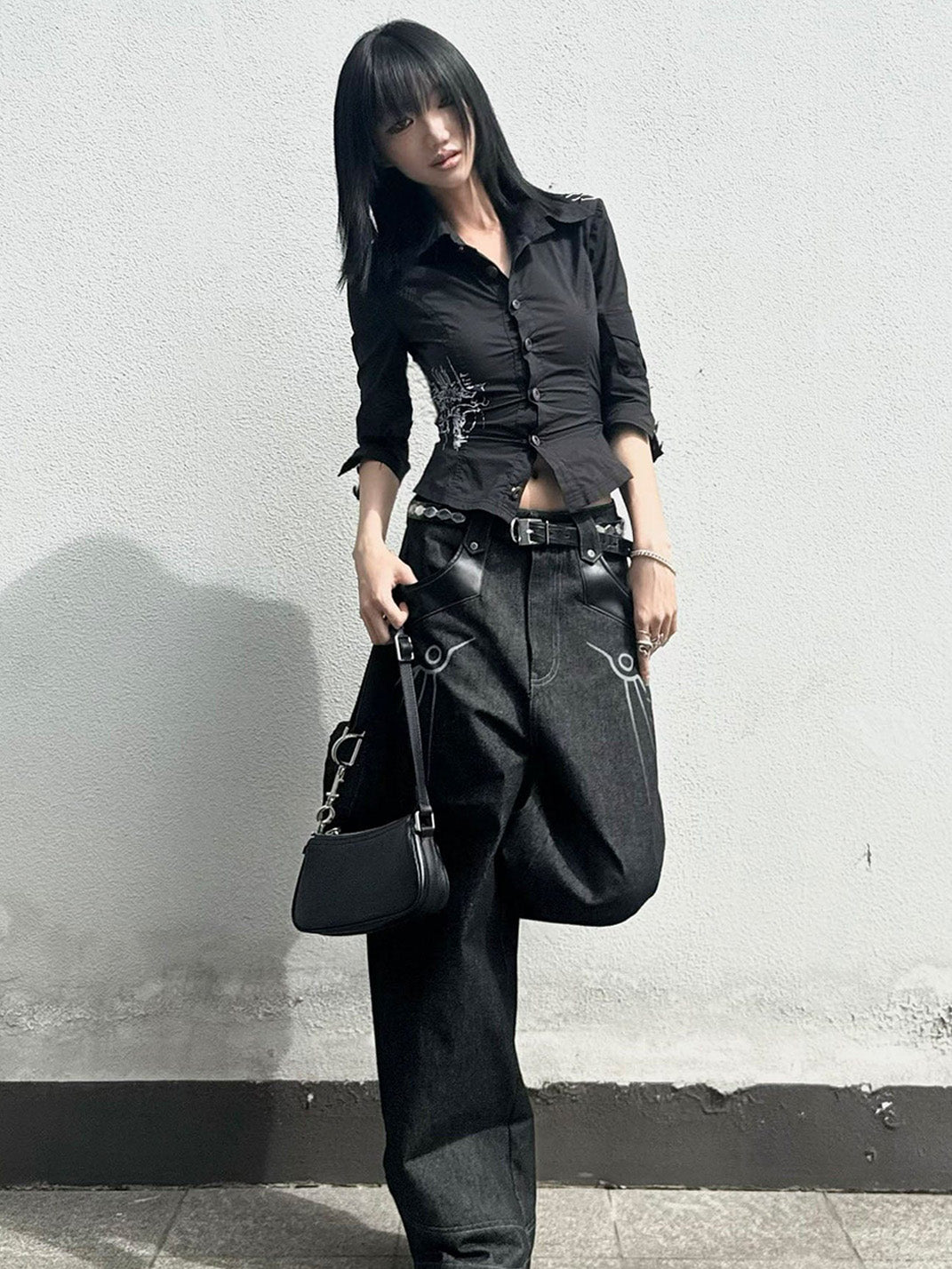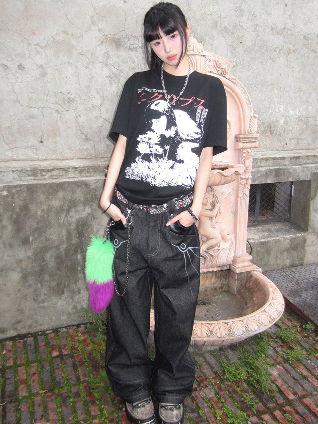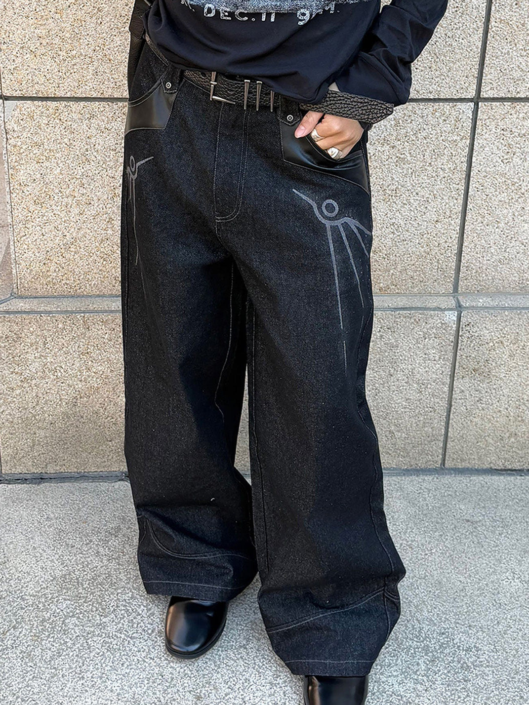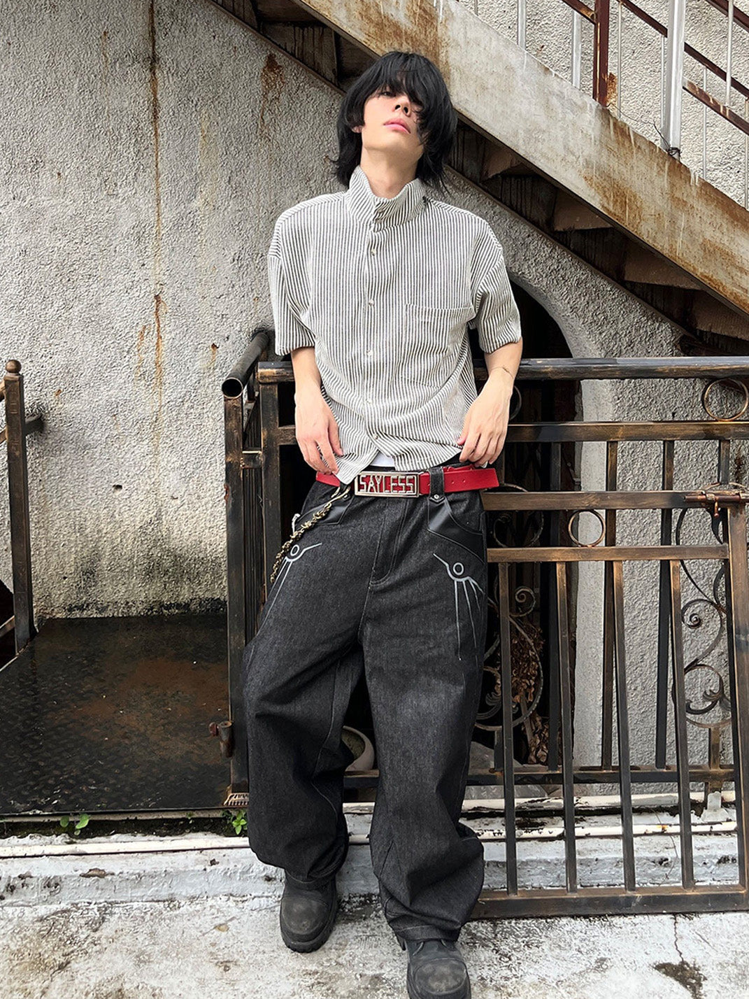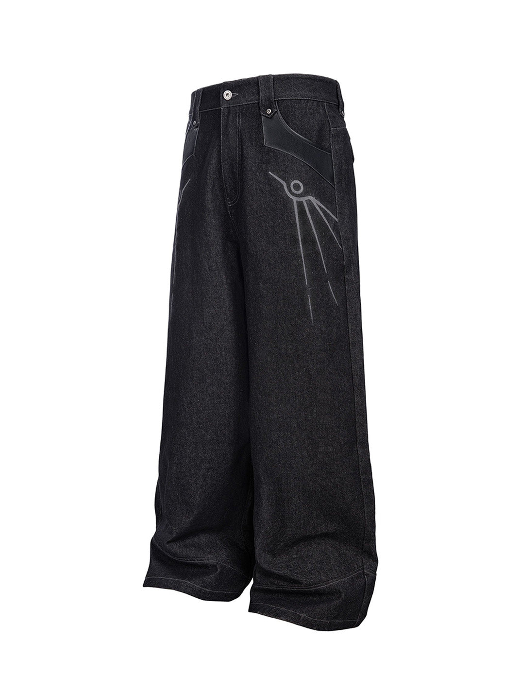 Esaias | Phoenix Graphic Wide-Leg Raw Jeans