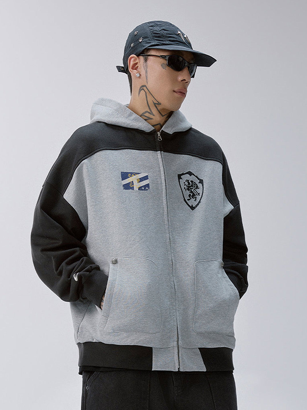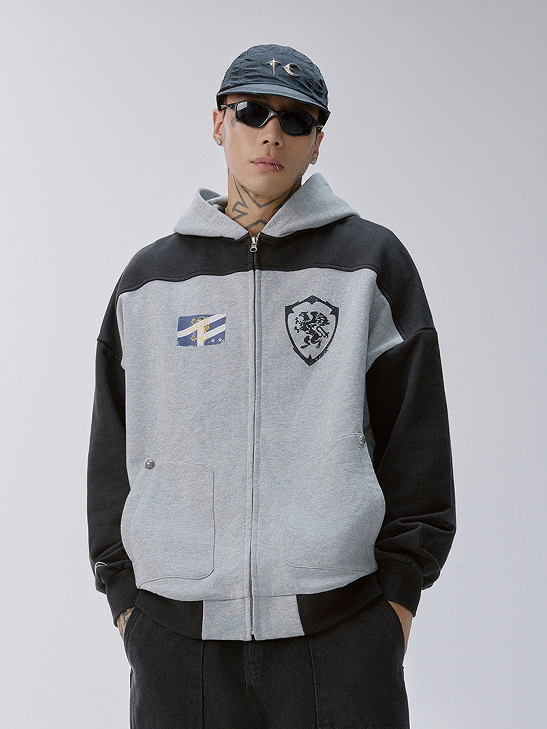 F2CE | Contrast Panel Badge Graphic Hooded Jacket
