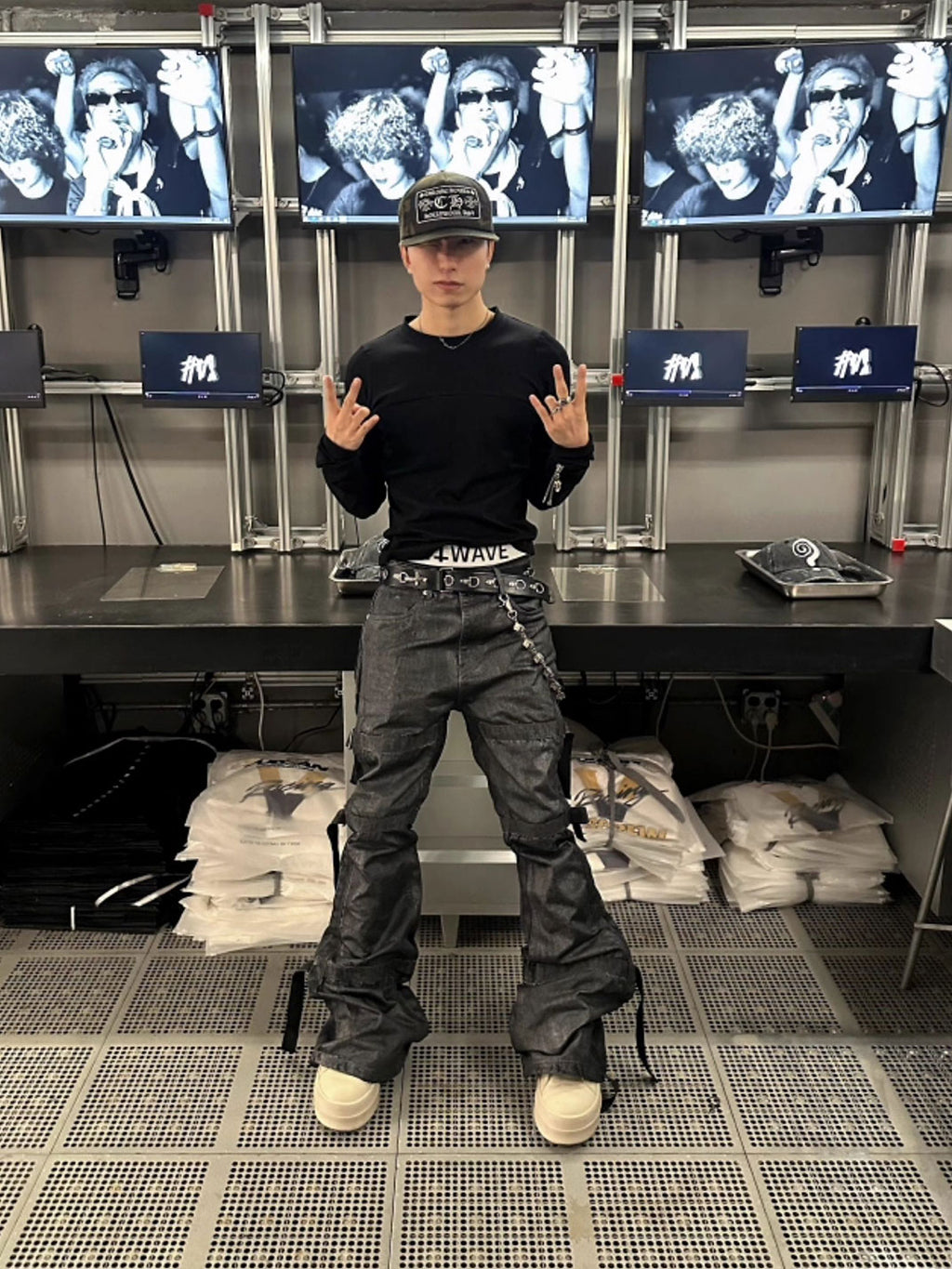 GOJOYJINNI | Waxed Finish Wide-Leg Flare Jeans コンテンツにスキップ