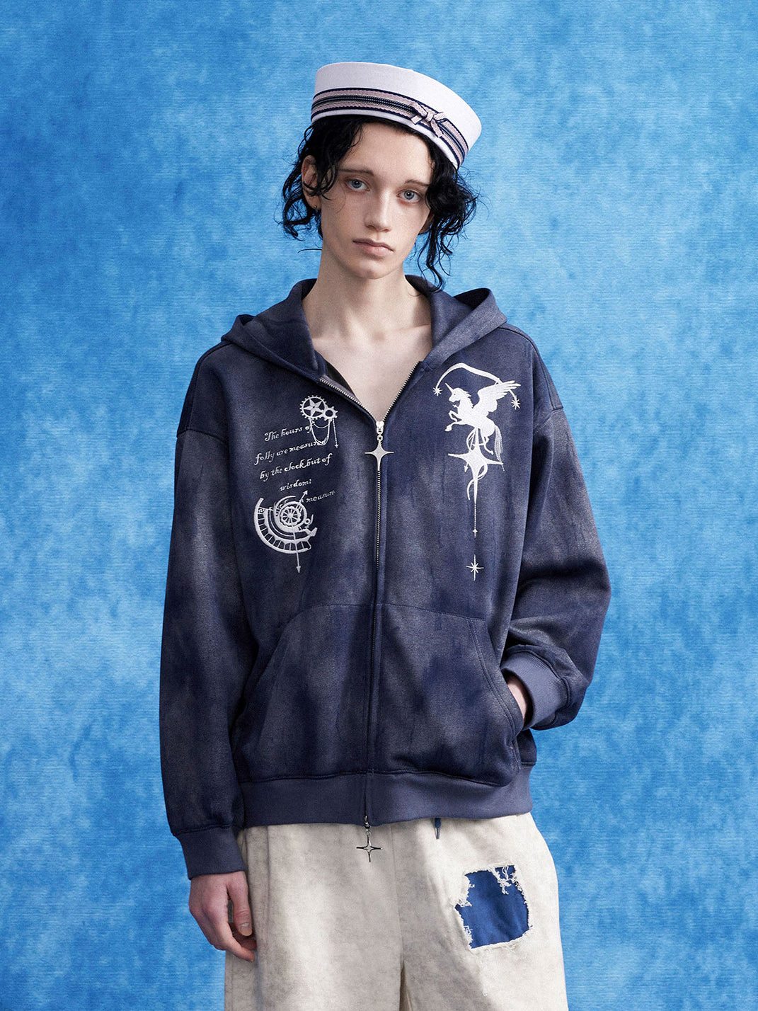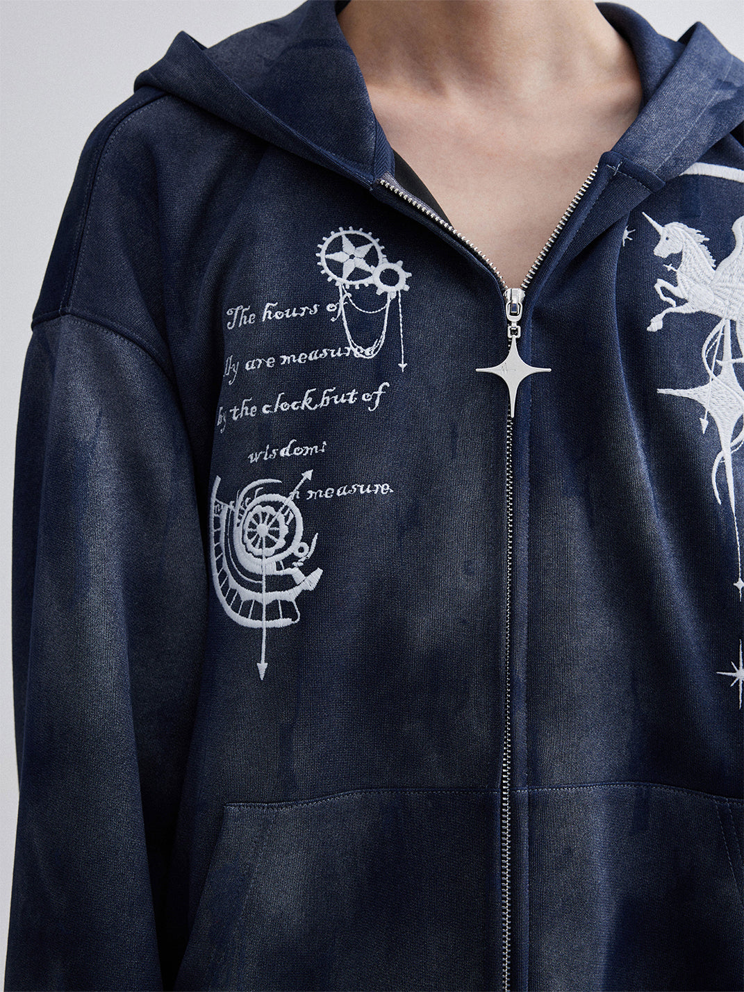 An embroidered coat inspired by "Pegasus" and "time" carries the English meaning: "A fool's time can be measured by clocks, but for a wise man, no clock can measure it." It allows you to unleash your wildest ideas and bring them into the real-world timeline, embroidering your own path in the latitude and longitude of time.