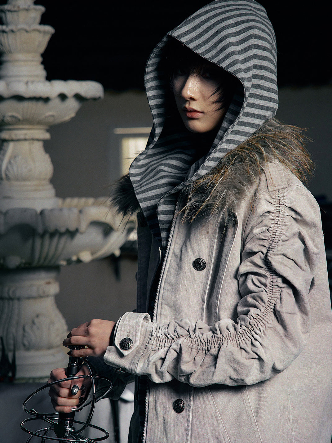 PAIKI | "Silent Shadow" Detachable Fur Collar Canvas Double-Breasted J コンテンツにスキップ