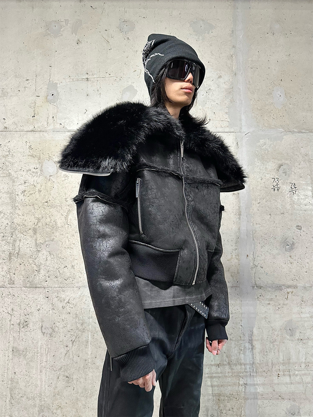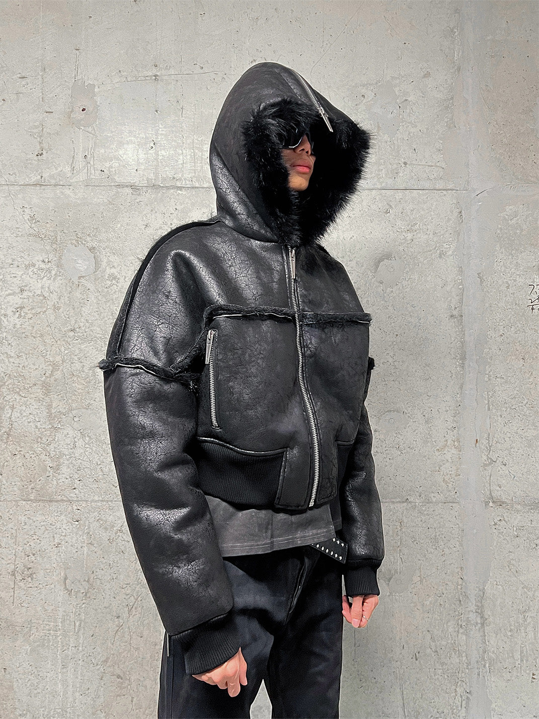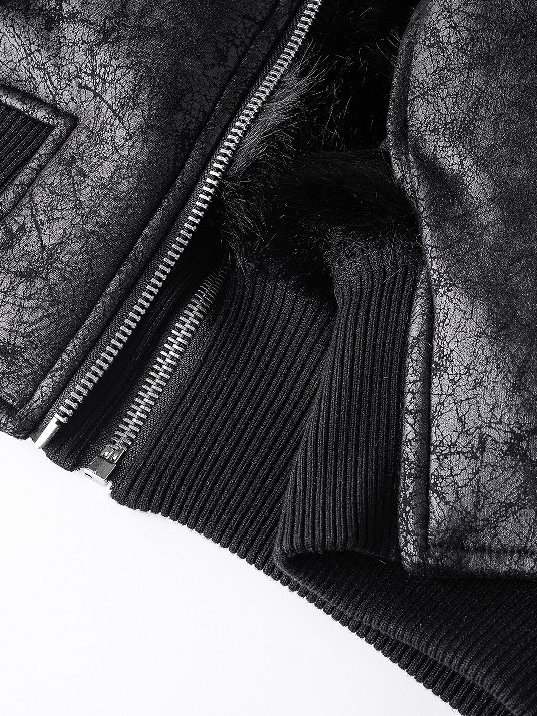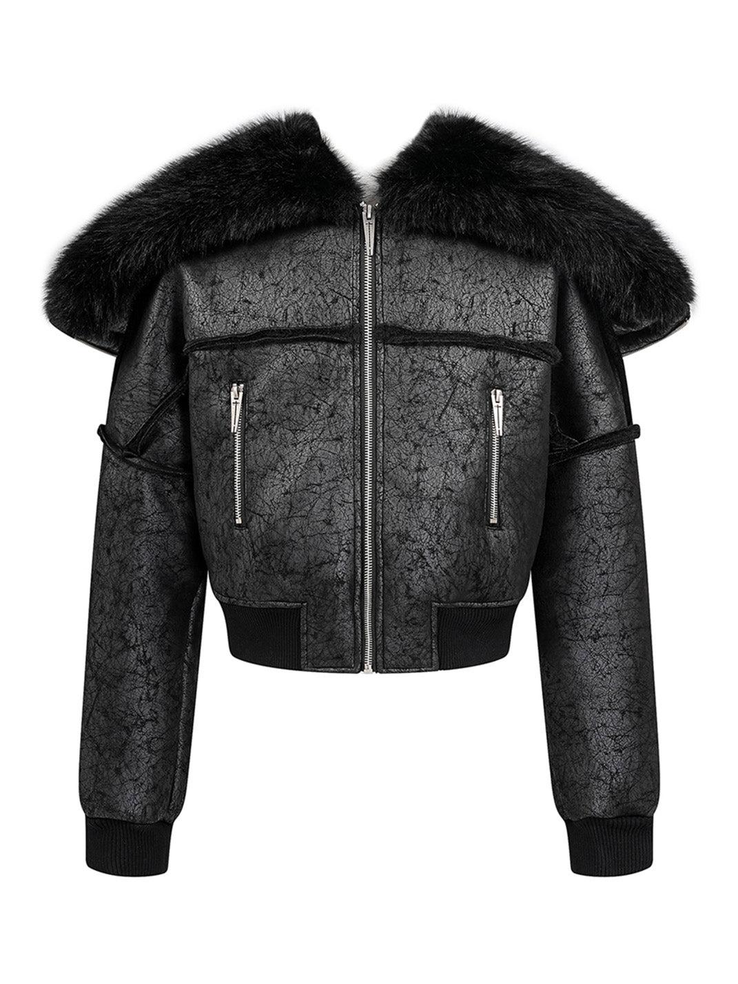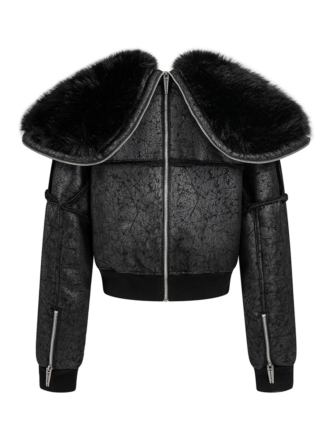 REBEL WAVE | Multi-Zipper Fur Collar Fur Jacket