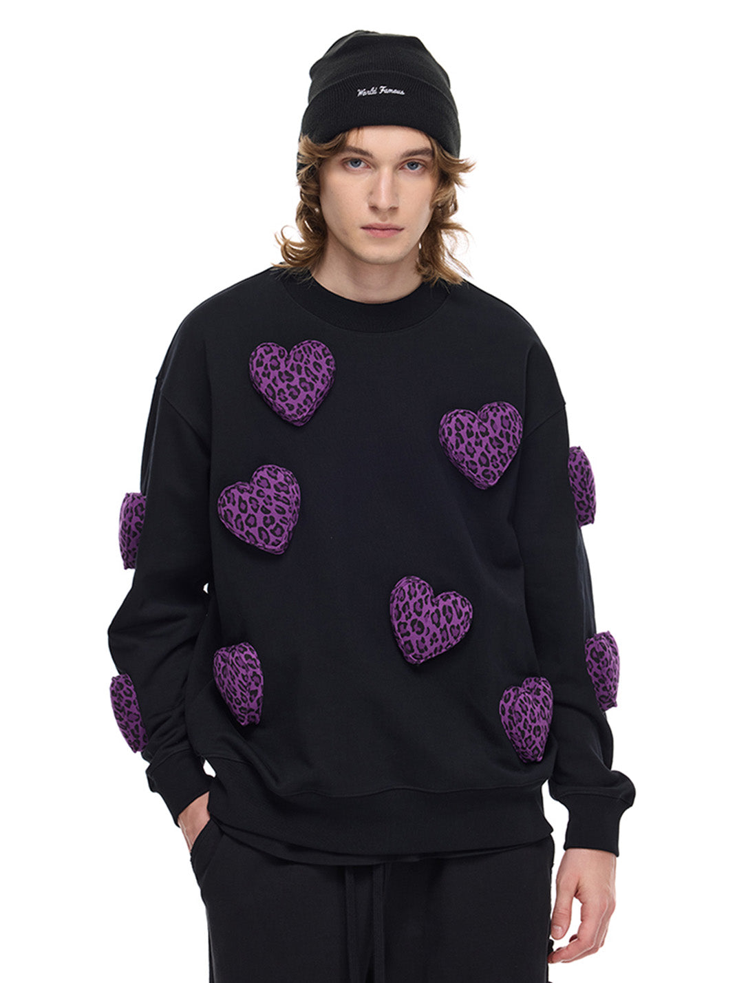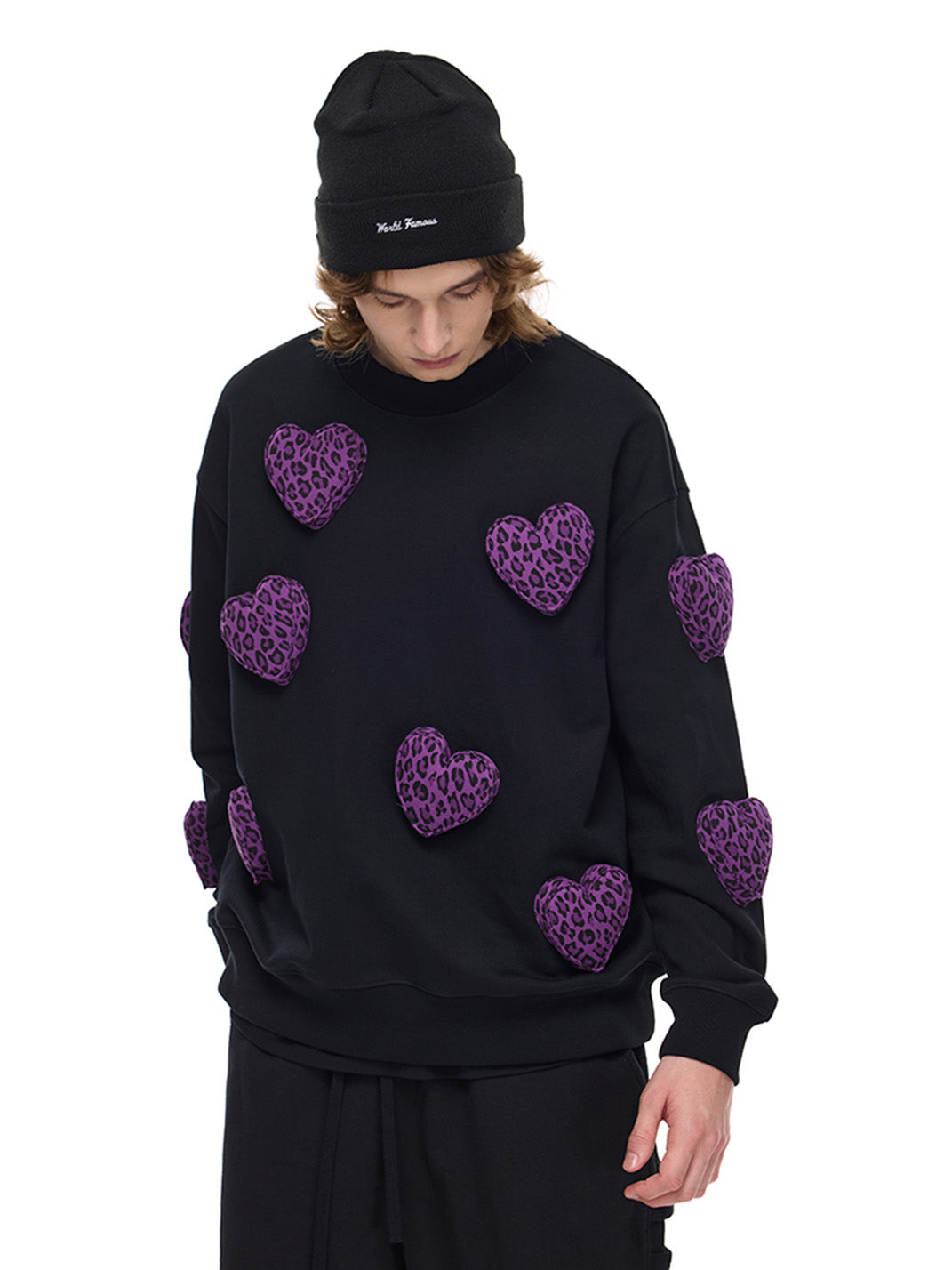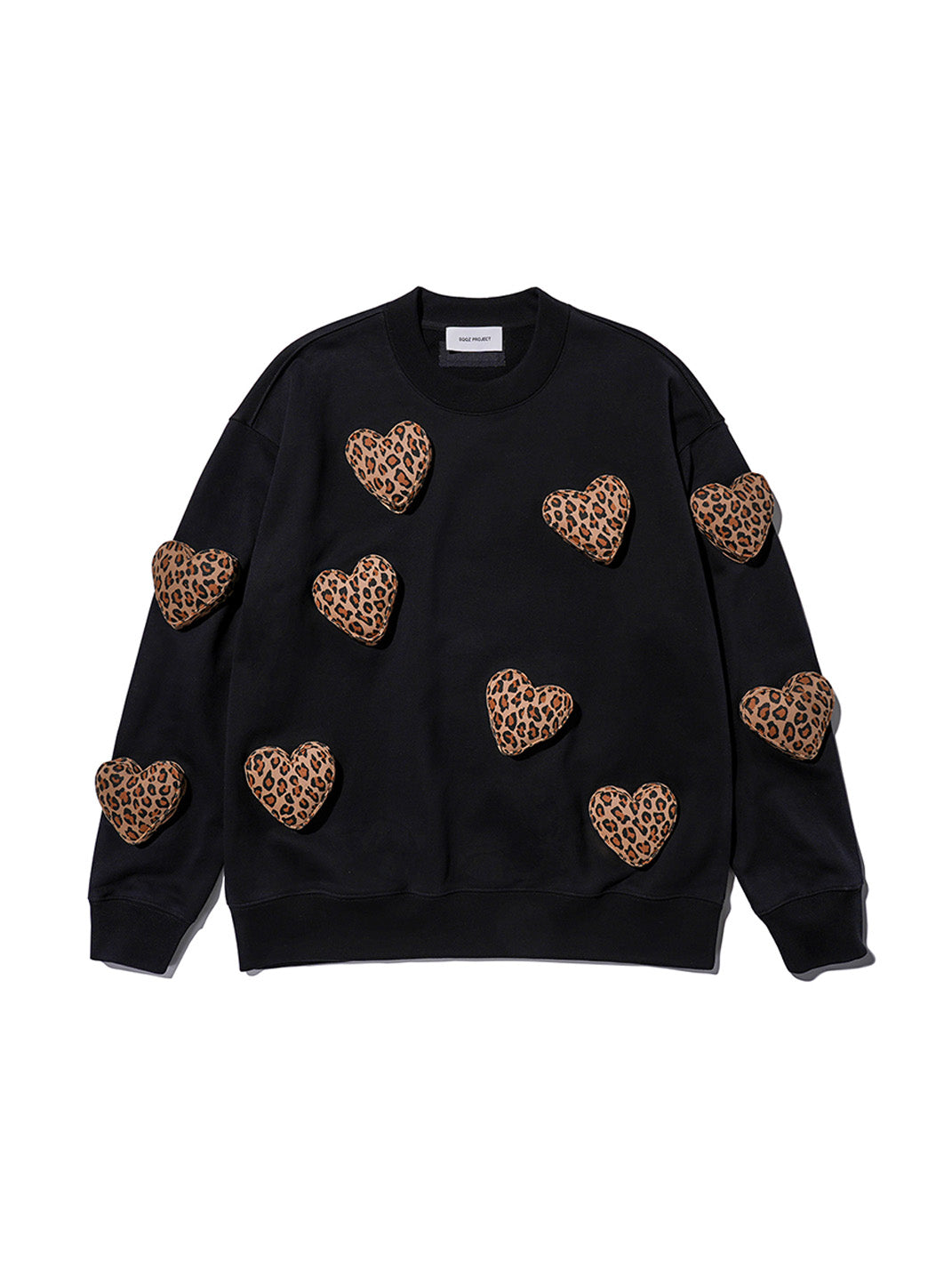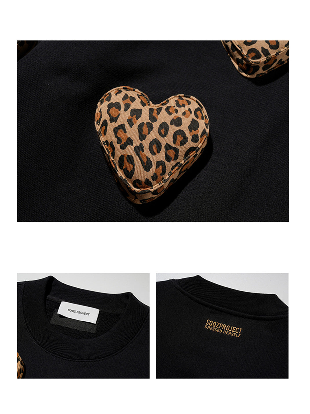 SQQZ PROJECT | Leopard Heart 3D Padded Crewneck Sweatshirt コンテンツにスキップ