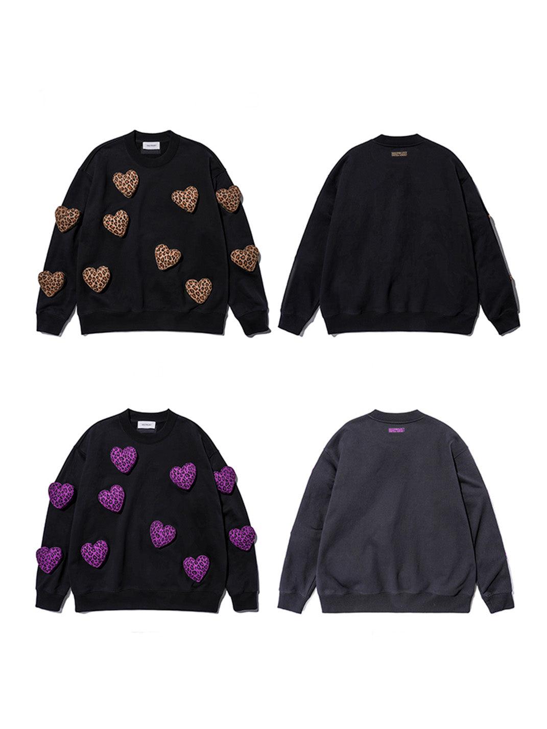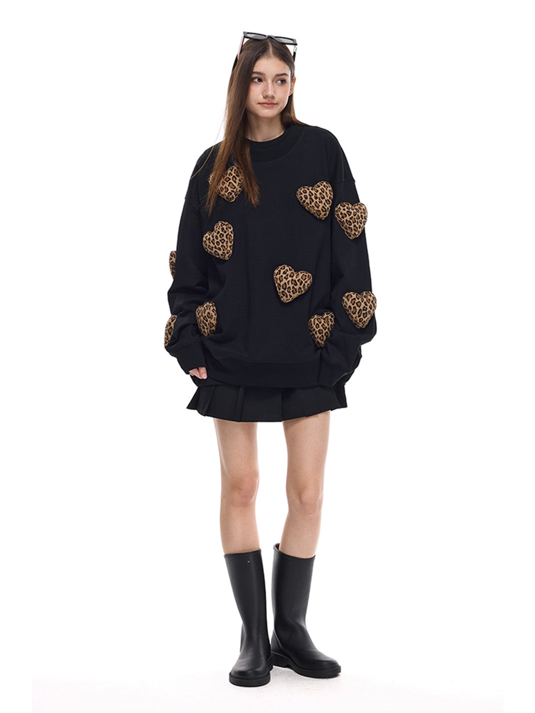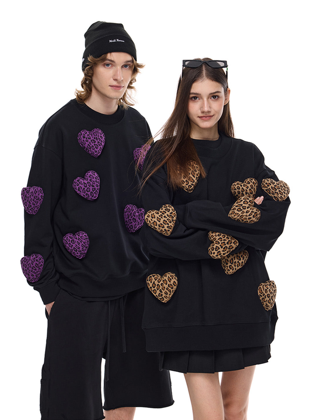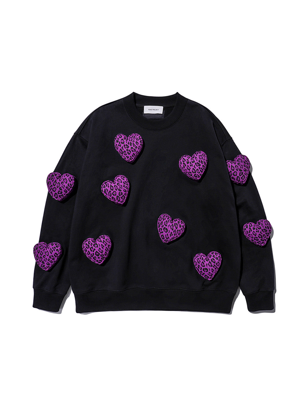 SQQZ PROJECT | Leopard Heart 3D Padded Crewneck Sweatshirt コンテンツにスキップ