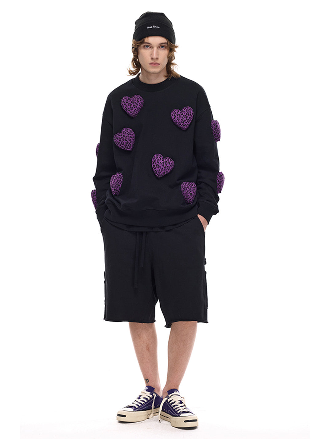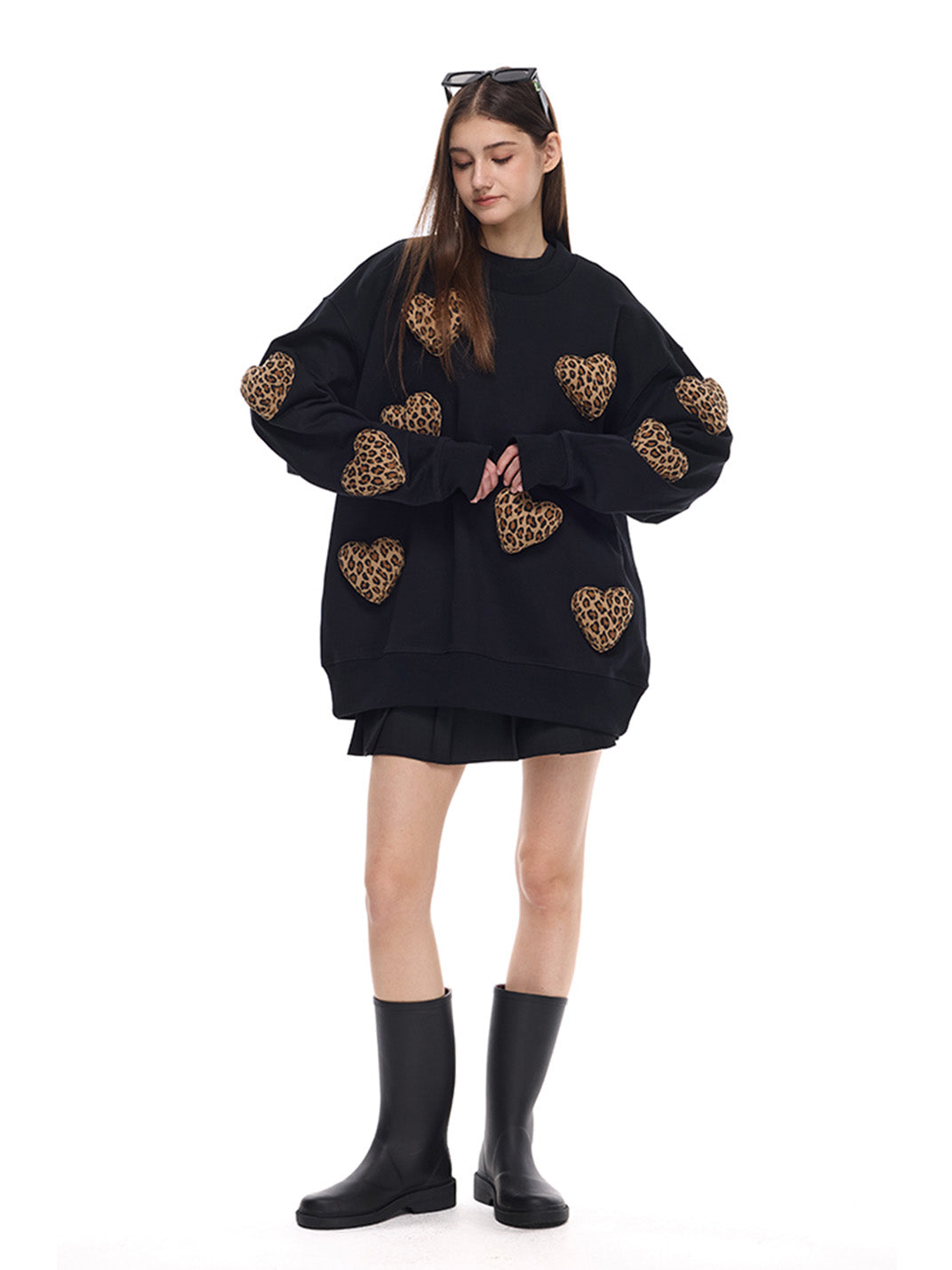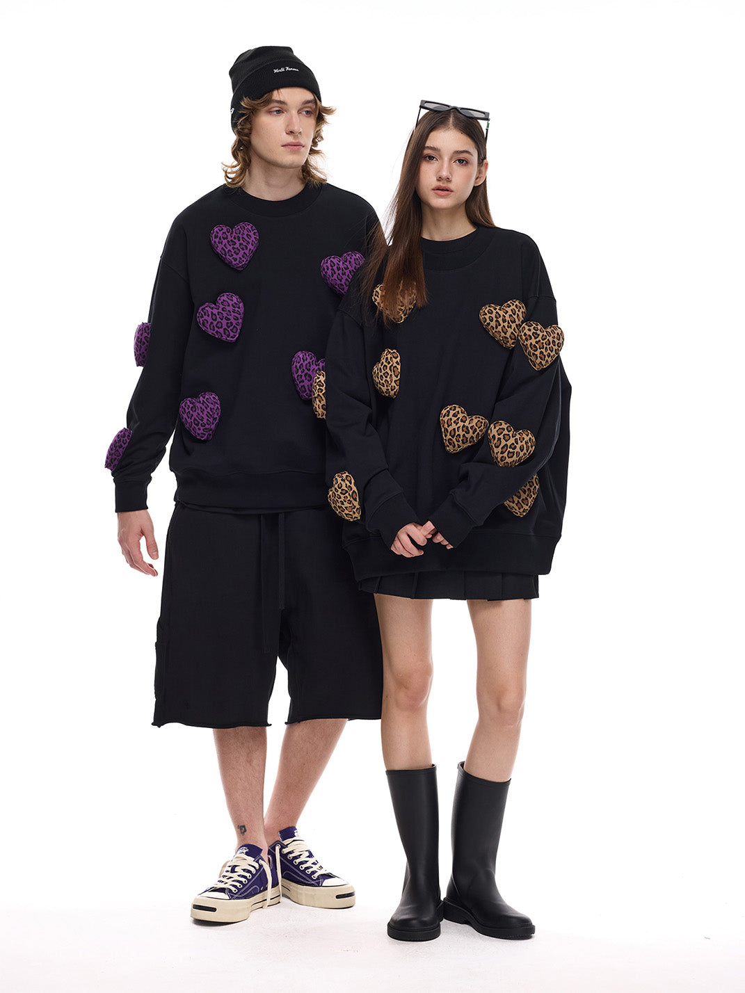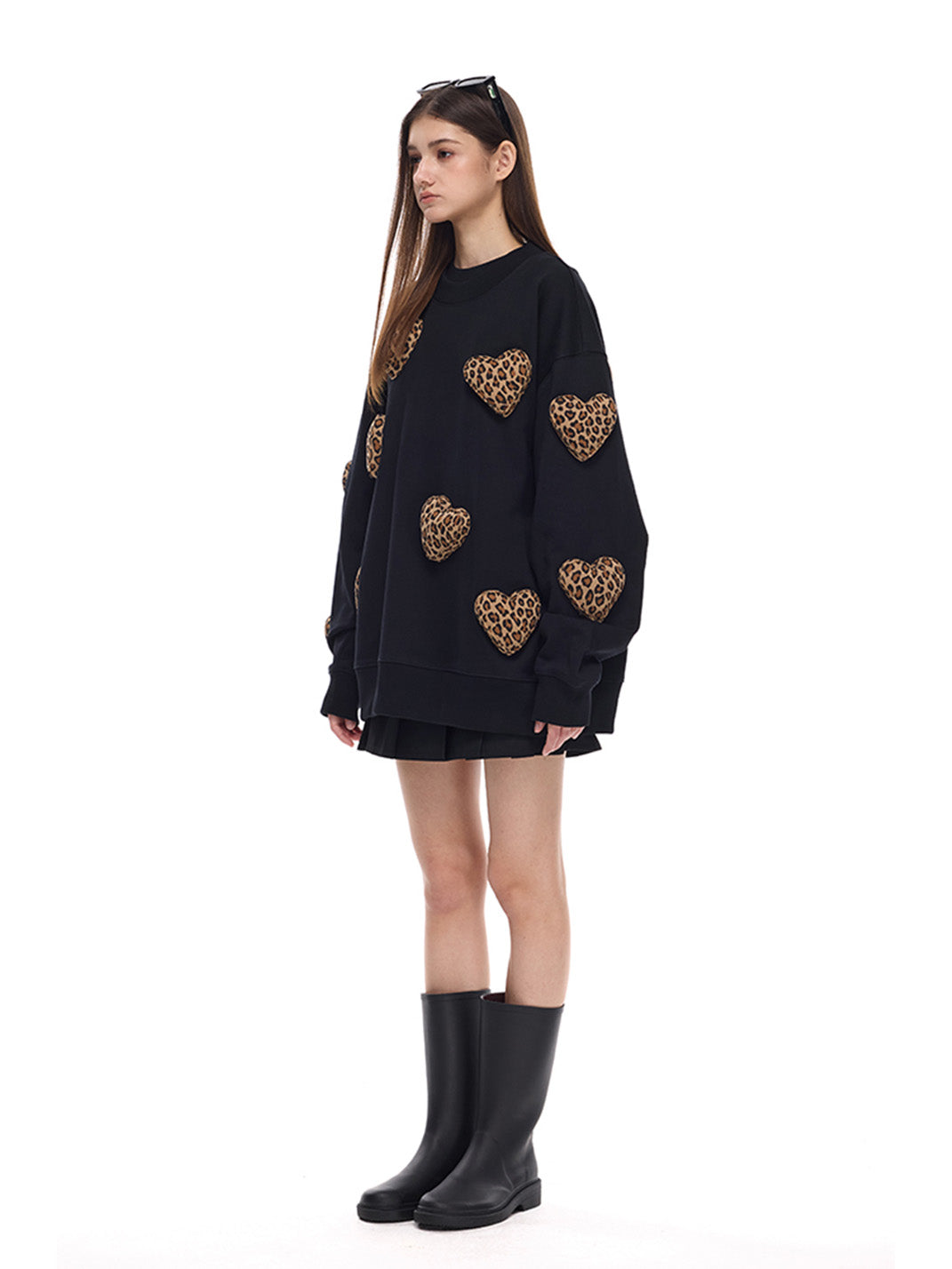 SQQZ PROJECT | Leopard Heart 3D Padded Crewneck Sweatshirt コンテンツにスキップ