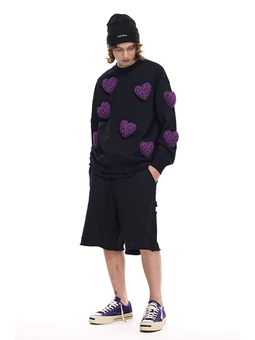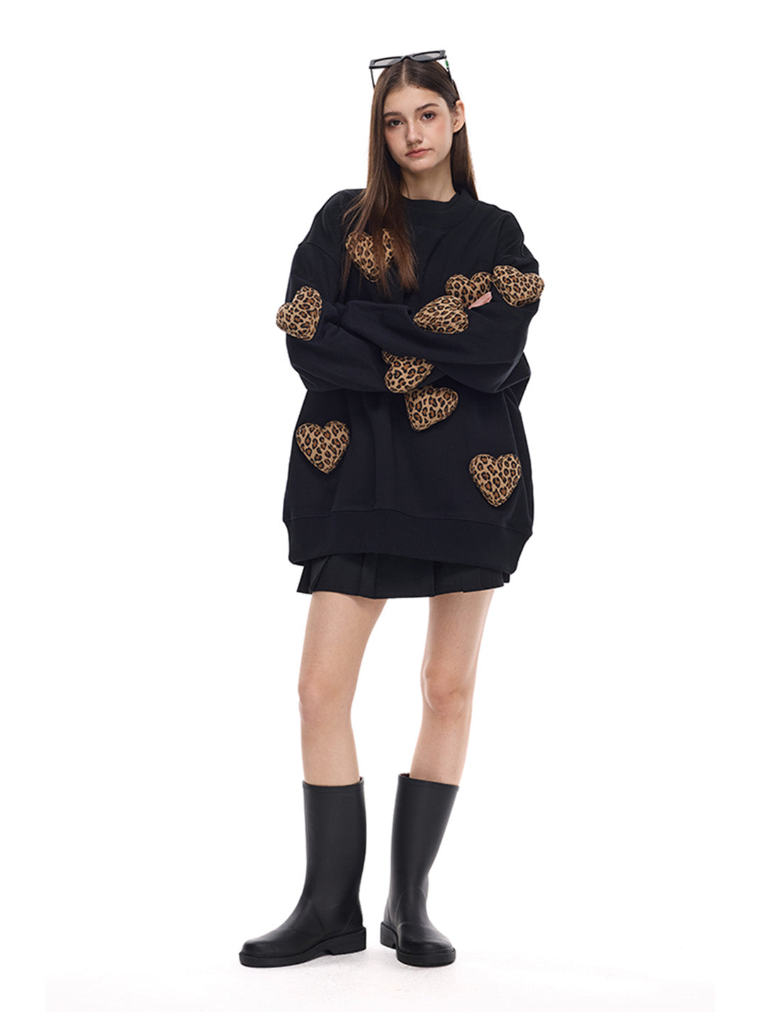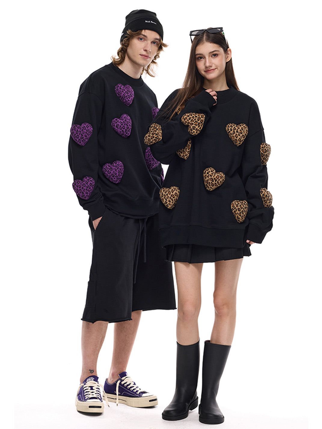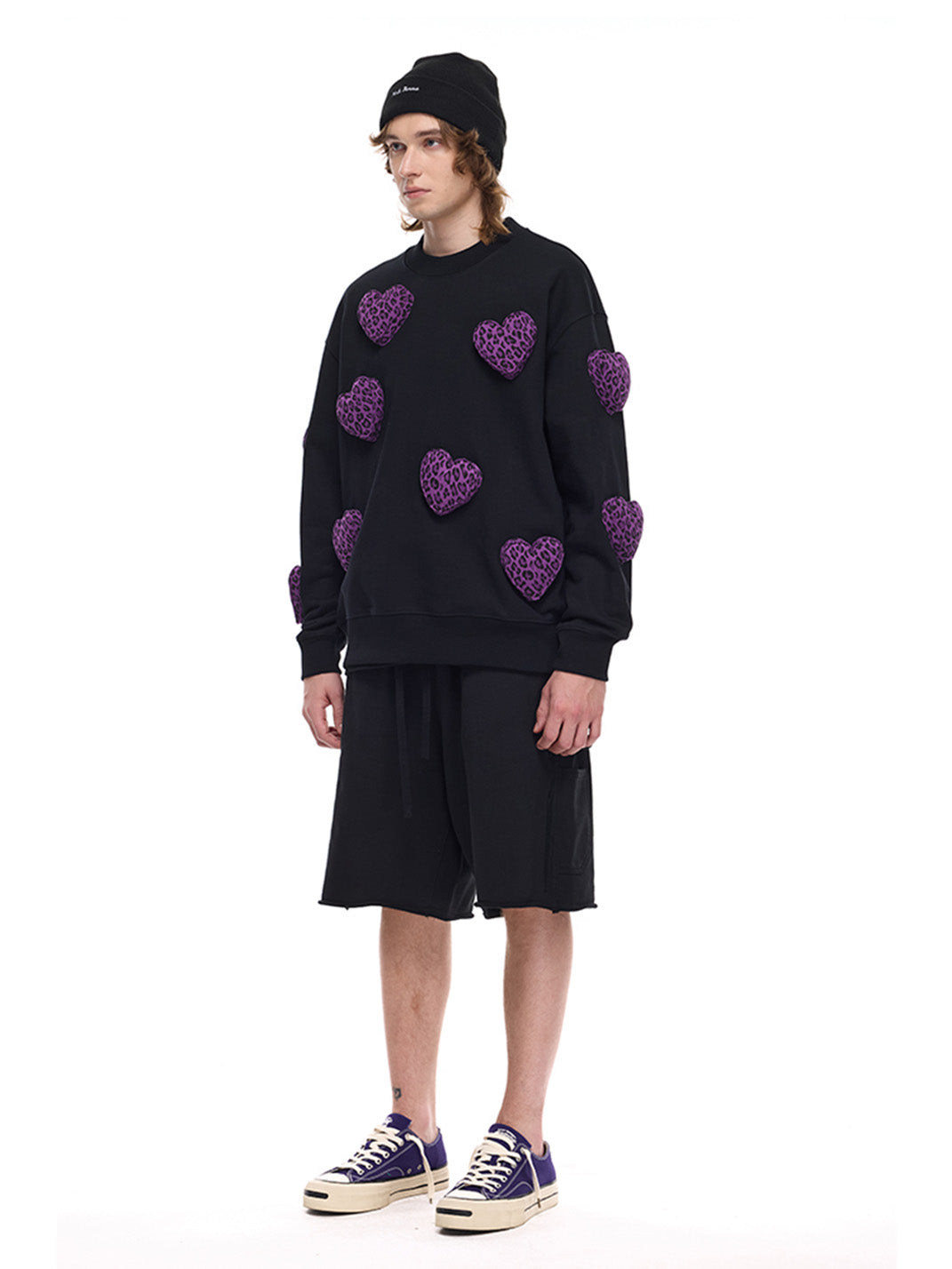 SQQZ PROJECT | Leopard Heart 3D Padded Crewneck Sweatshirt コンテンツにスキップ