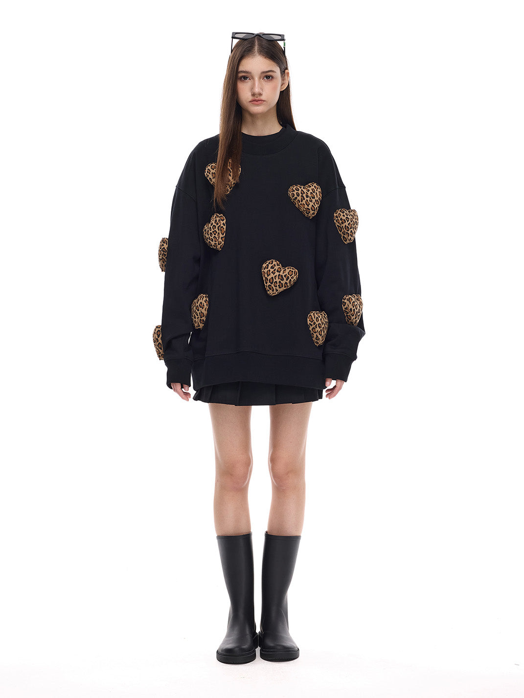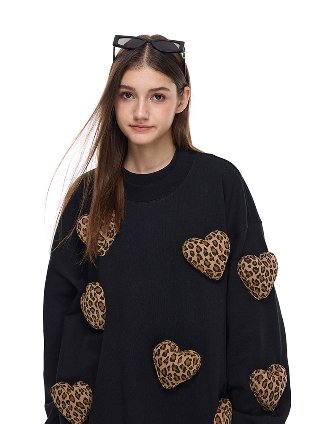 SQQZ PROJECT | Leopard Heart 3D Padded Crewneck Sweatshirt