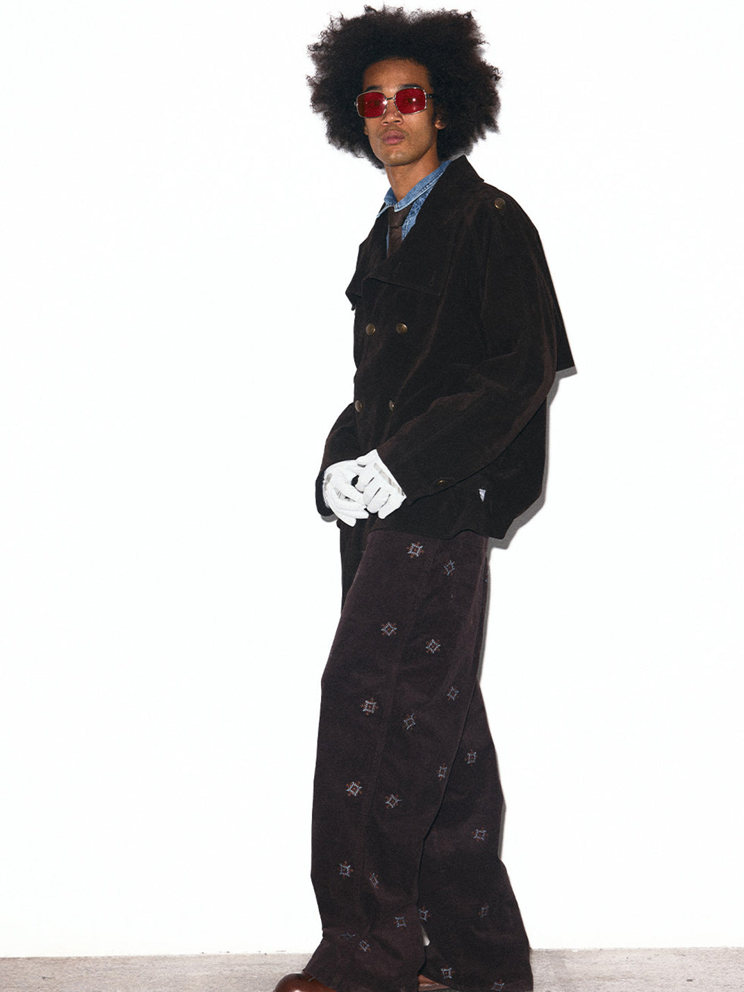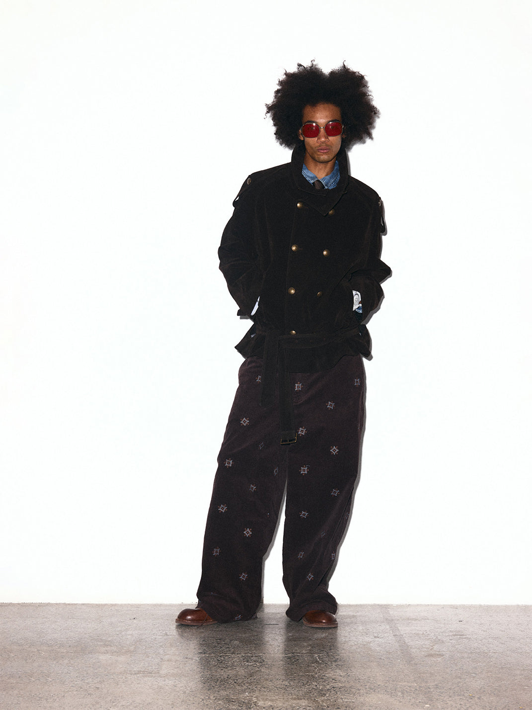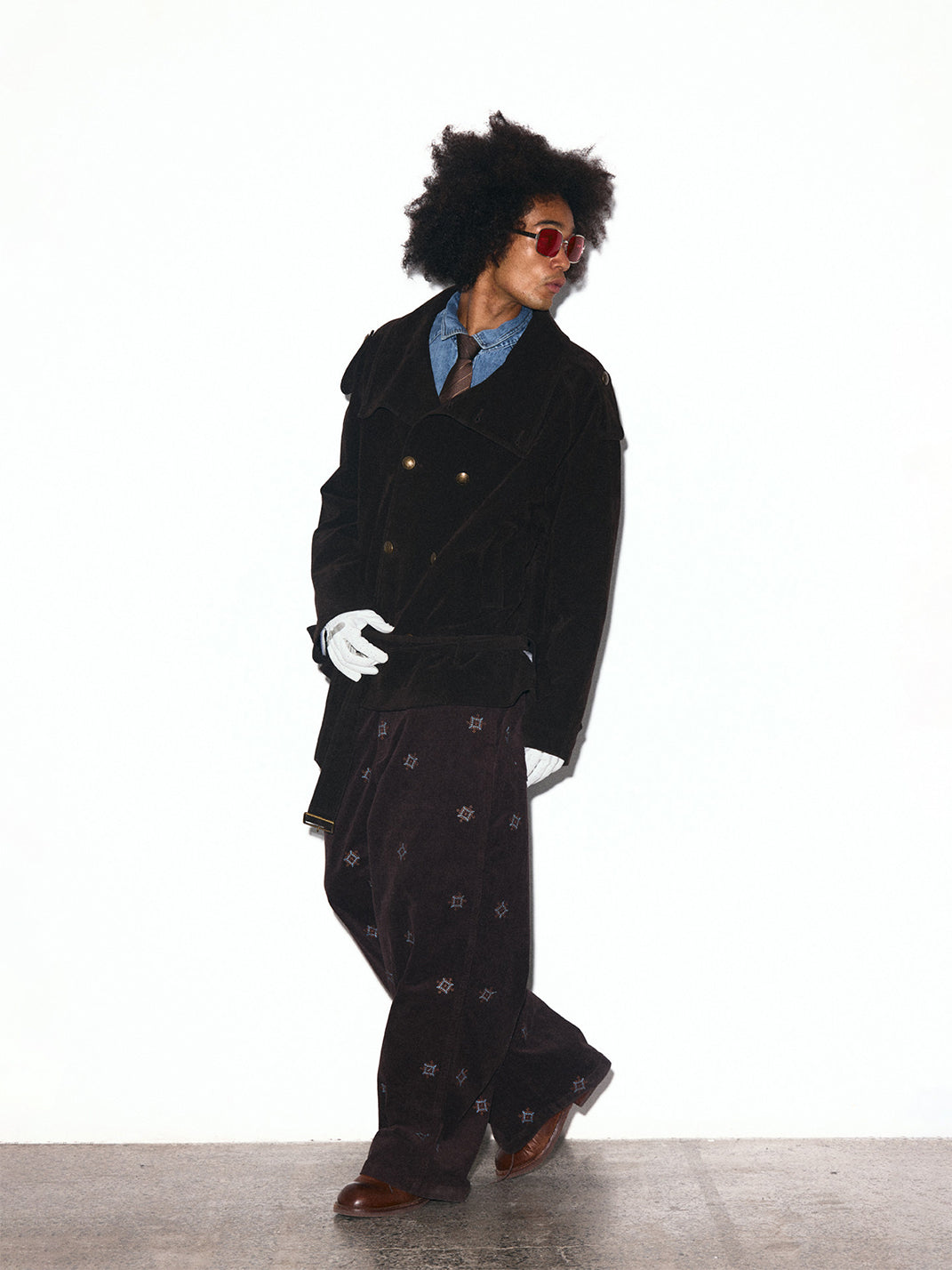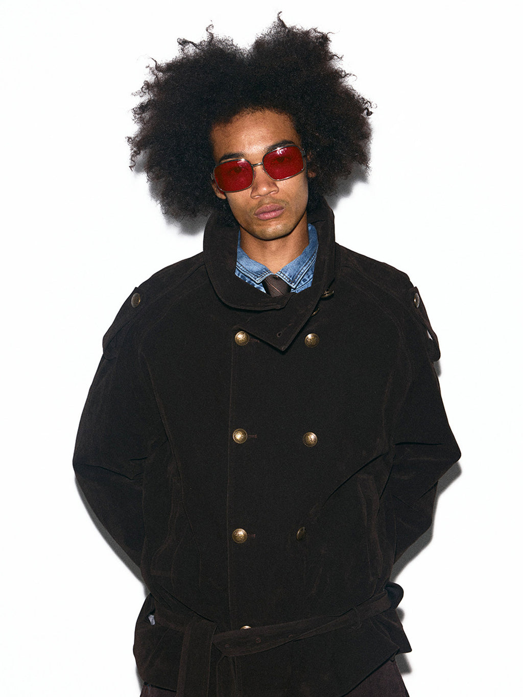 The fabric is a brown blended single-sided fleece, which differs from traditional suede. Single-sided fleece has a firmer feel, preventing it from slouching and losing its shape when worn. It has a slightly rougher feel and a high fabric density, providing excellent windproof performance. The design features a double-breasted, mid-length trench coat structure with an adjustable waistband to accentuate the waistline. Custom-made antique bronze-finished hand-stitched buttons add a touch of luxury. The inner lining is filled with 80 grams of quilted cotton, layered with an outer windproof layer, ensuring maximum warmth for autumn and winter.