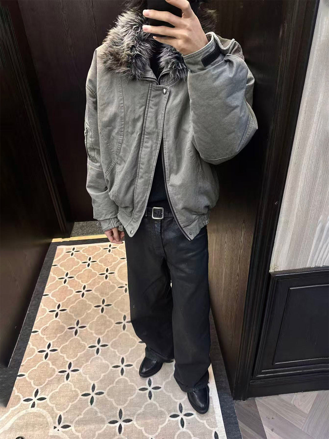 TREclub | Retro Cotton-Padded Jacket with Plush Collar コンテンツにスキップ