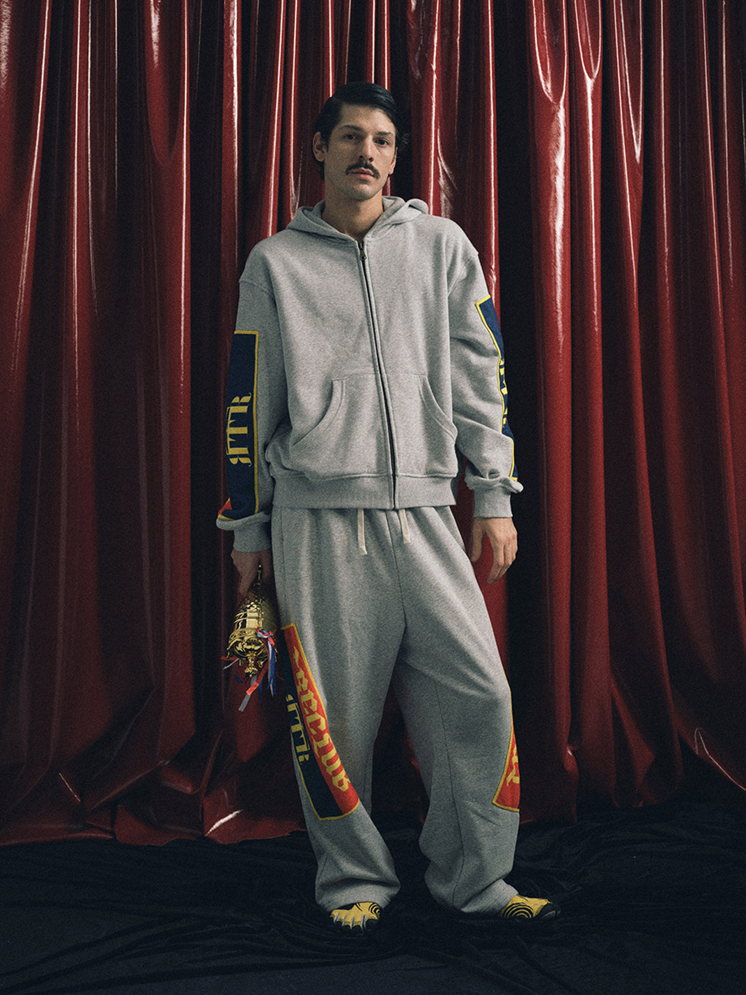 The fabric is made of 360g pure cotton terry cloth, and the theme of this season is interpreted through the embroidery of themed appliqué towels. The fit has been adjusted to be loose and comfortable, suitable for sports and commuting.
