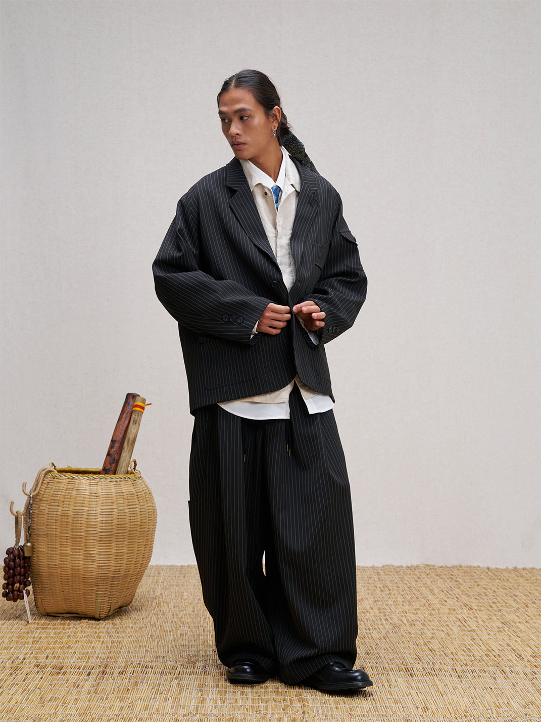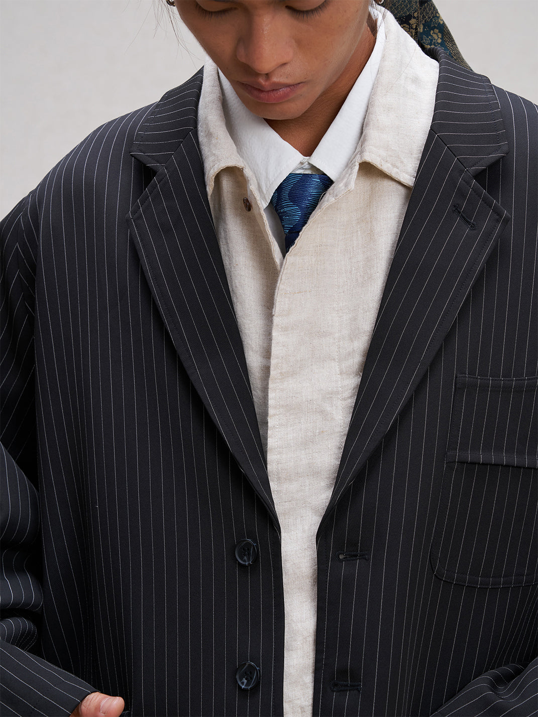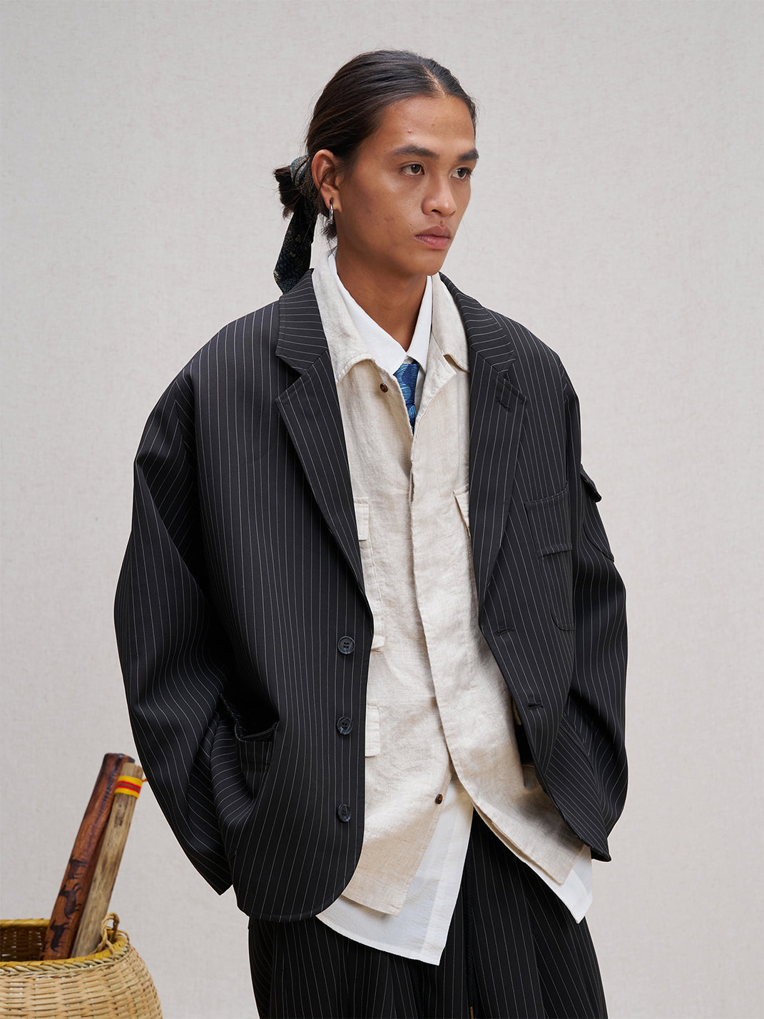 UNLIMITED MOTE | Striped Solid Color Pocket Suit Jacket