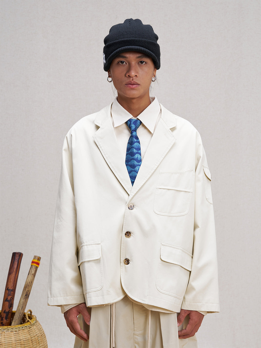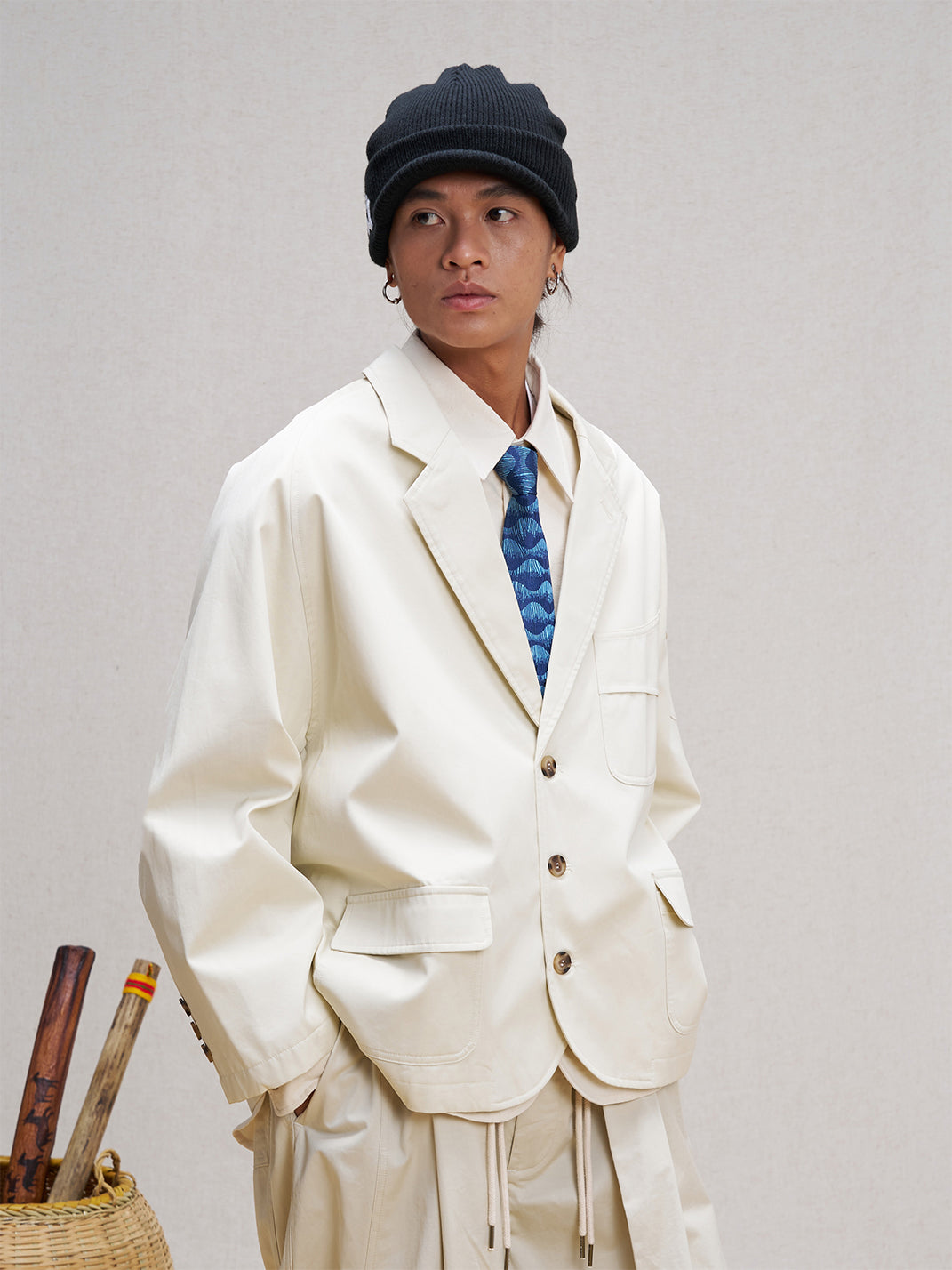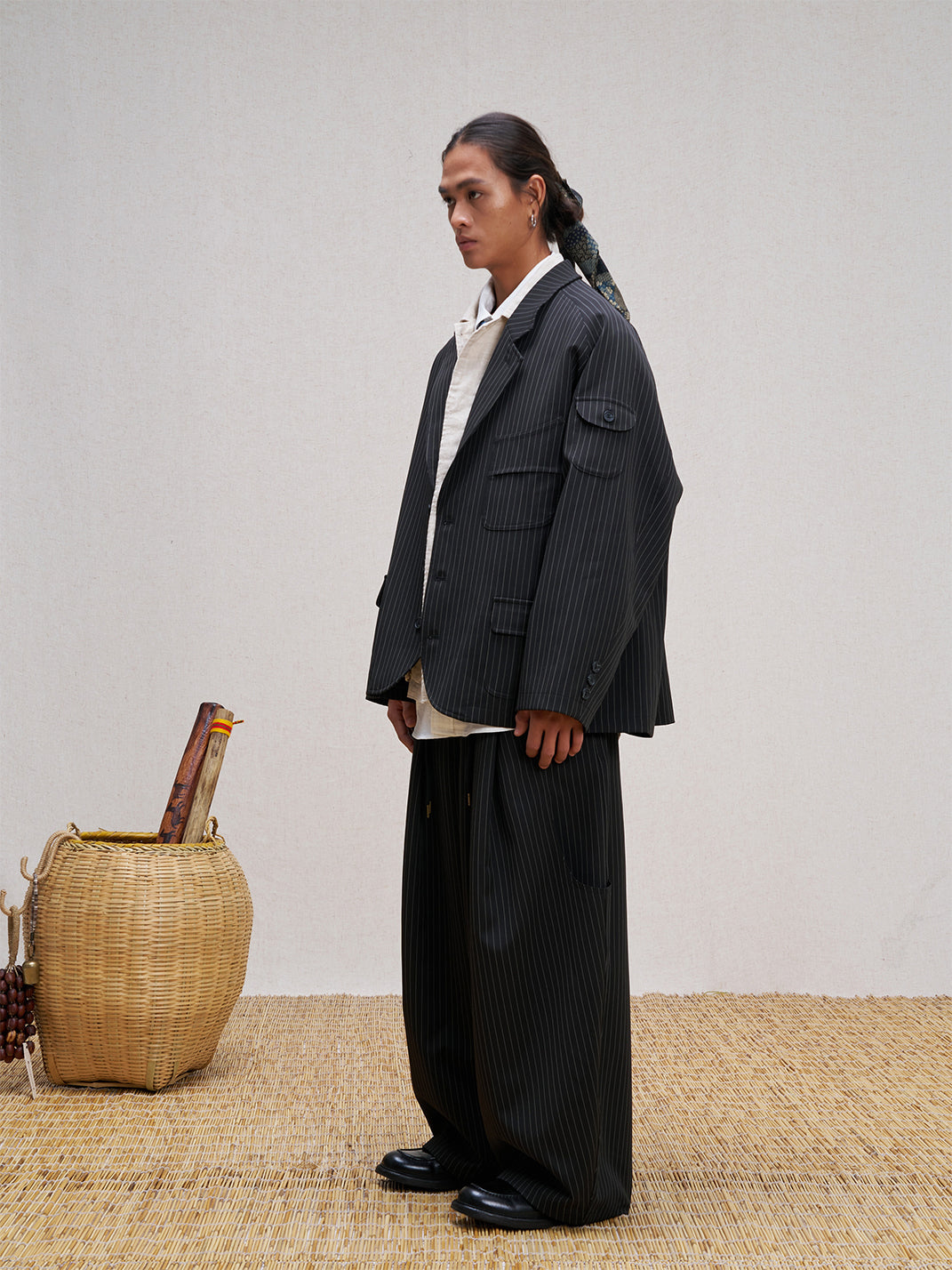 UNLIMITED MOTE | Striped Solid Color Pocket Suit Jacket