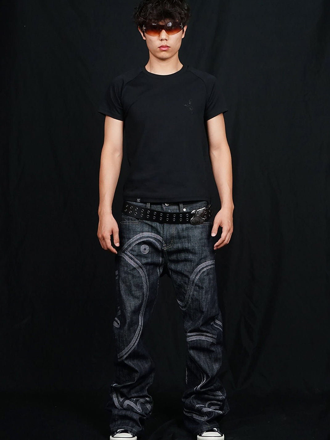 VINKID | Embroidered Dove Stitched Selvedge Jeans