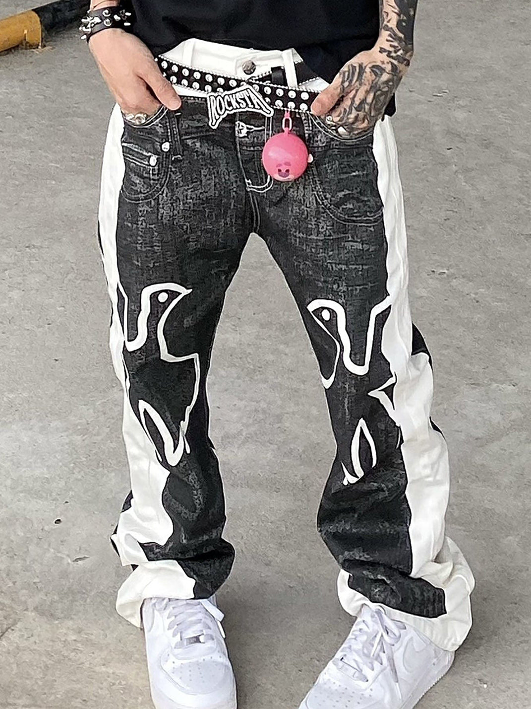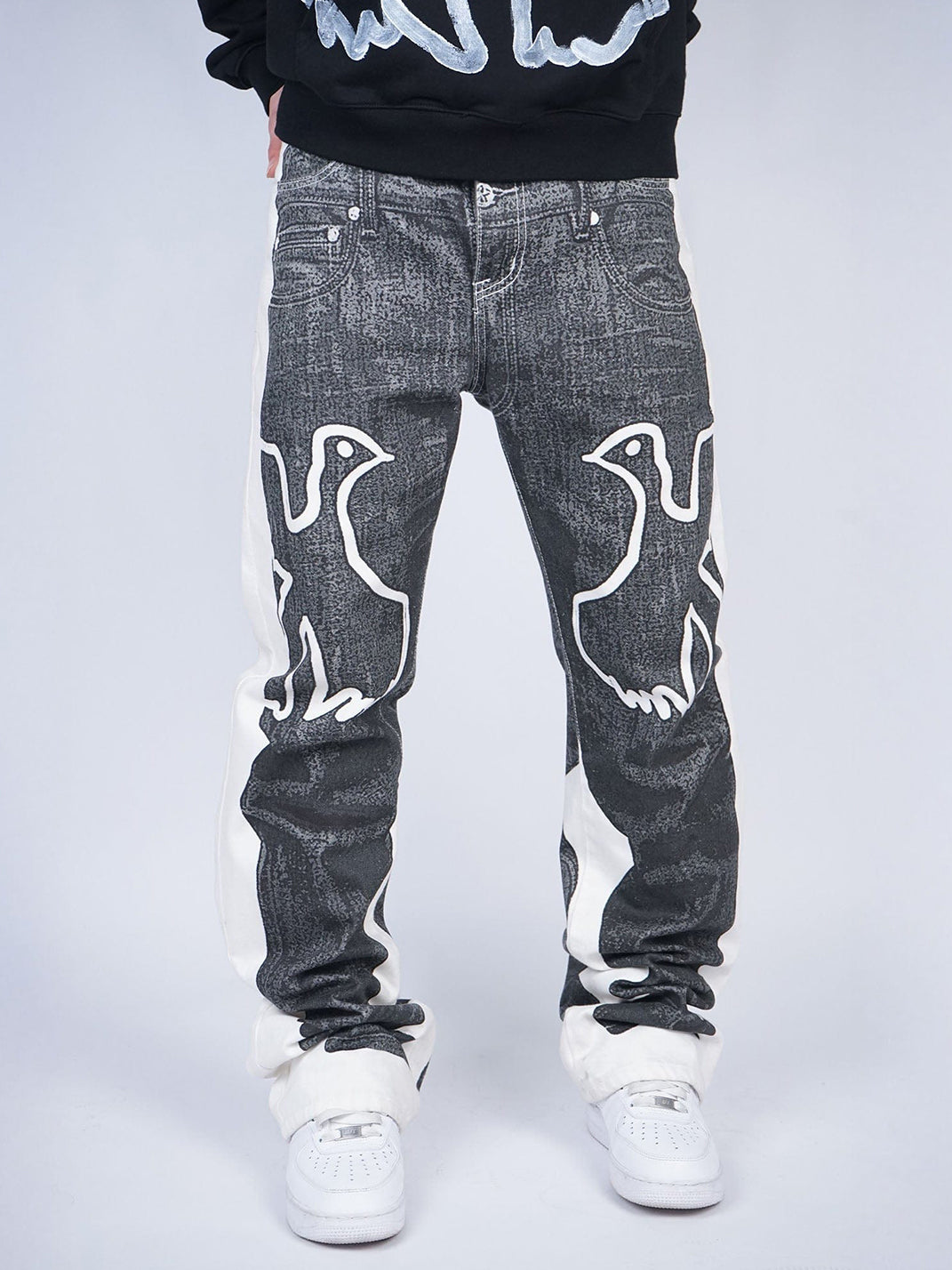 VINKID | Faux-Layered Dove Graphic Contrast Panel Jeans