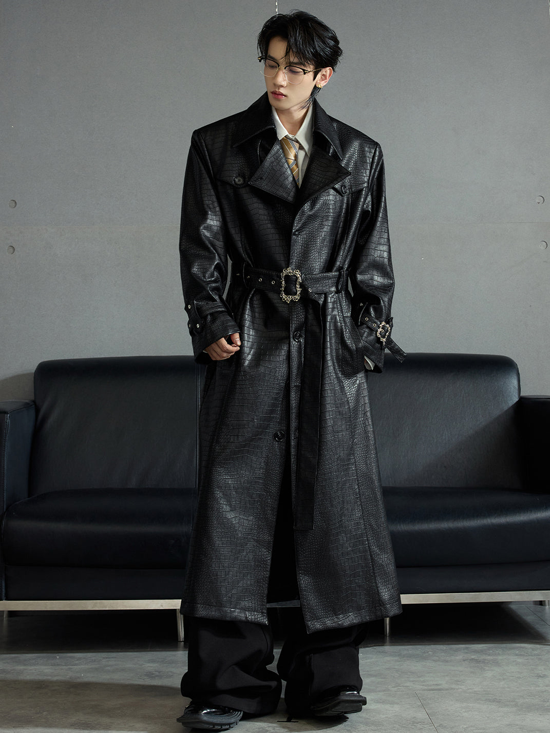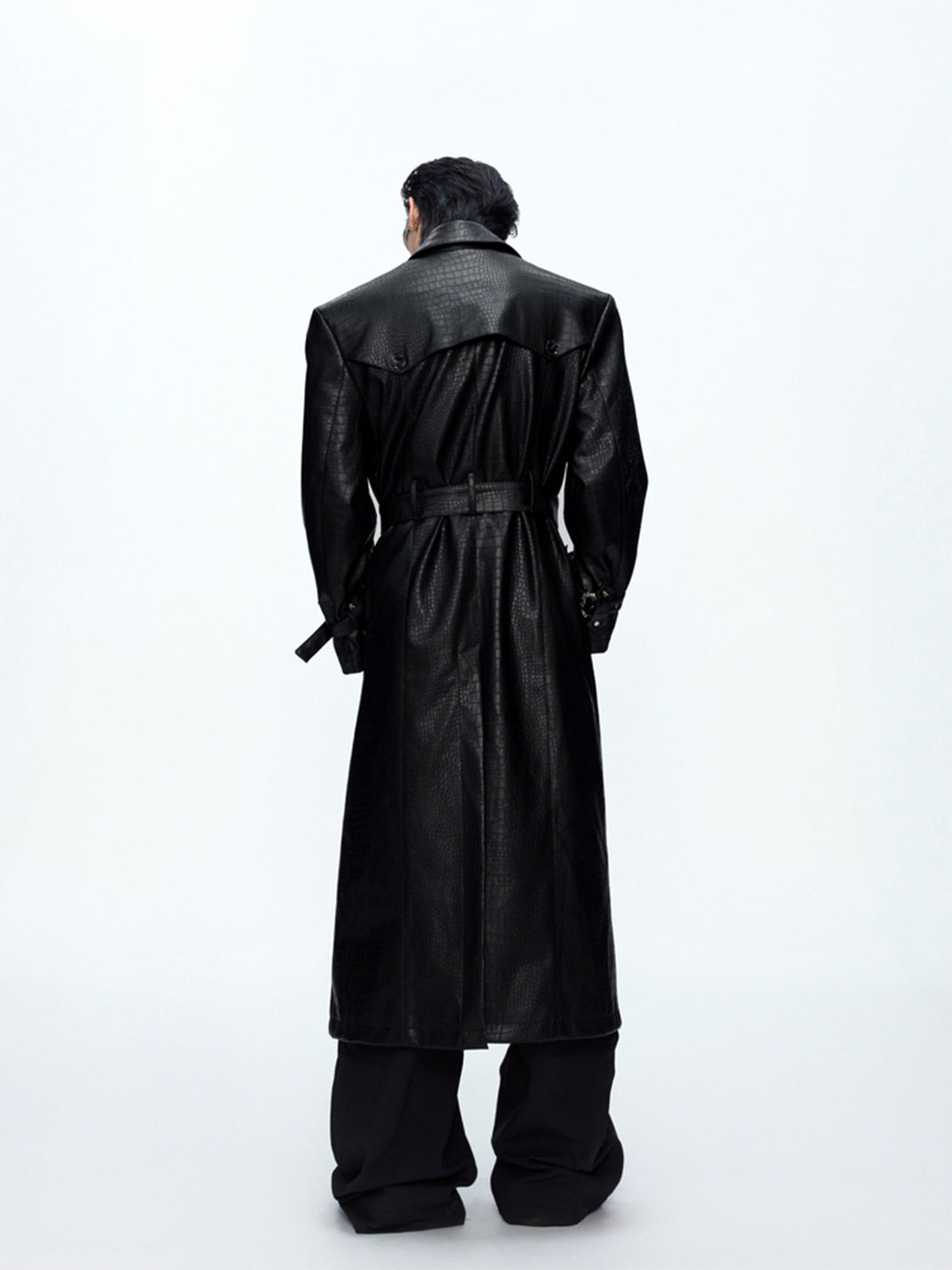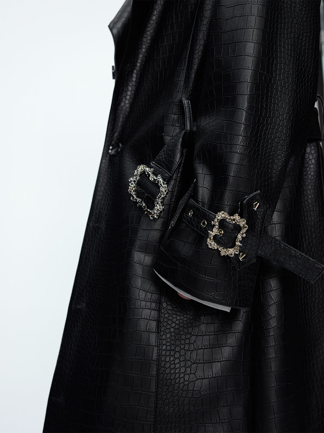 ArguE CulturE | Croc-Pattern Belted Longline Trench Coat Skip to content