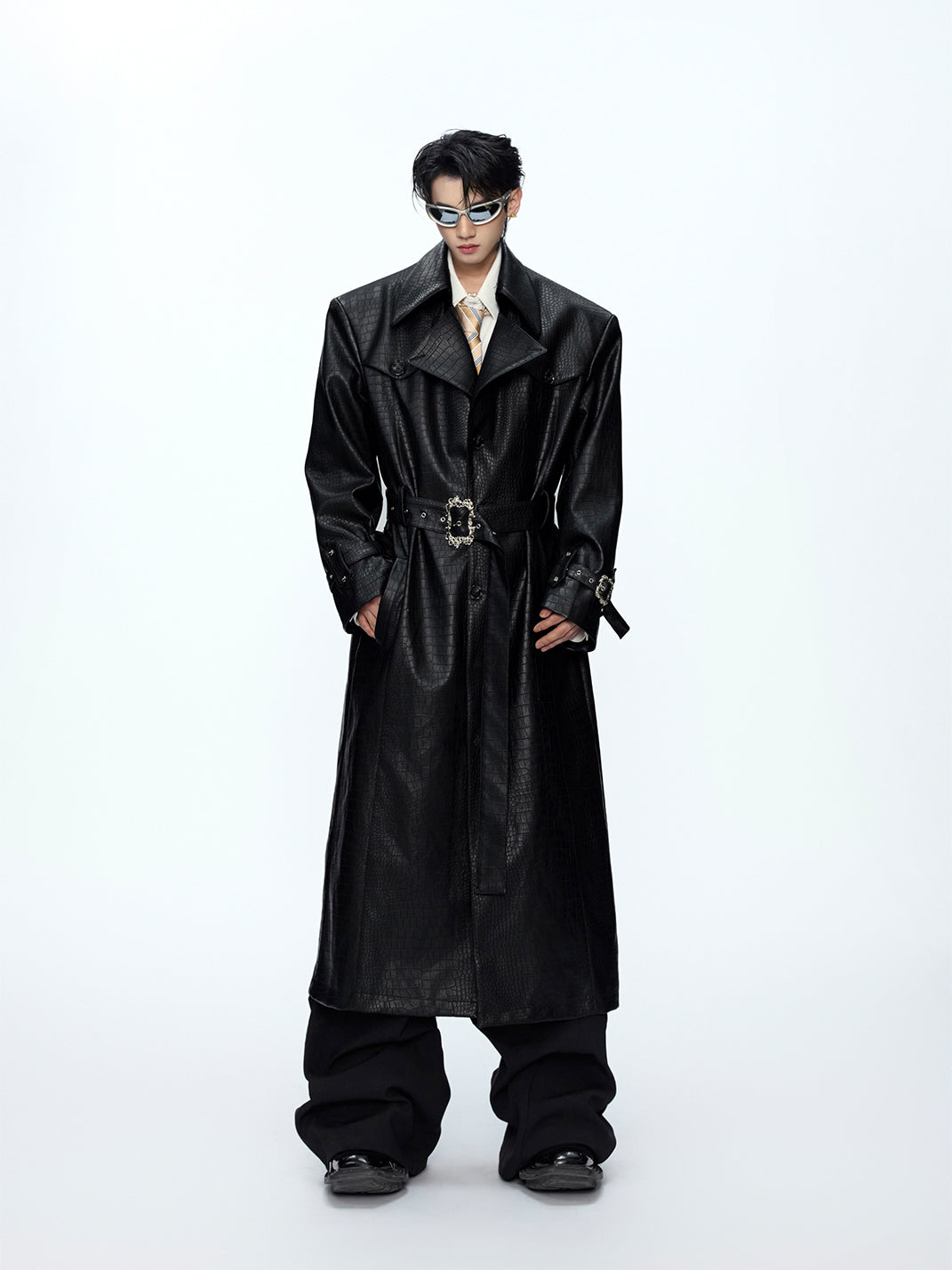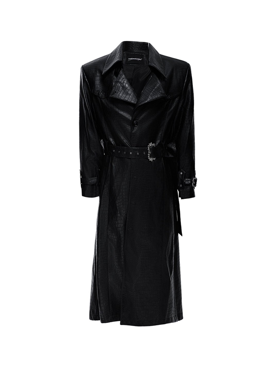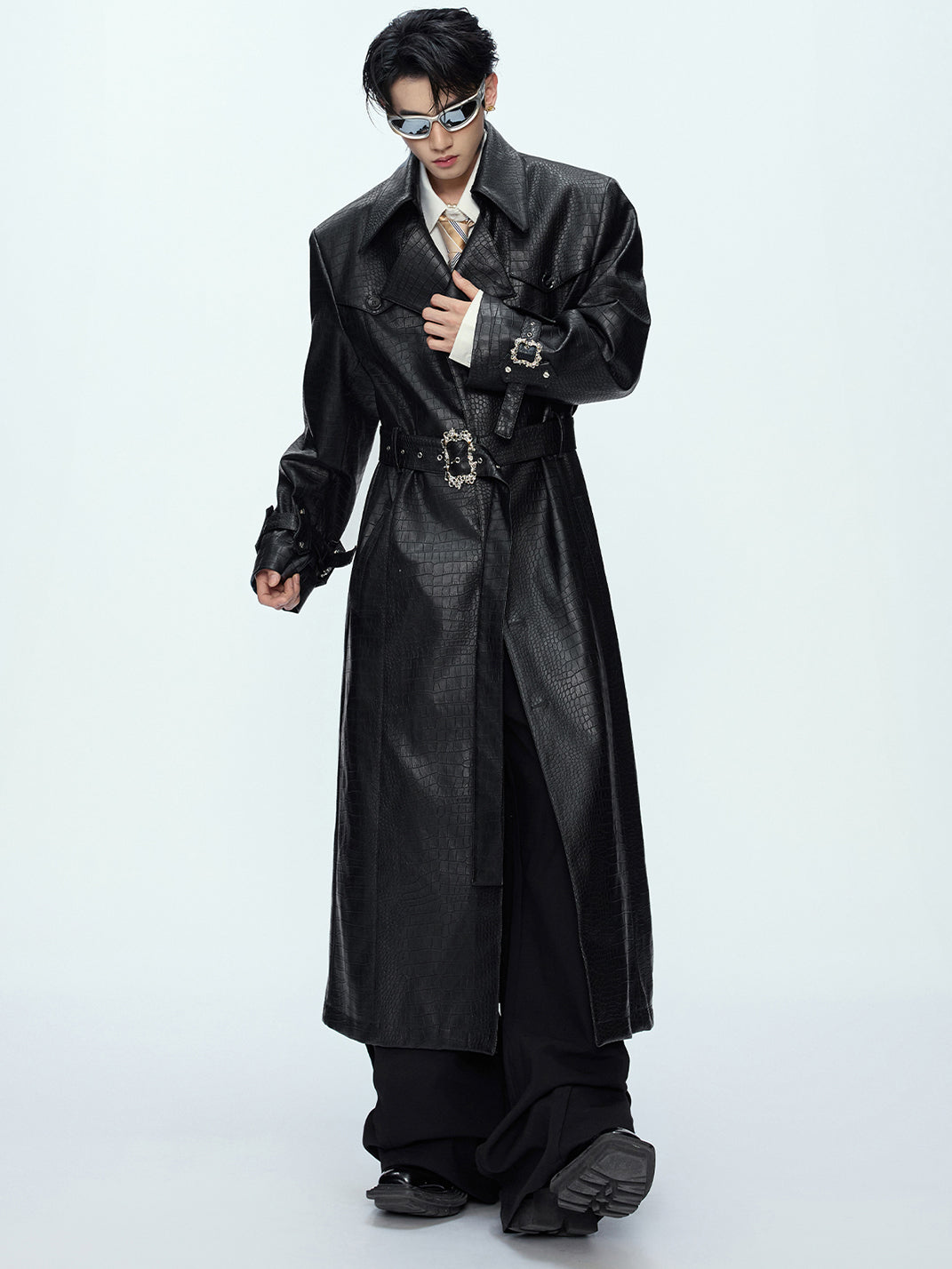 ArguE CulturE | Croc-Pattern Belted Longline Trench Coat Skip to content