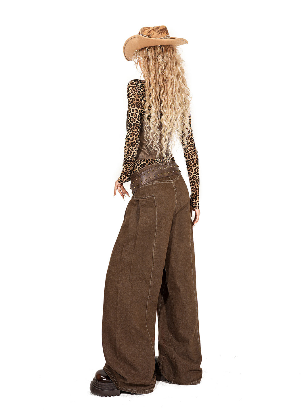 Arielink | Western Style Leopard Mesh T-shirt with Leather Bustier Ves Skip to content