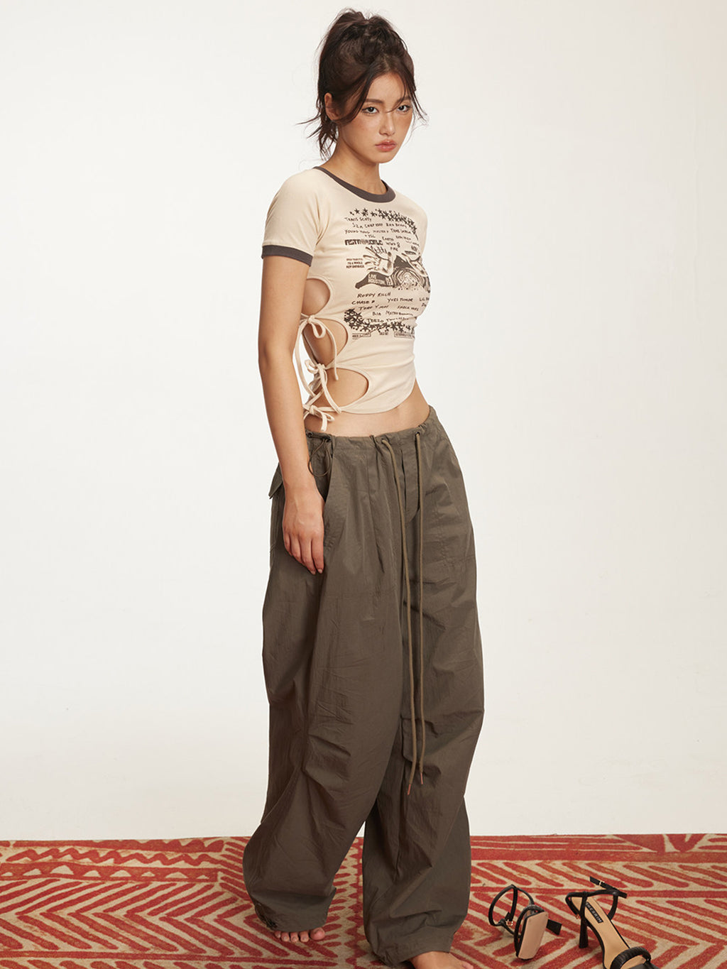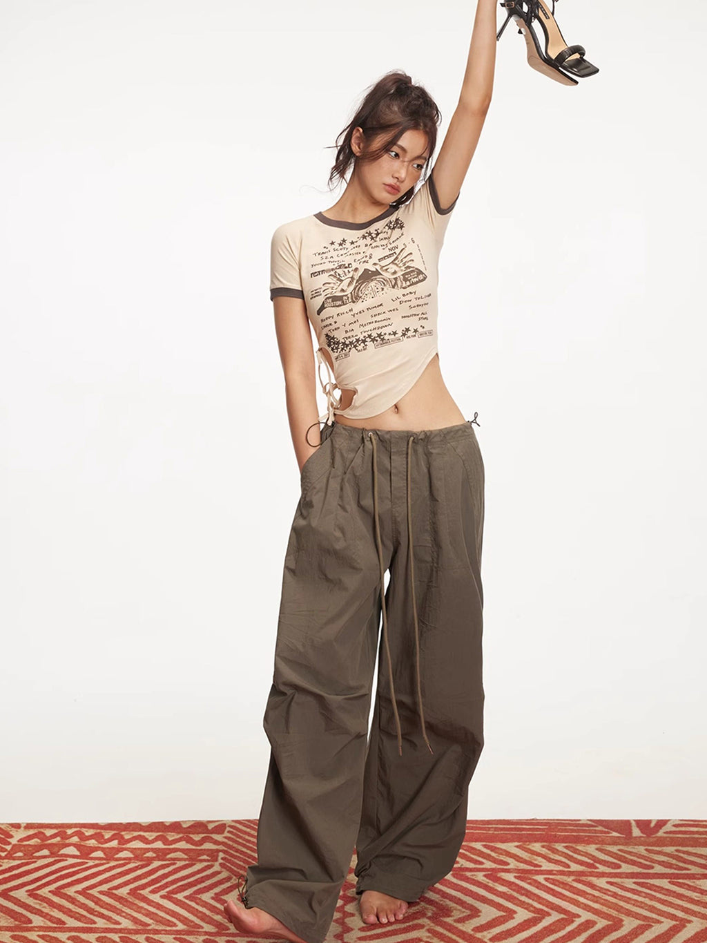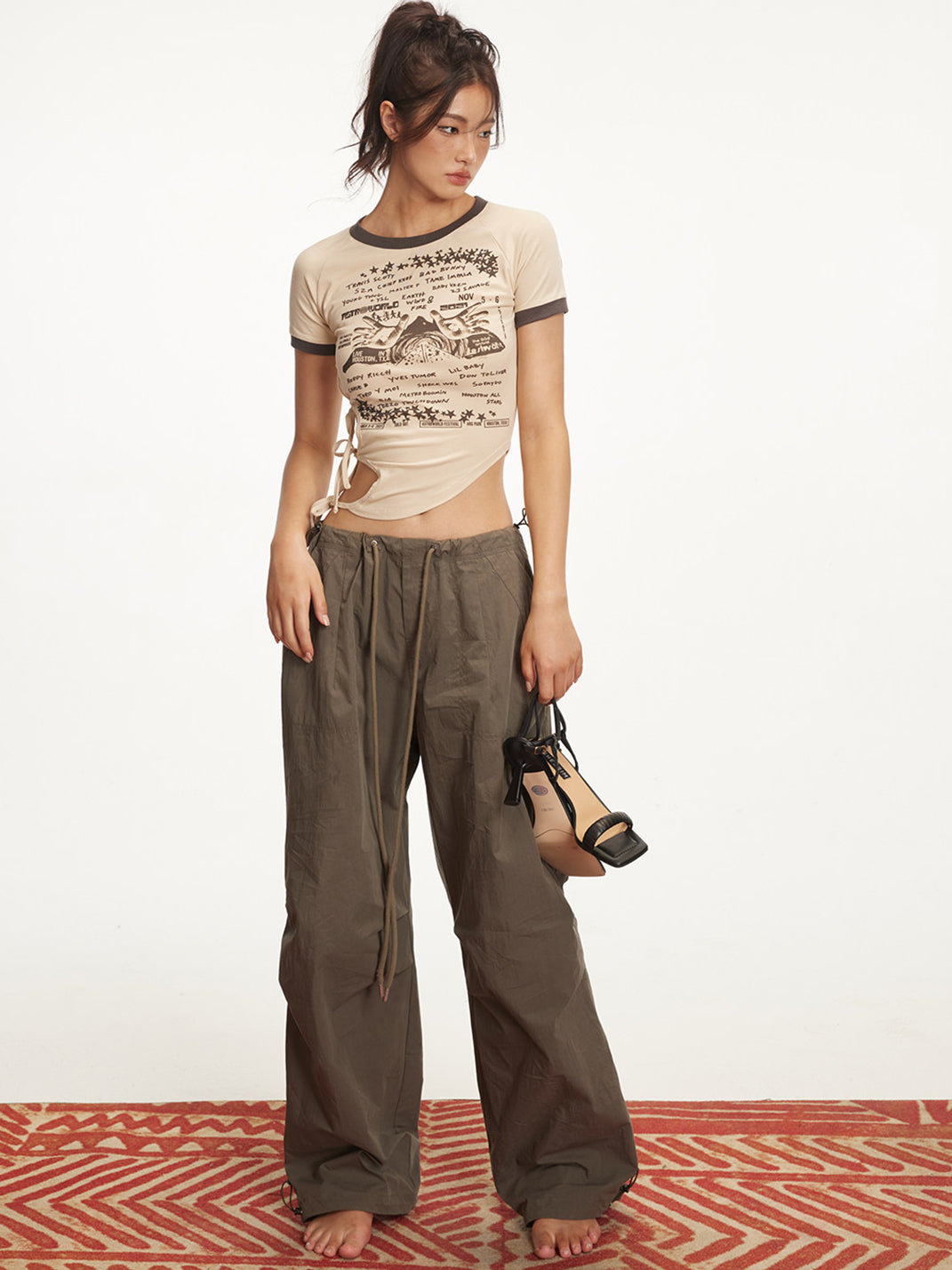 ARISEISM | Drawstring Low-Rise Cargo Pants Skip to content