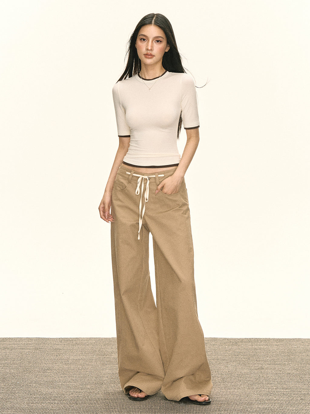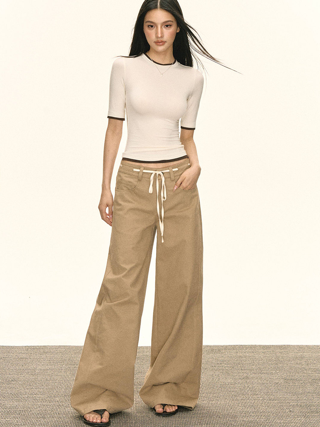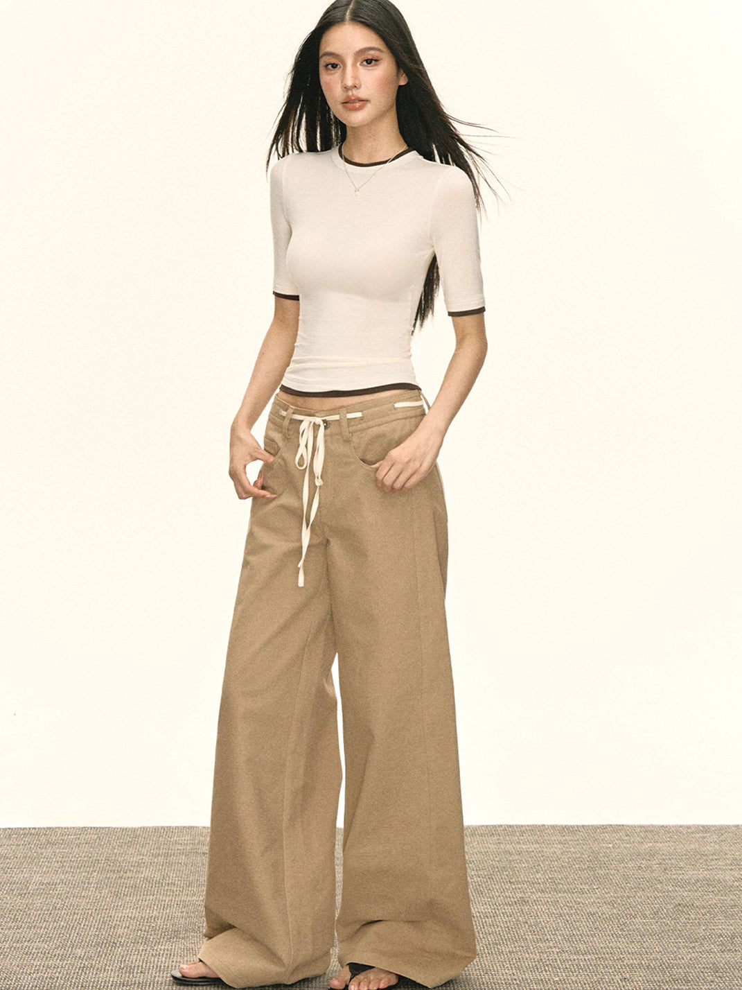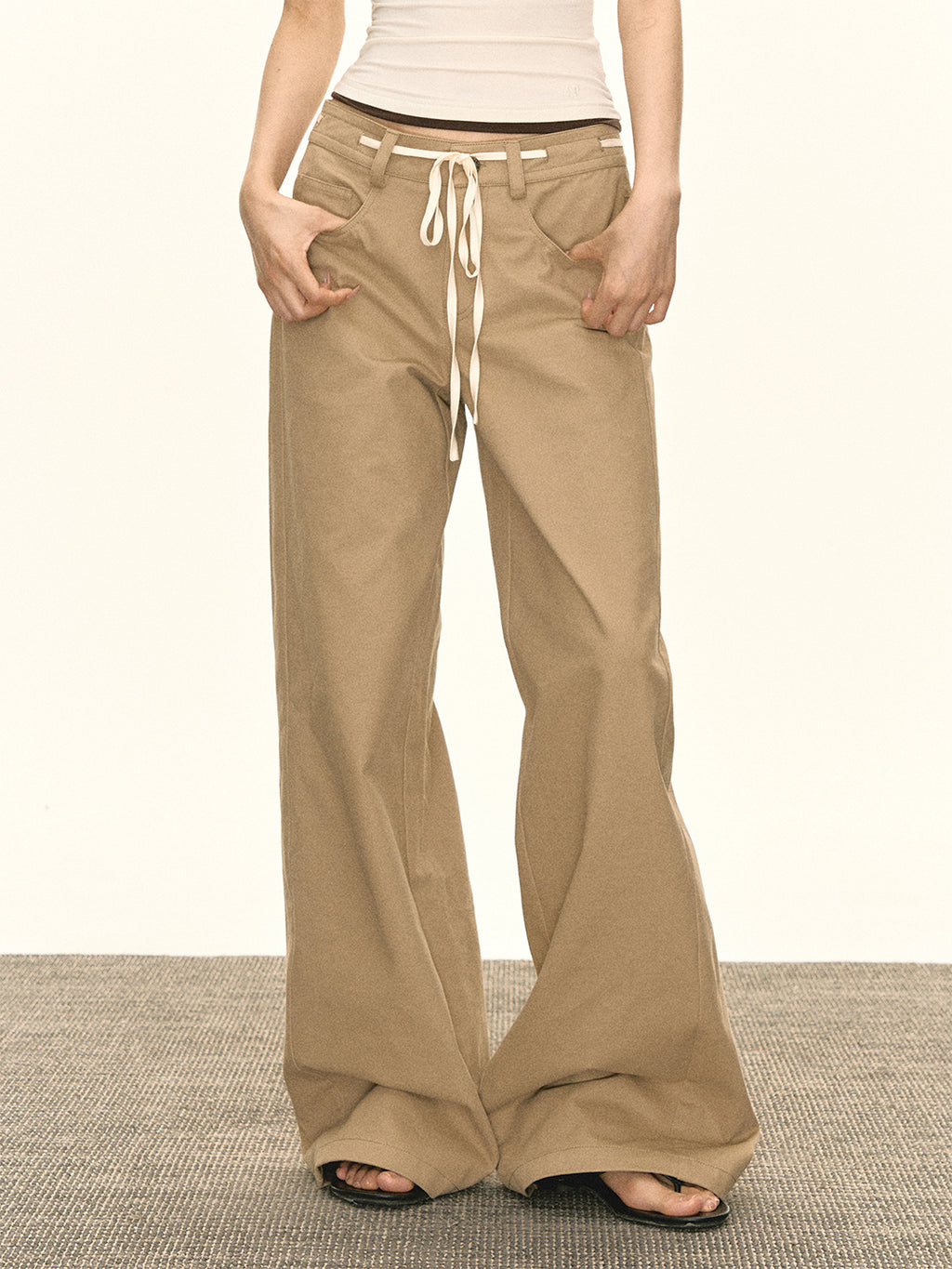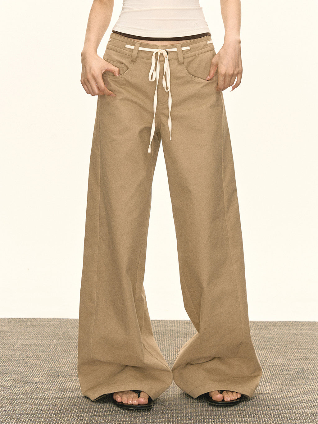 ARISEISM | Khaki Wide-Leg Casual Pants With Drawstring