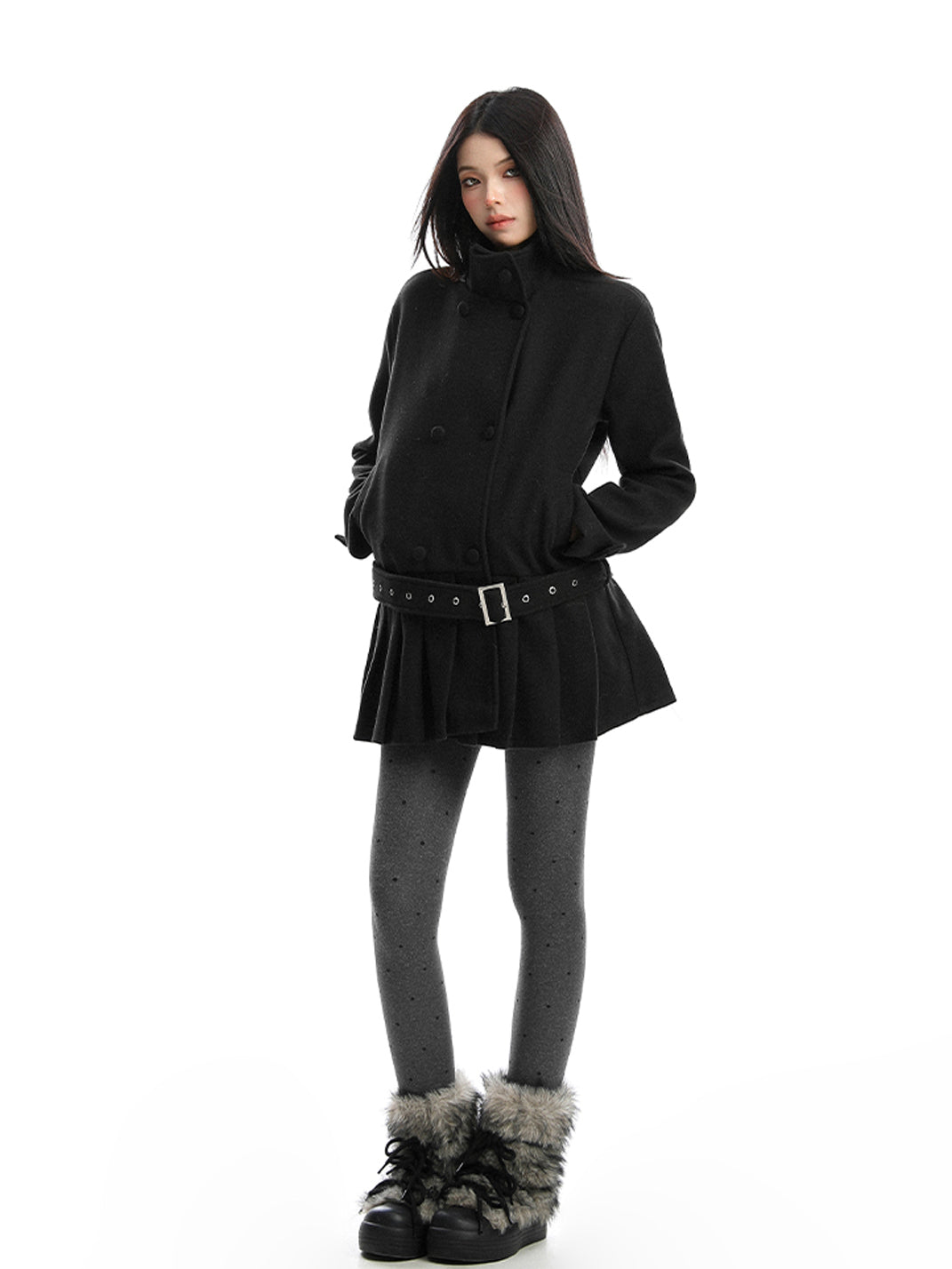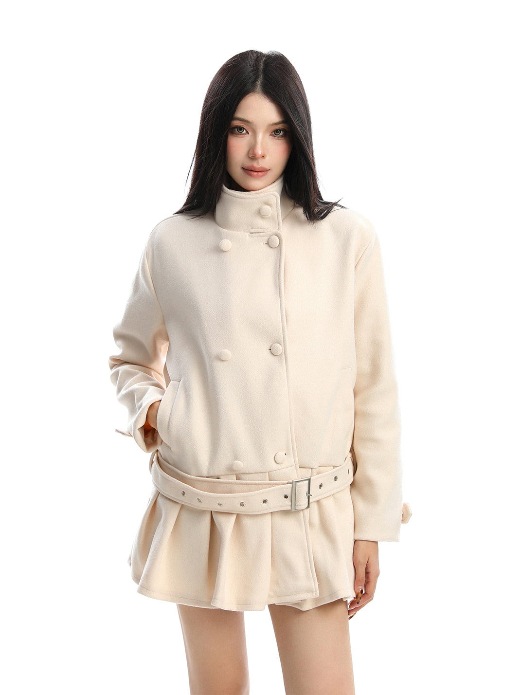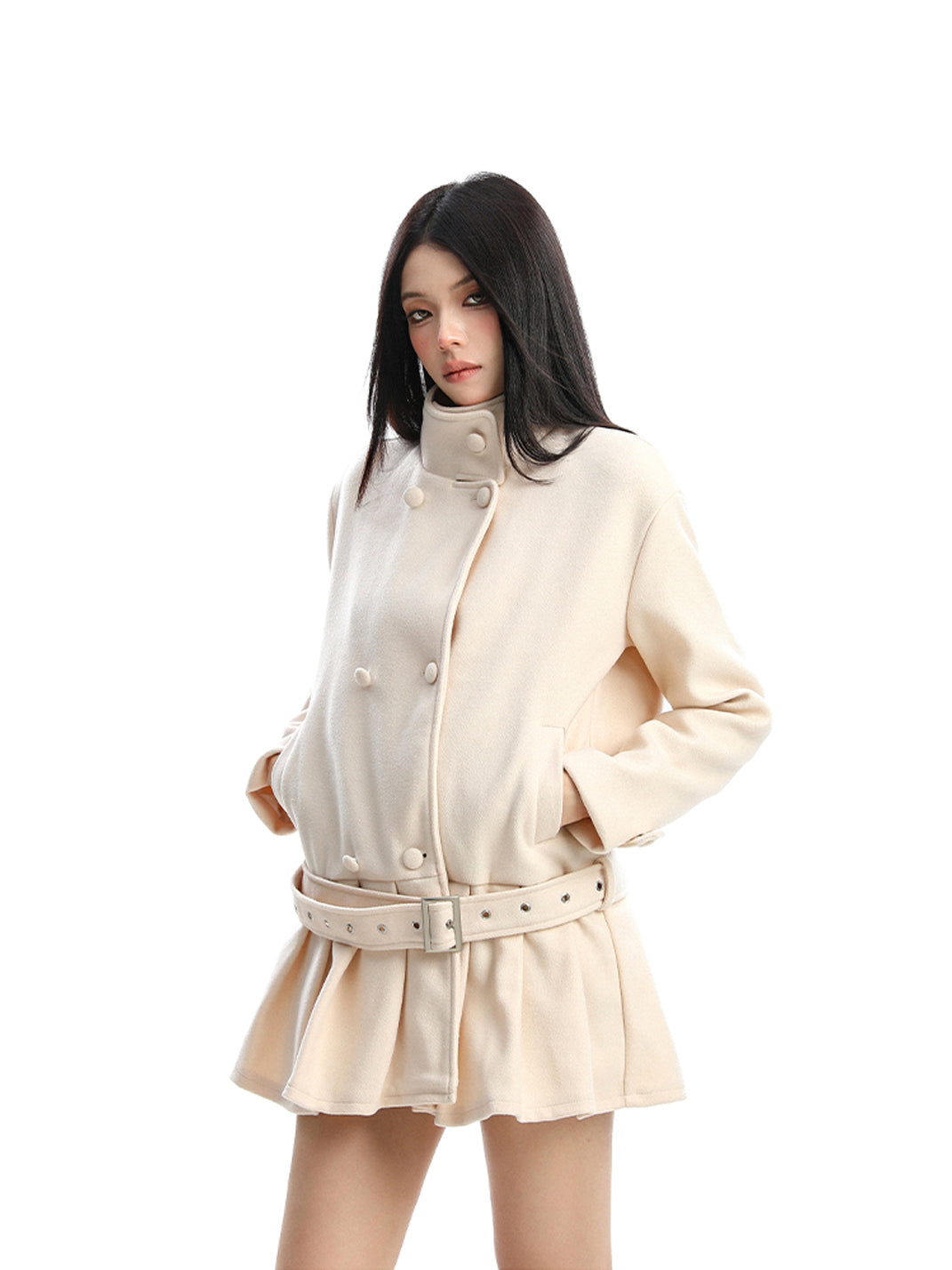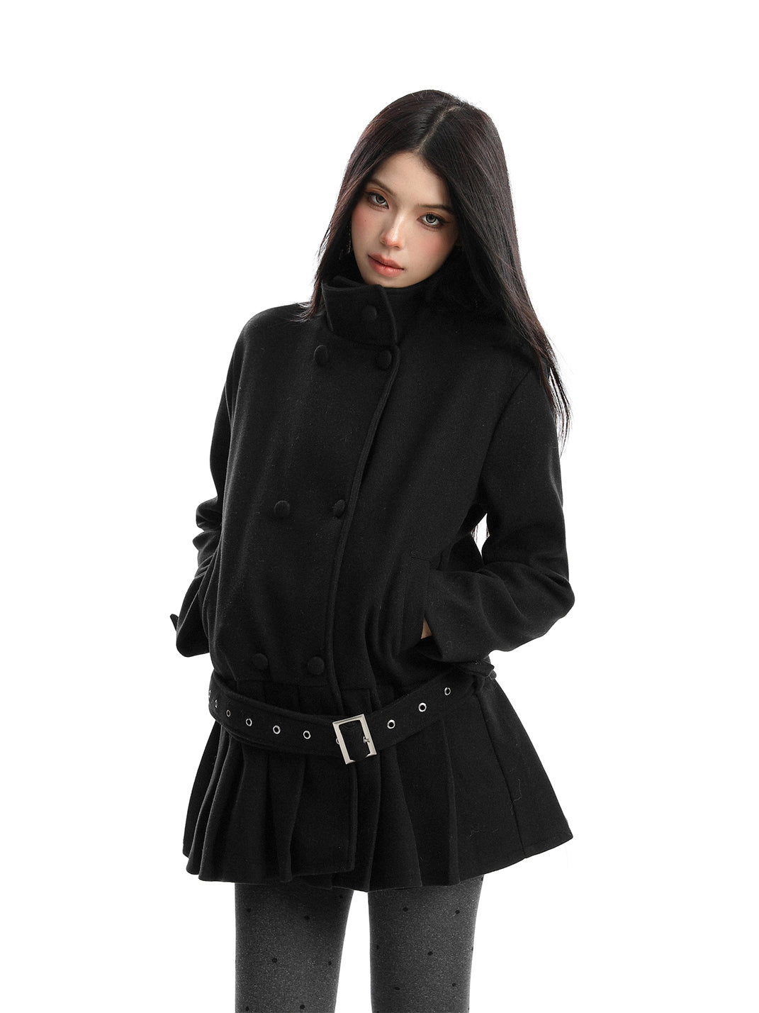 BIGGOLD | Double-Breasted Stand Collar Wool Coat