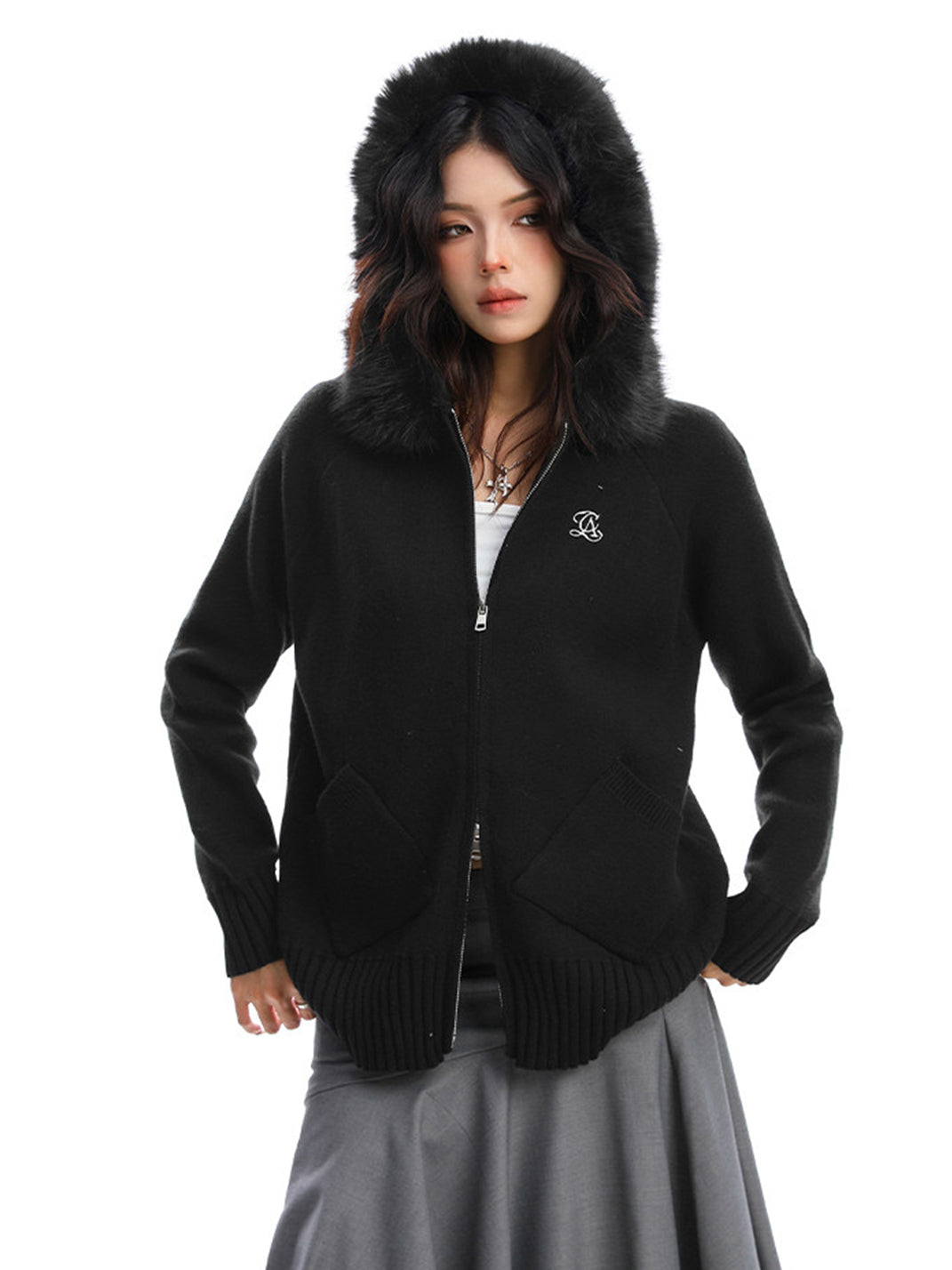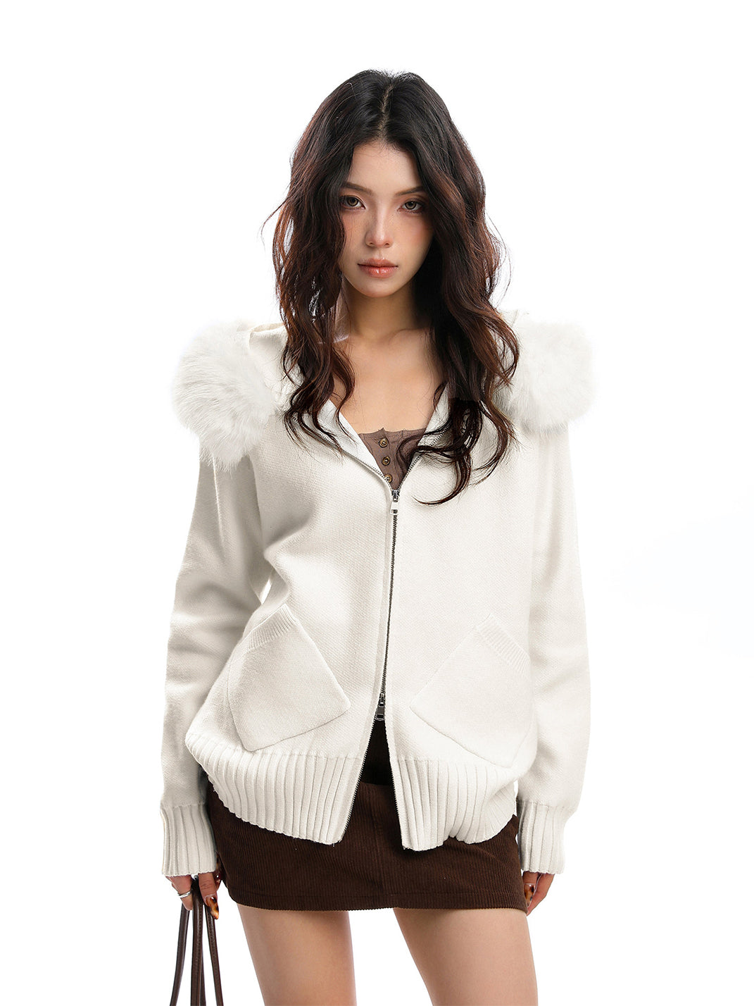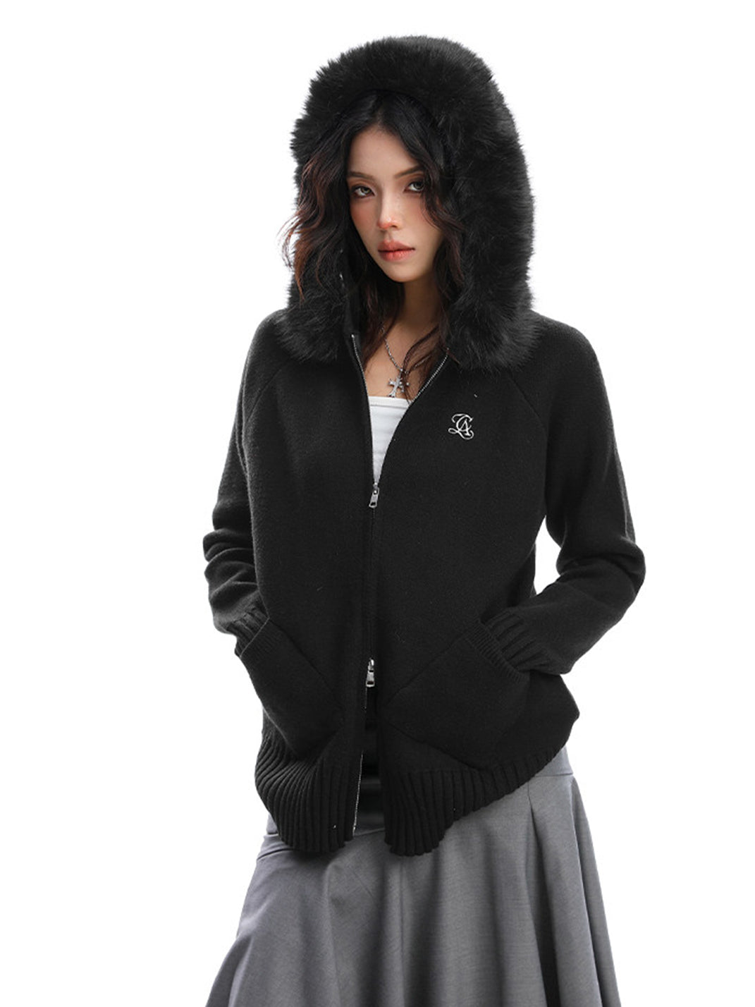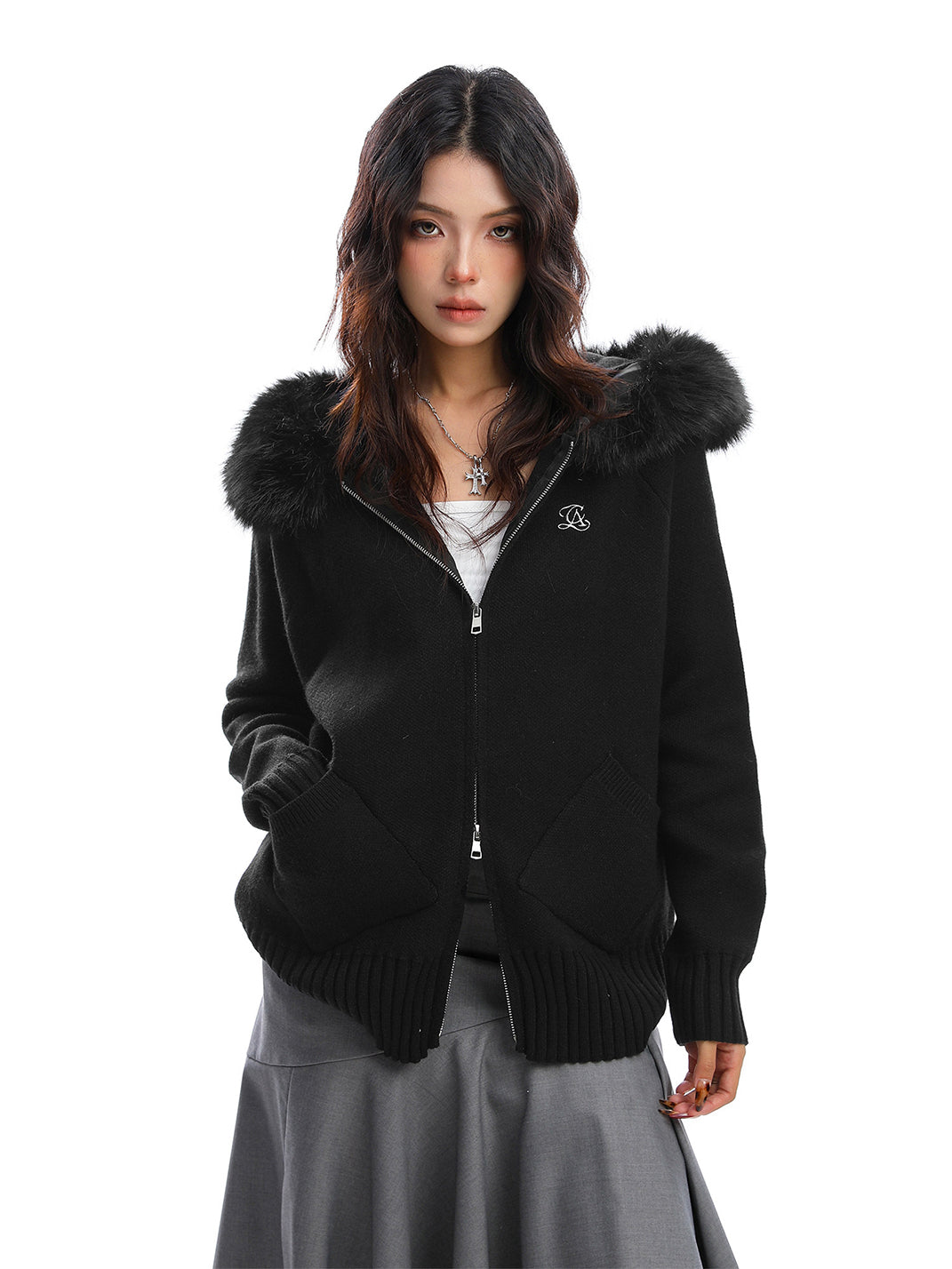 BIGGOLD | Fur-Collar Hooded Sweater Skip to content