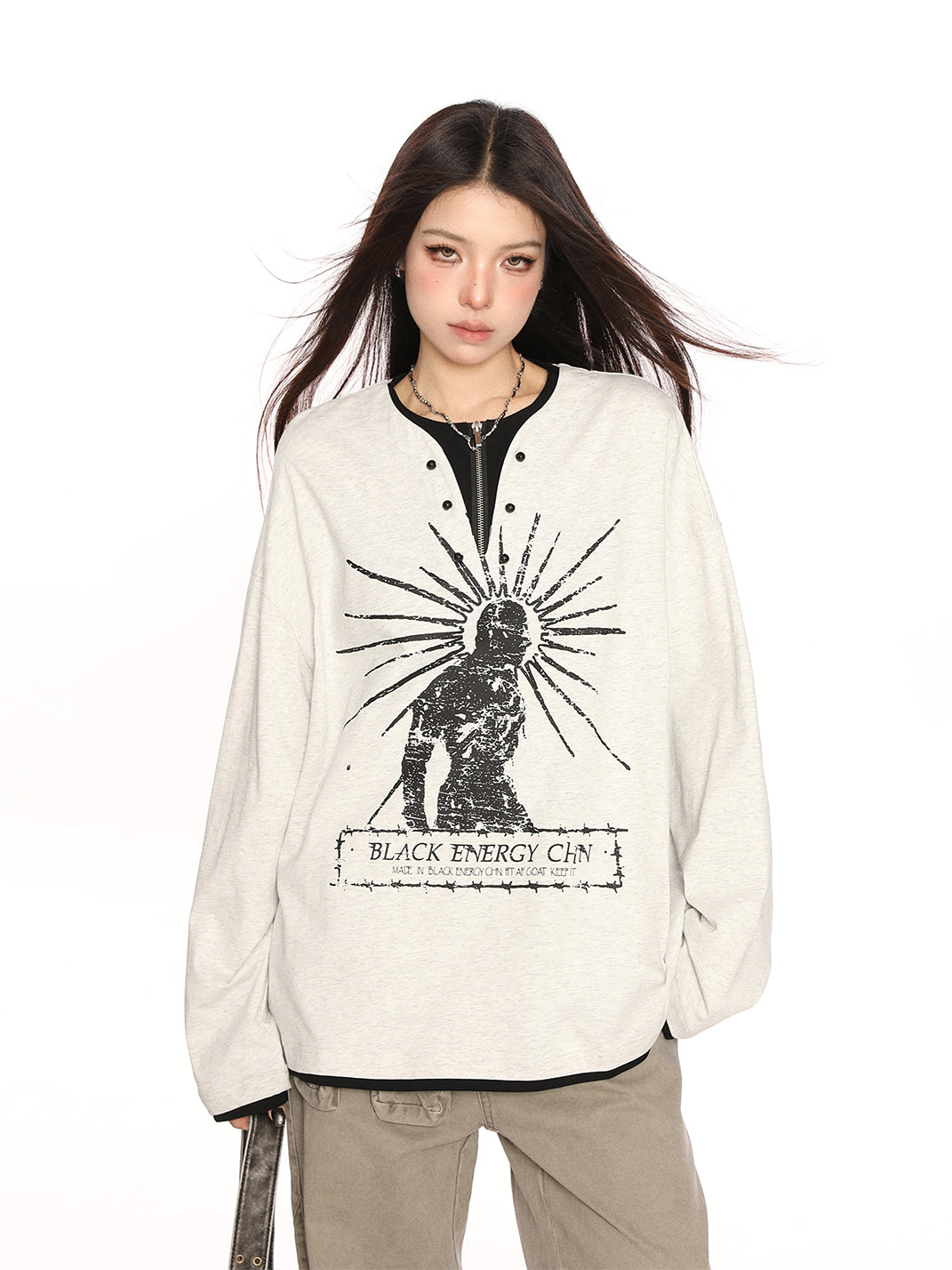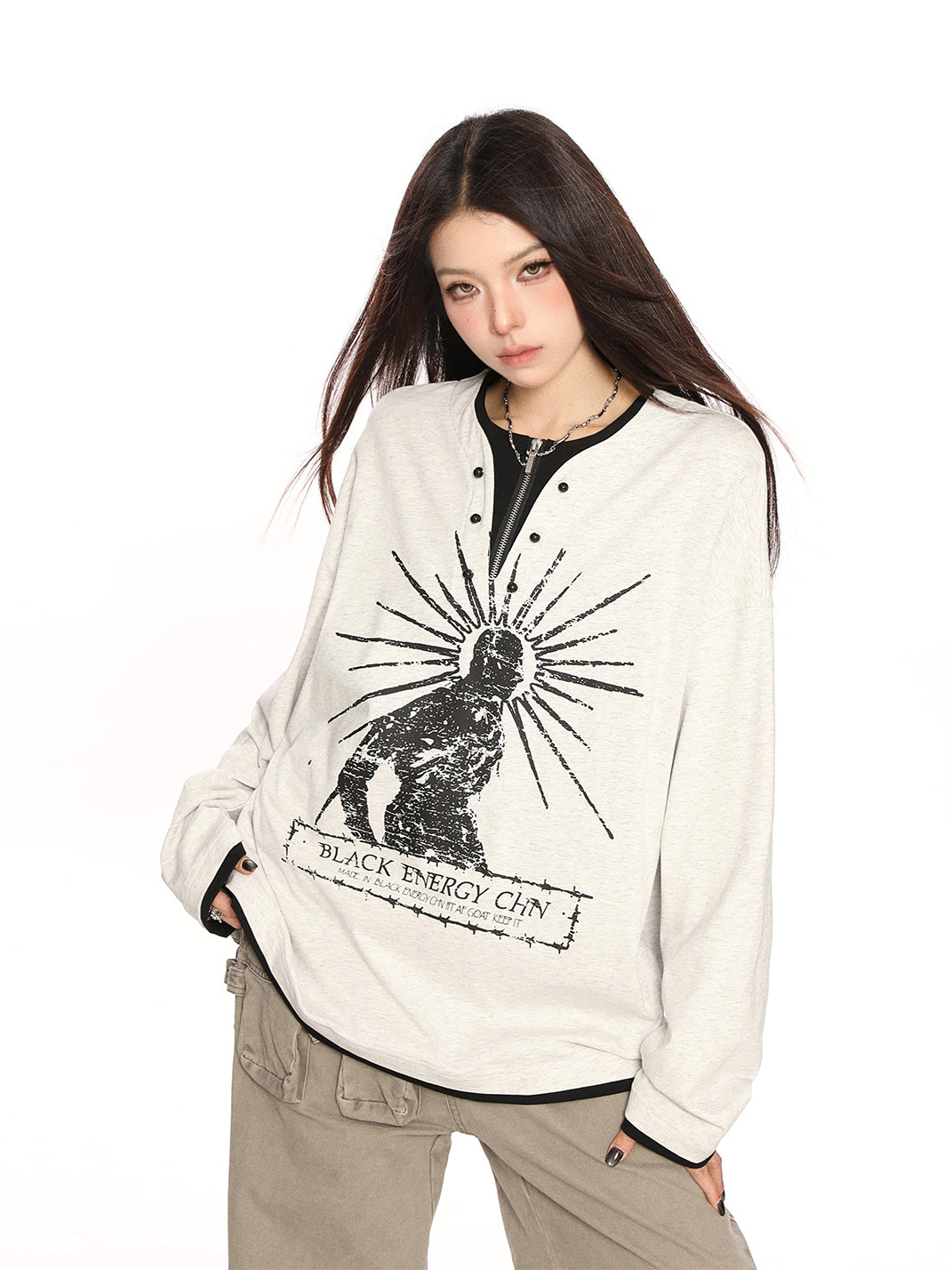 BIGGOLD | Graffiti Print Faux Two-Piece Long Sleeve