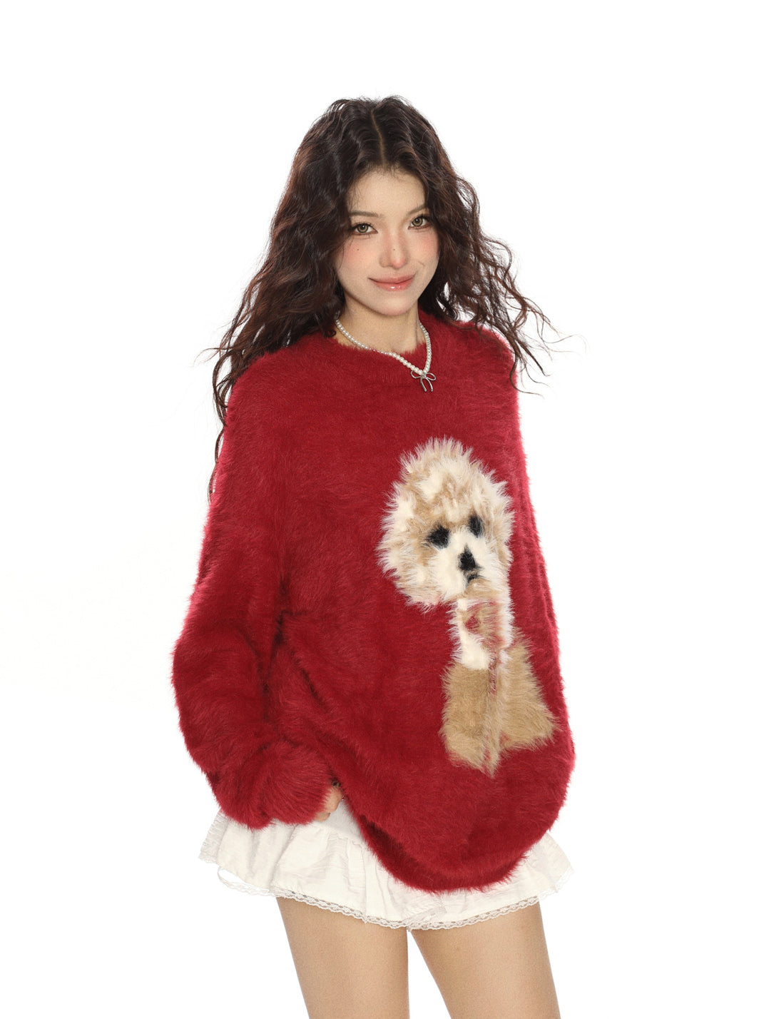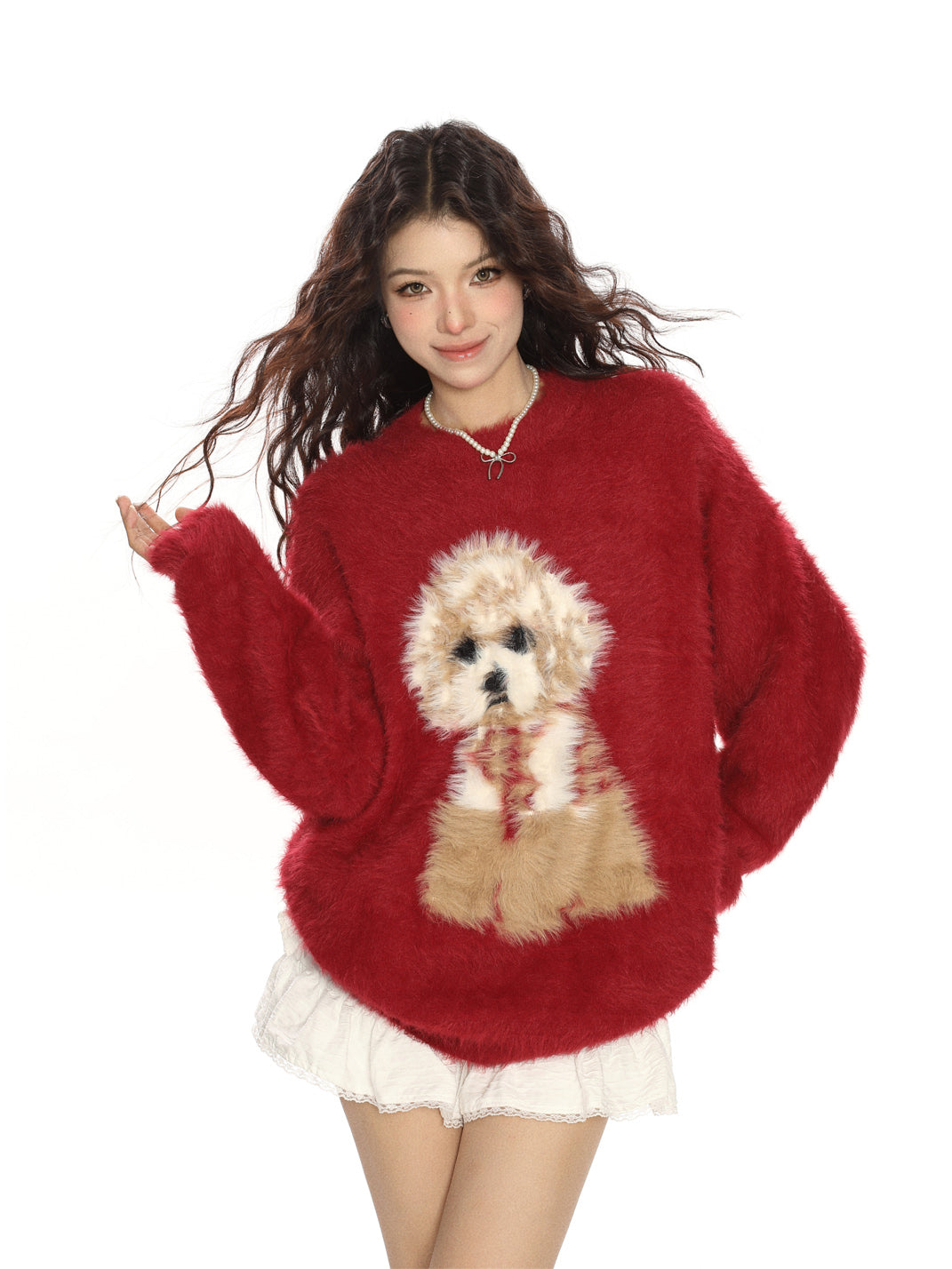 BIGGOLD | Red Christmas Dog Mohair Sweater Skip to content