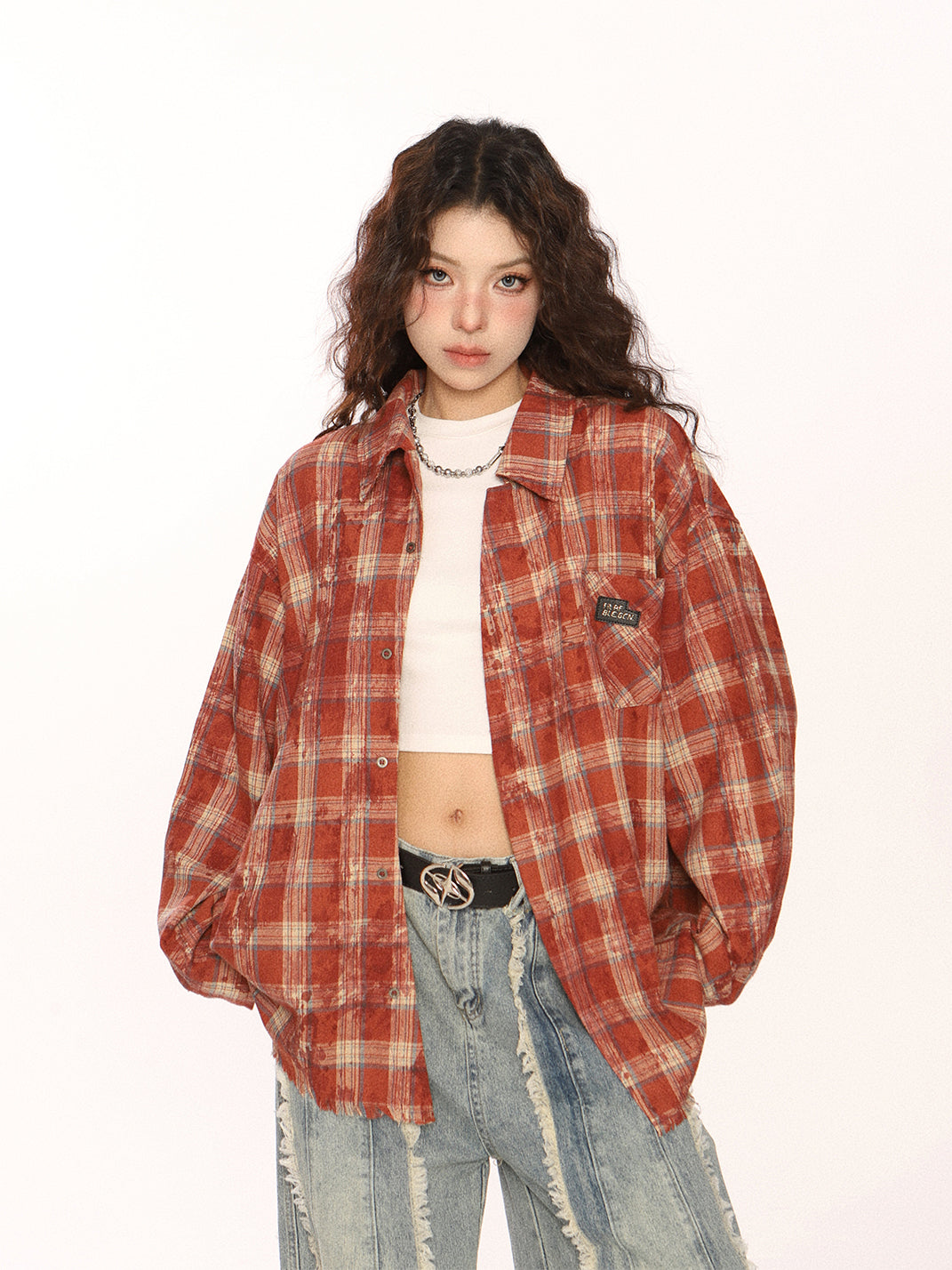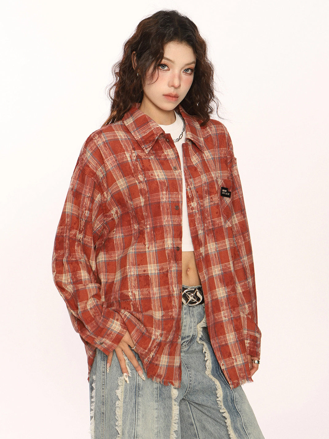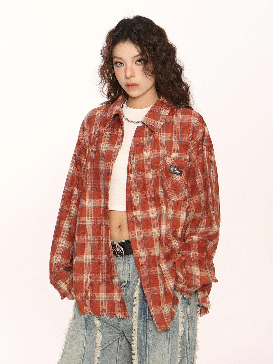 BIGGOLD | Retro Plaid Raw-Edge Shirt Skip to content
