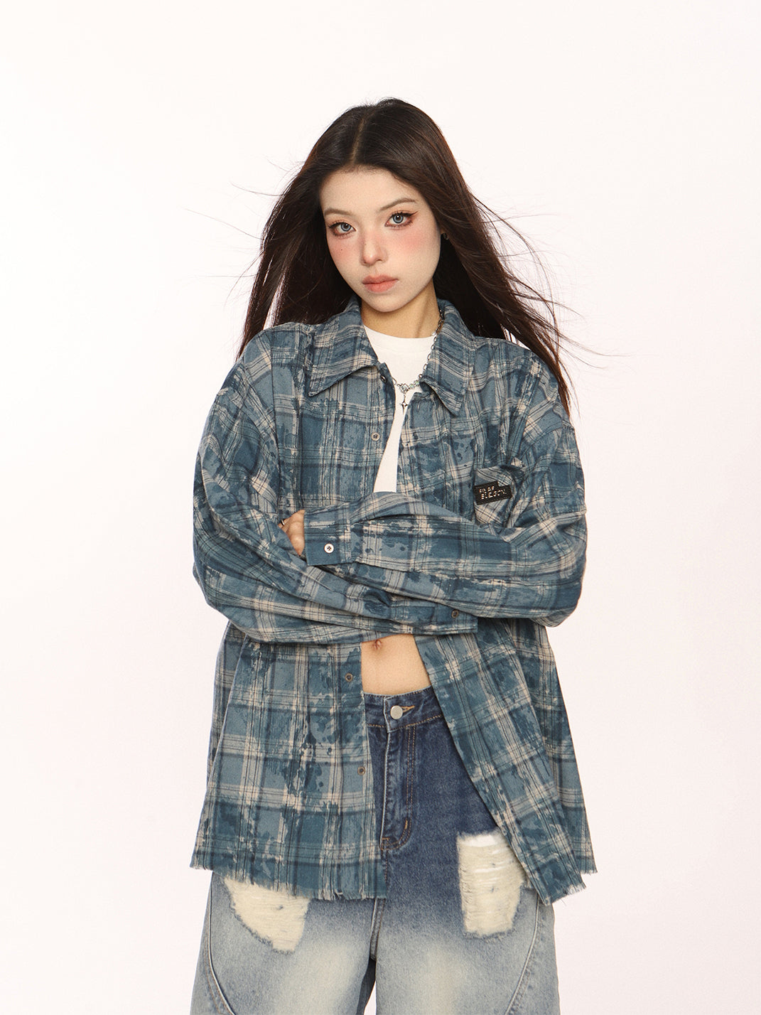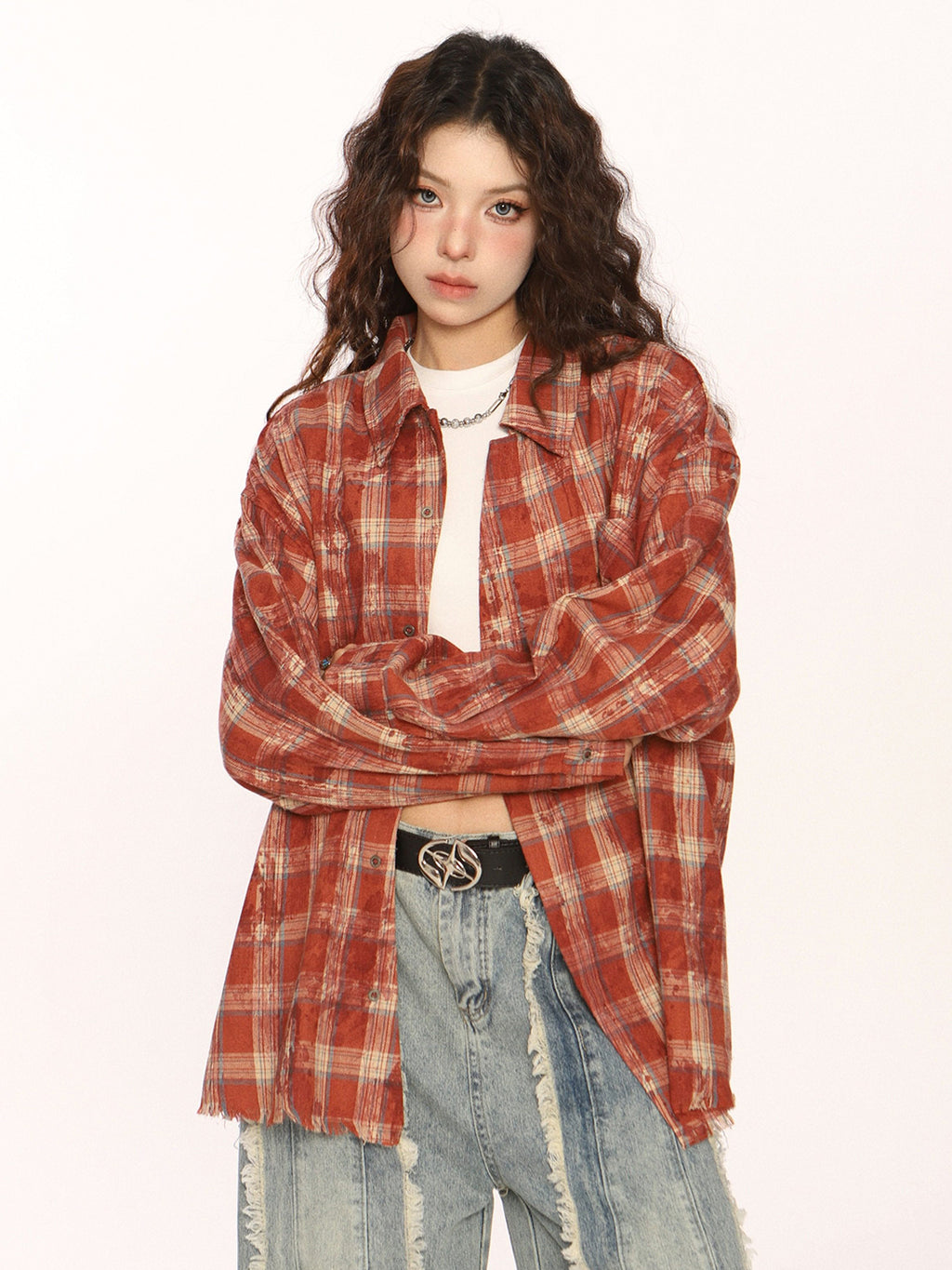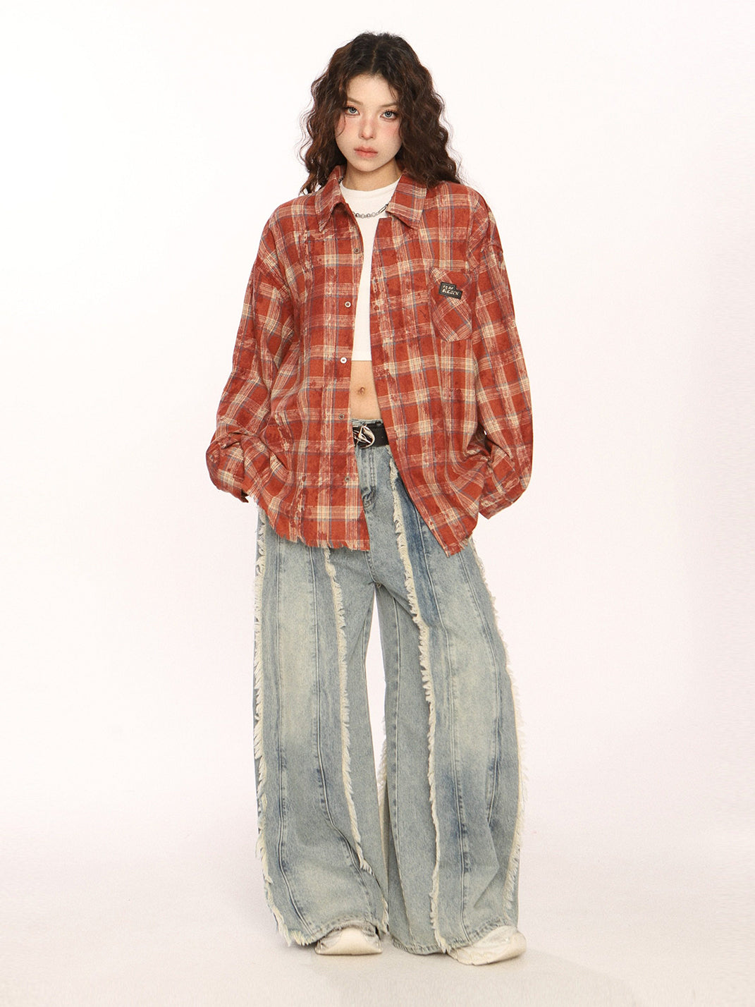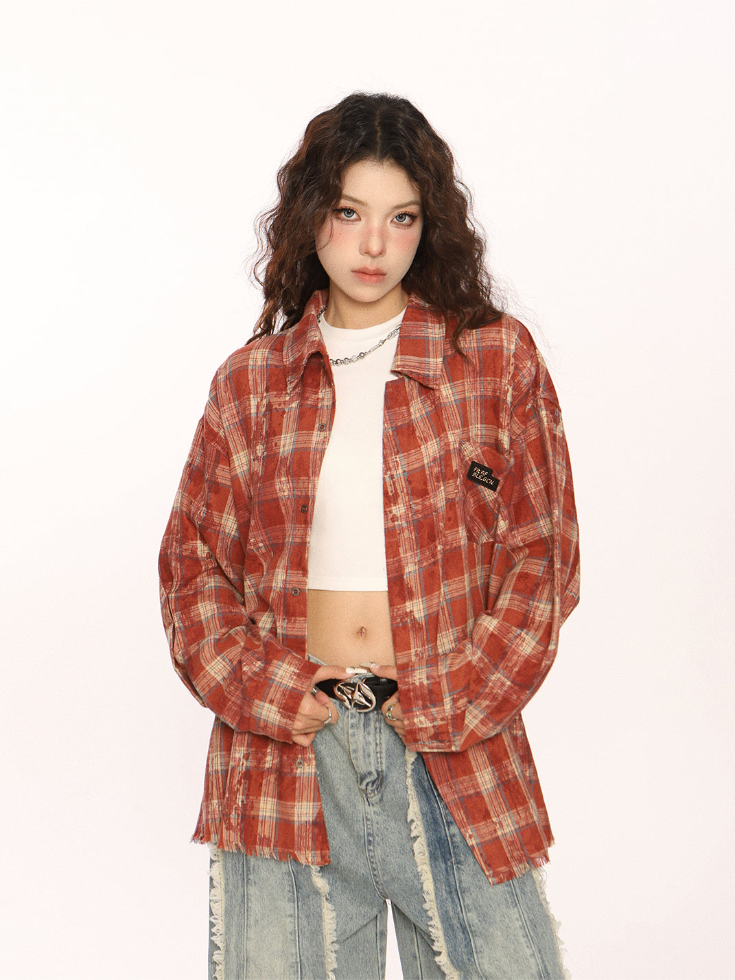BIGGOLD | Retro Plaid Raw-Edge Shirt Skip to content