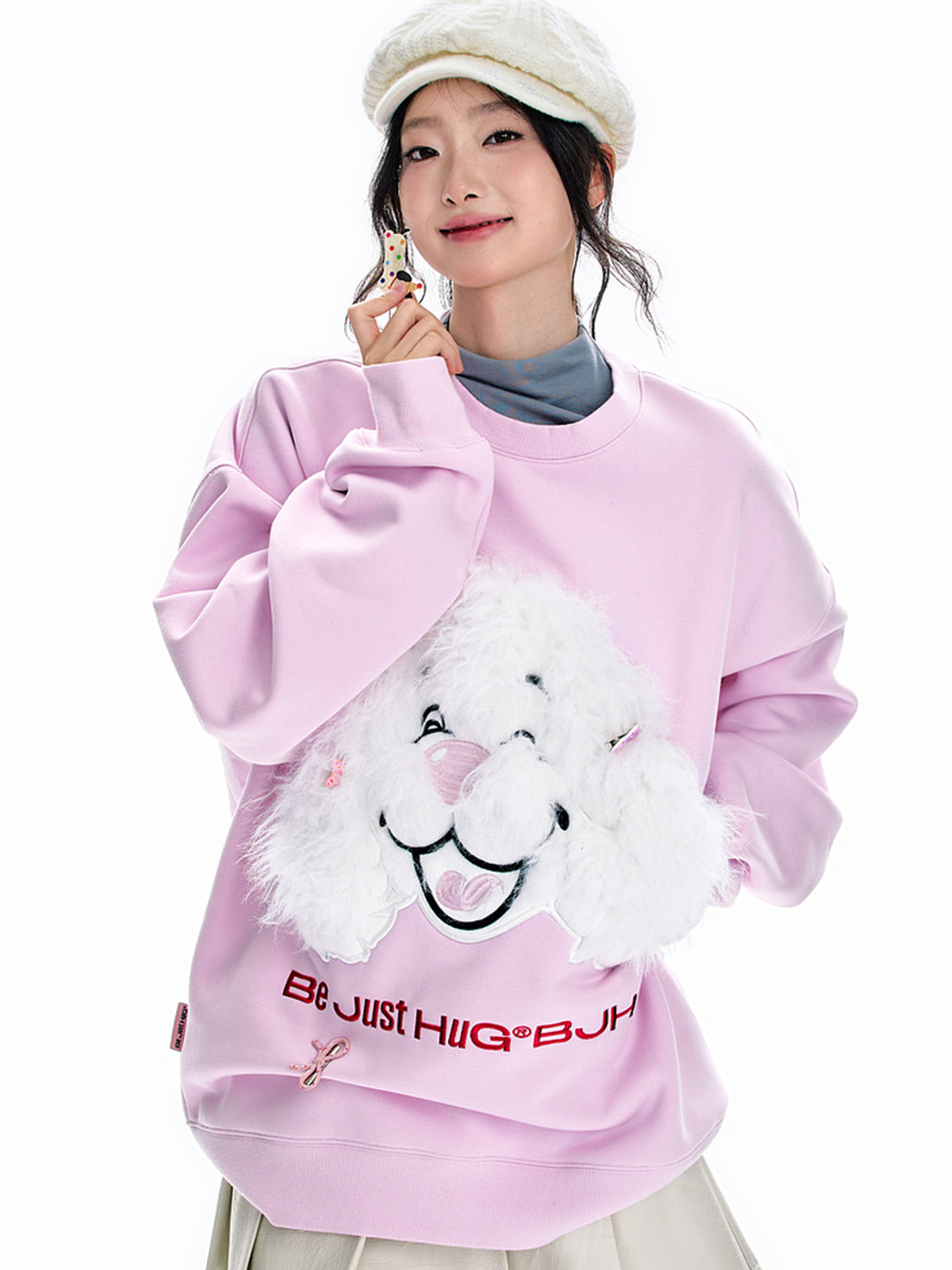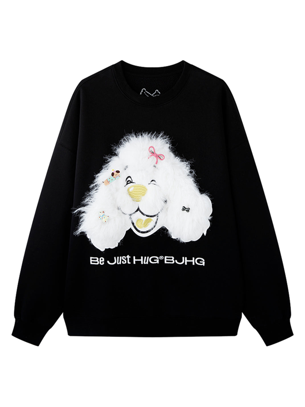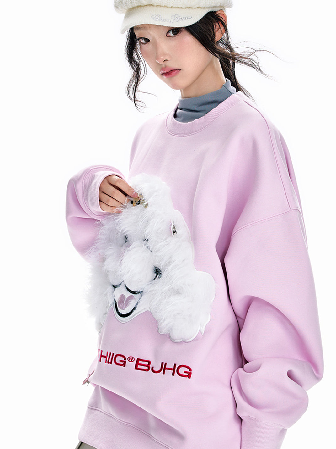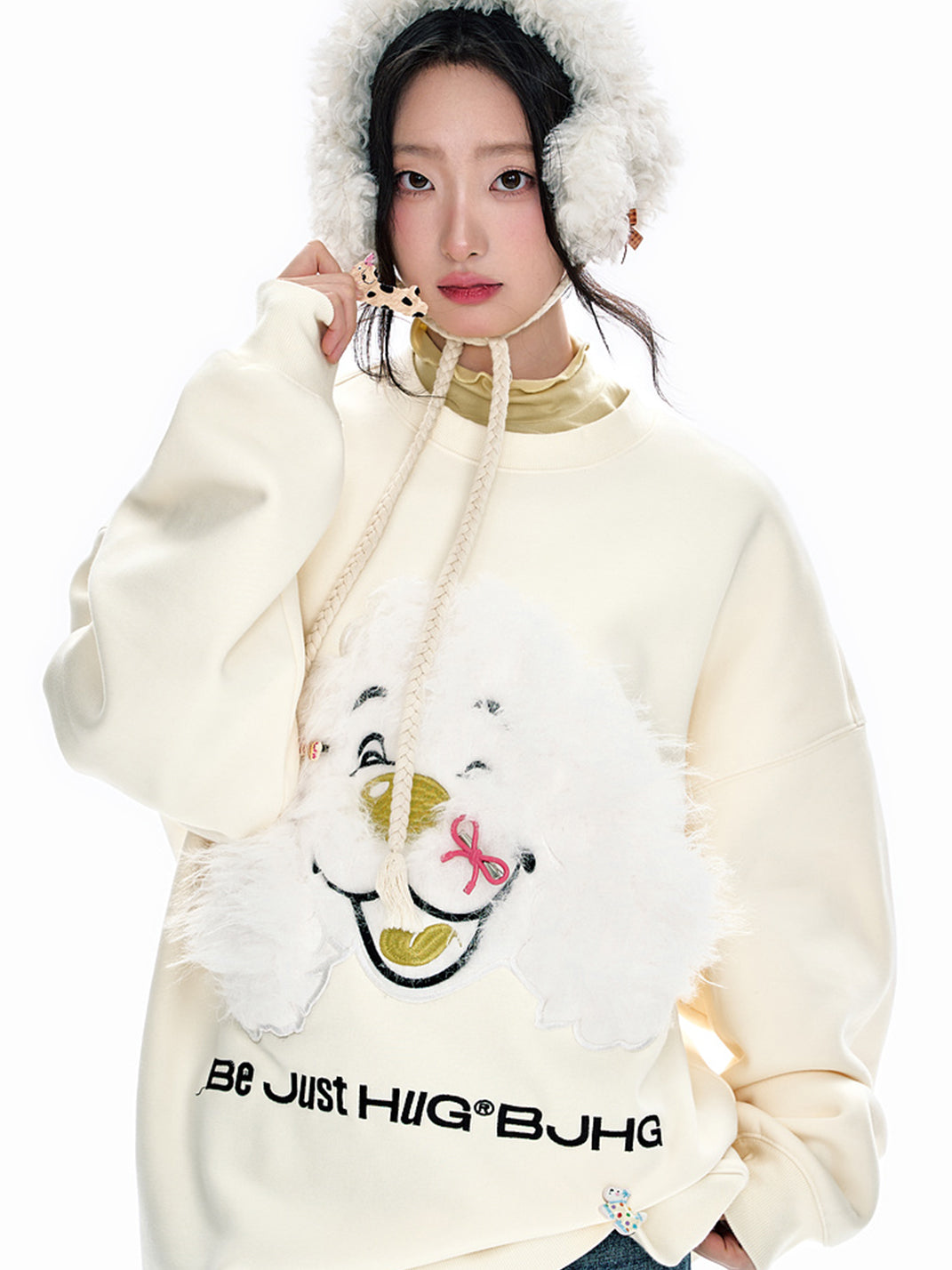 BJHG | Fun Fleece Sweatshirt with Embroidered Poodle Design