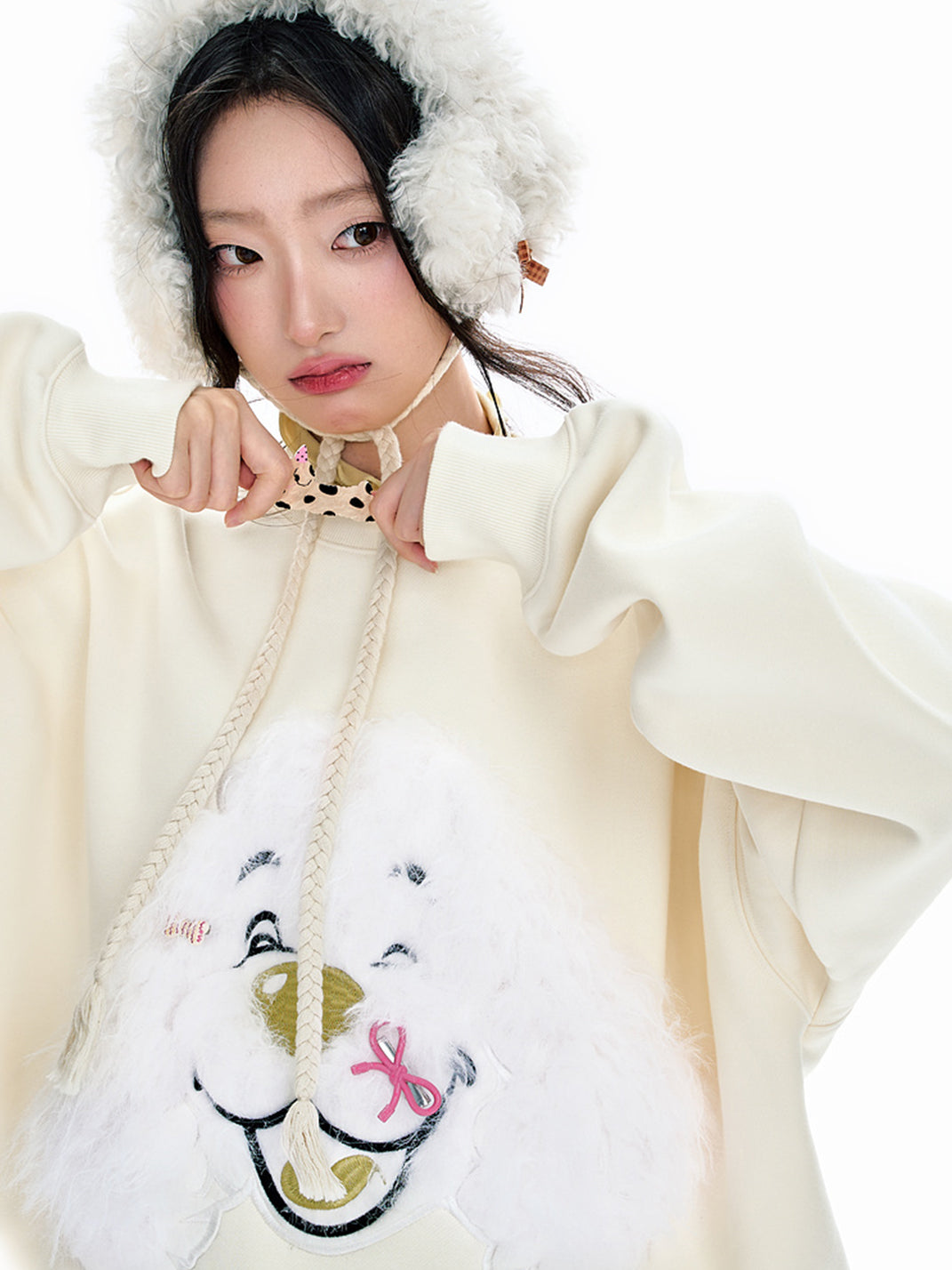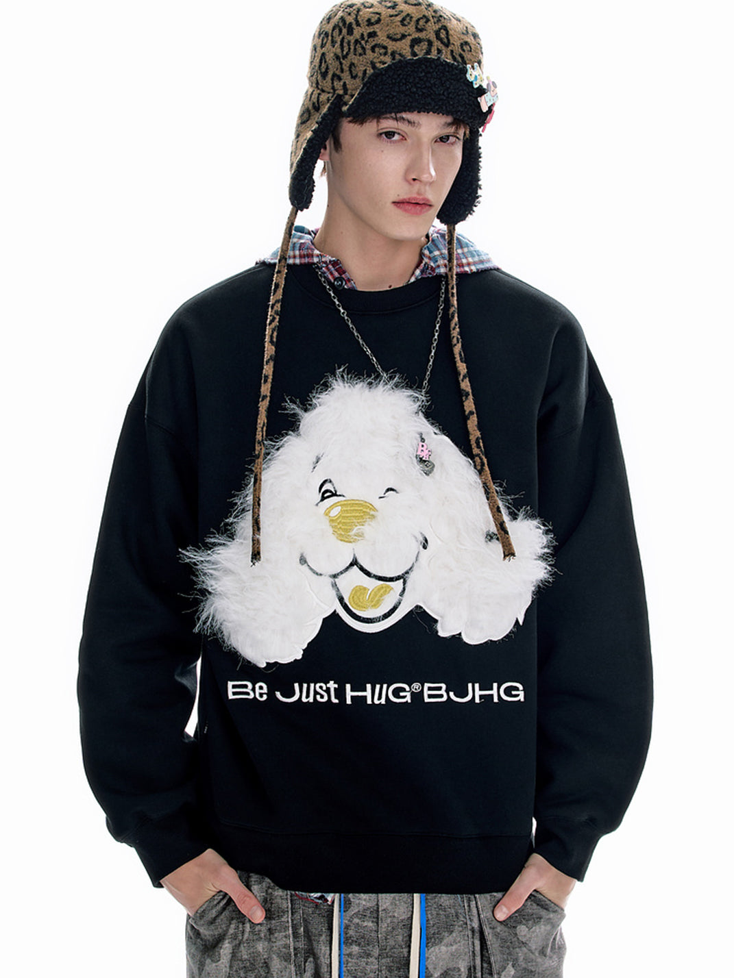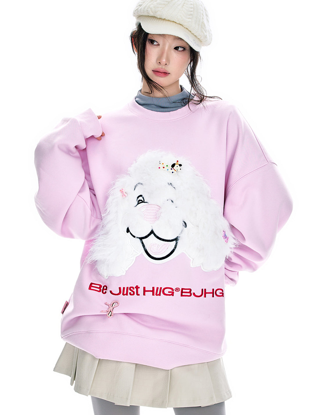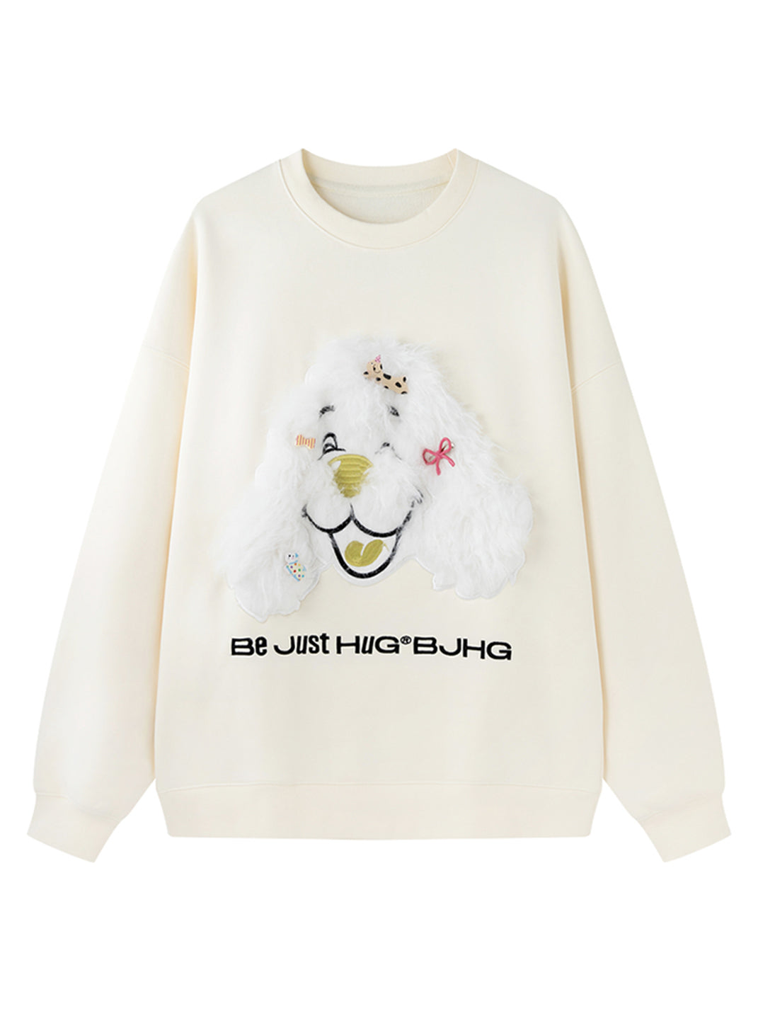 BJHG | Fun Fleece Sweatshirt with Embroidered Poodle Design