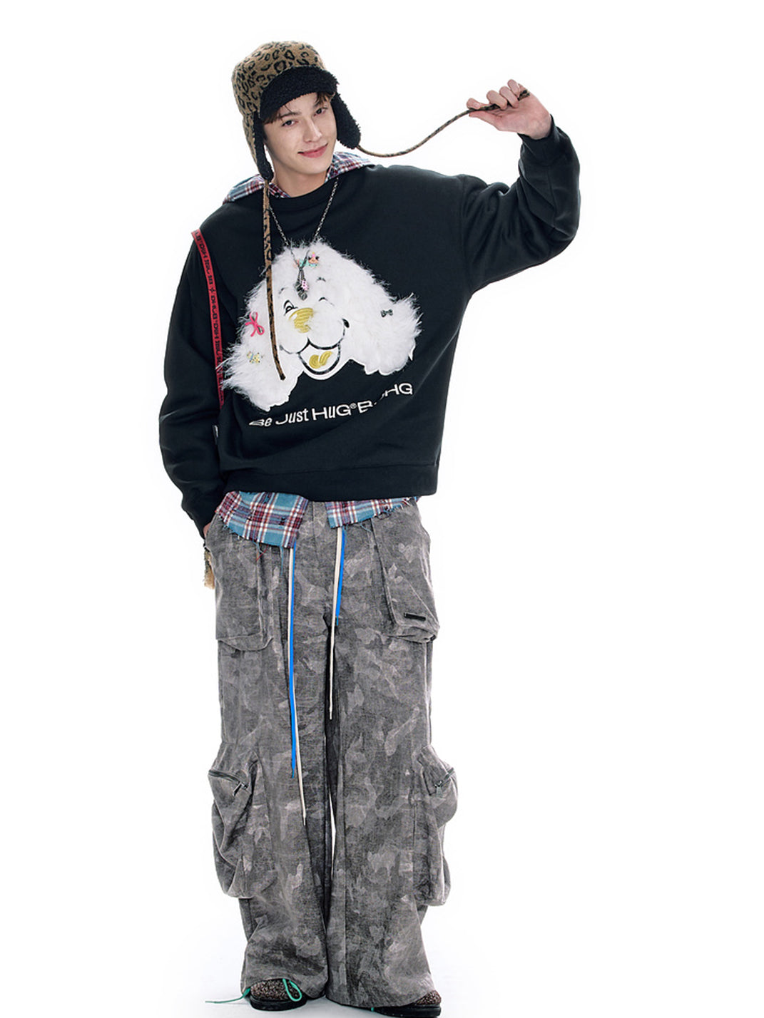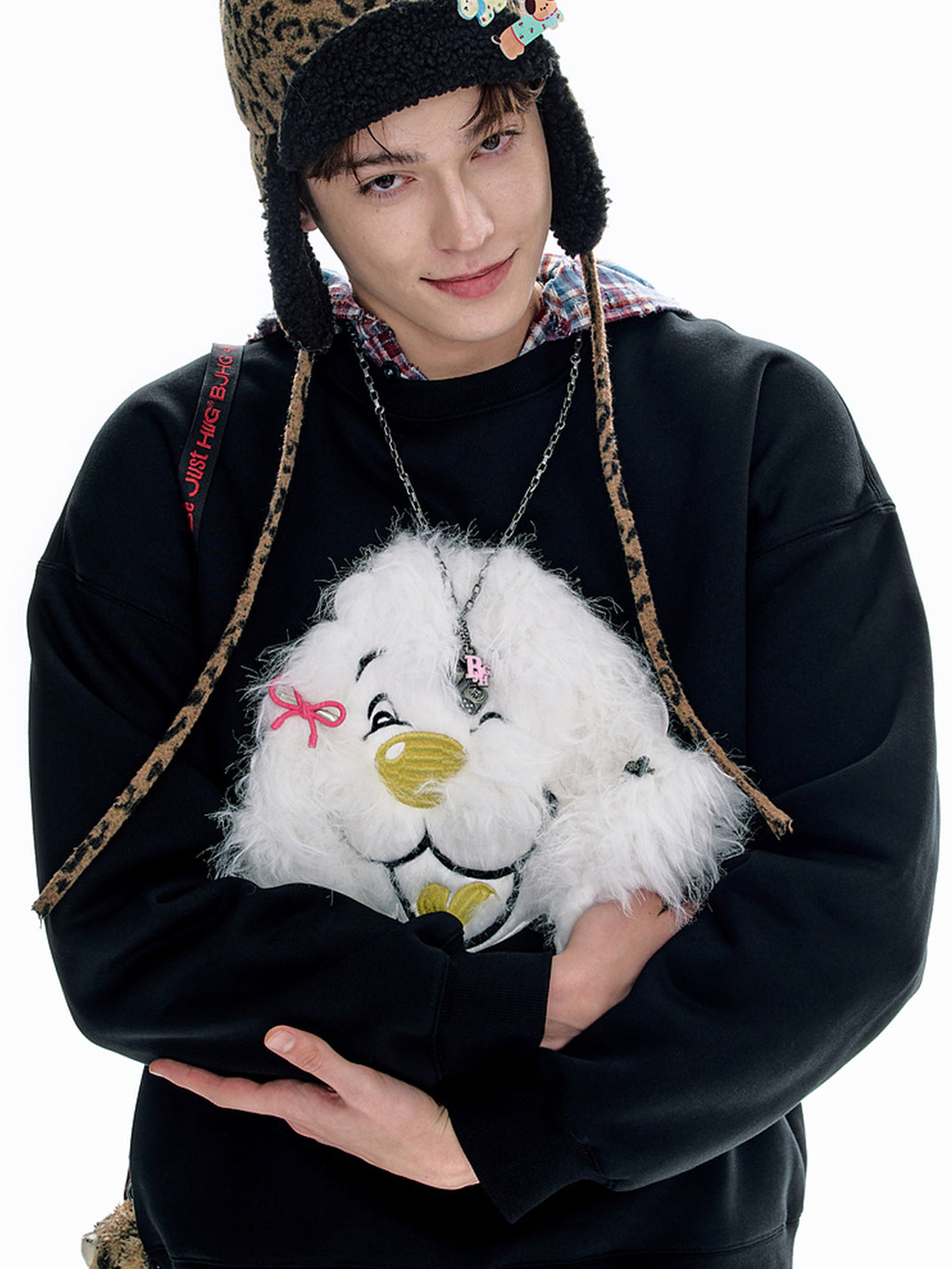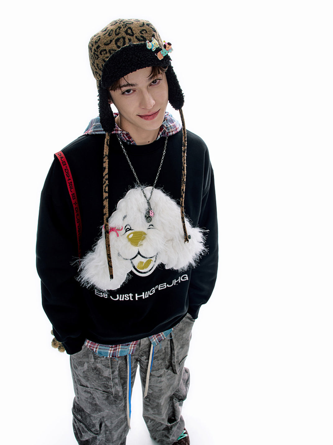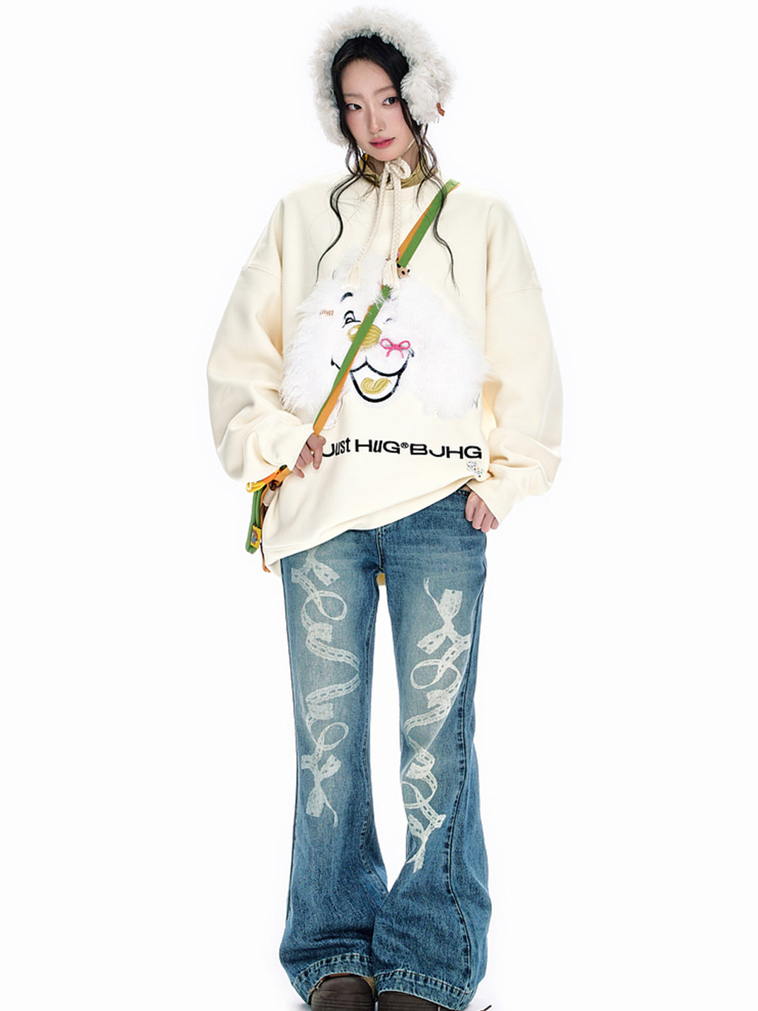 BJHG | Fun Fleece Sweatshirt with Embroidered Poodle Design