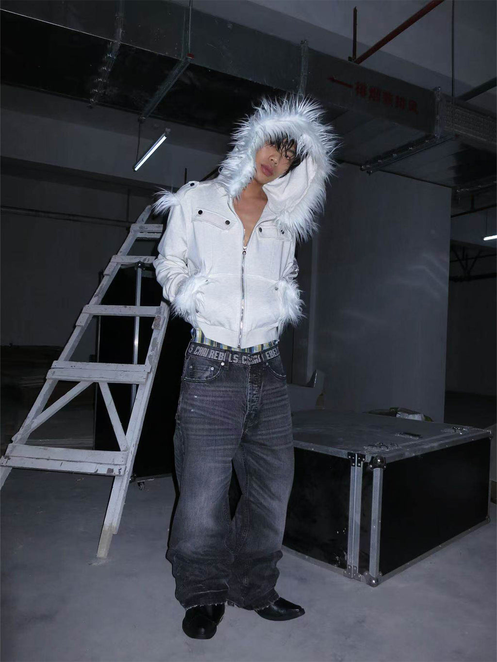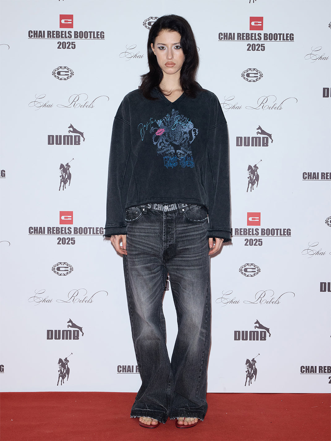CHAI | Washed Cat Whisker Embroidered Waistband Jeans Skip to content