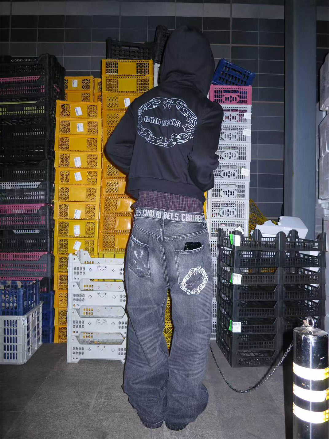 CHAI | Washed Cat Whisker Embroidered Waistband Jeans