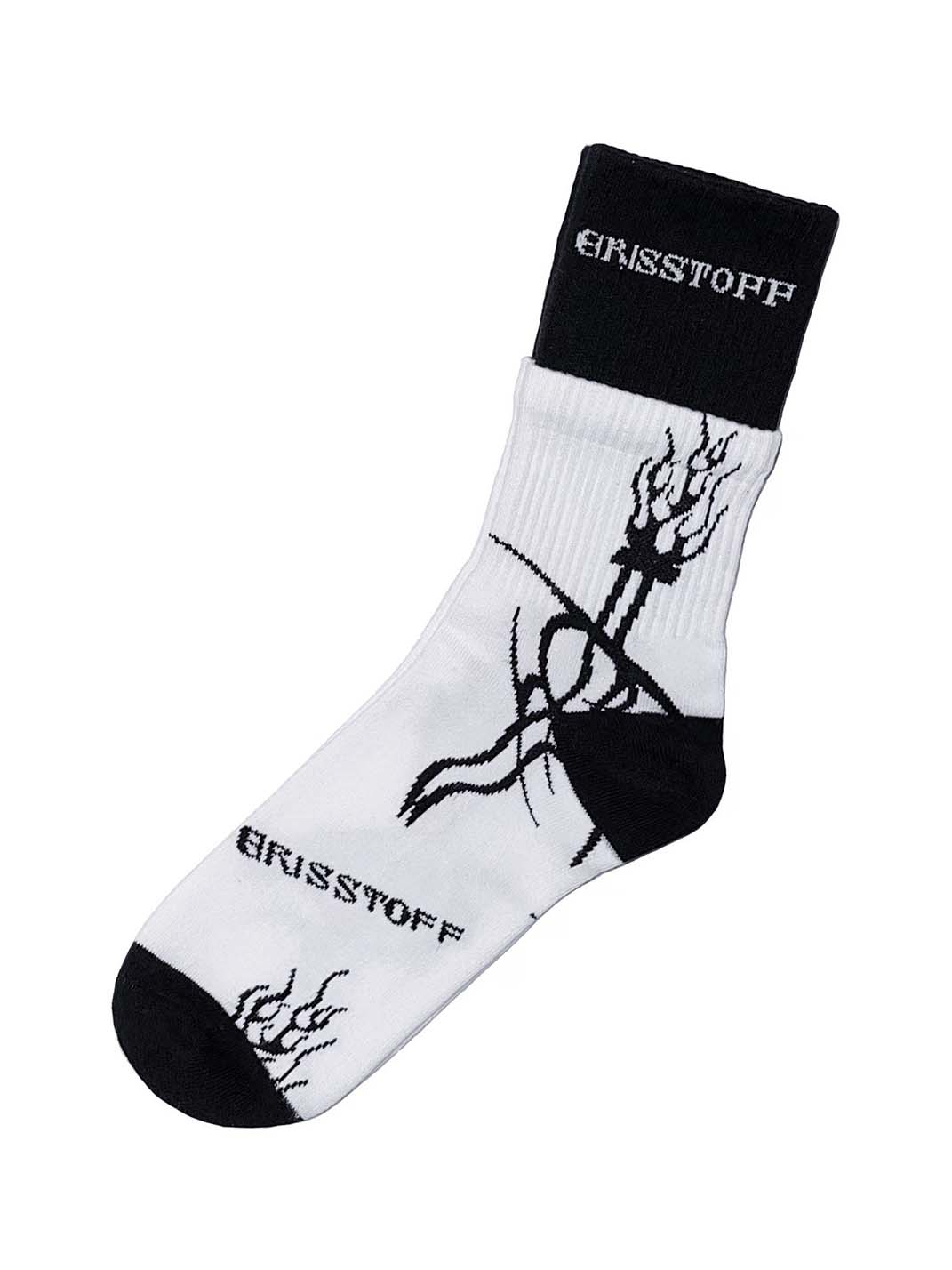 CYCYCY | Black And White Color-Blocked Flame Sword Athletic Socks