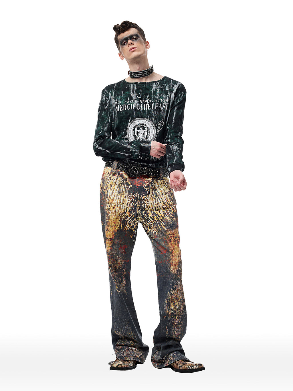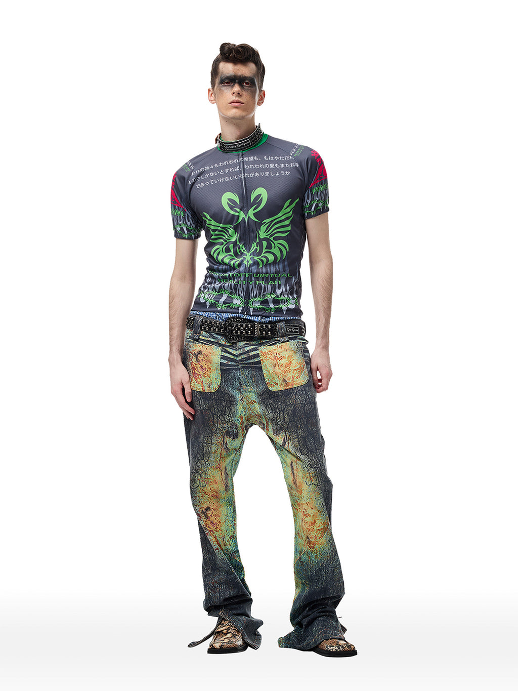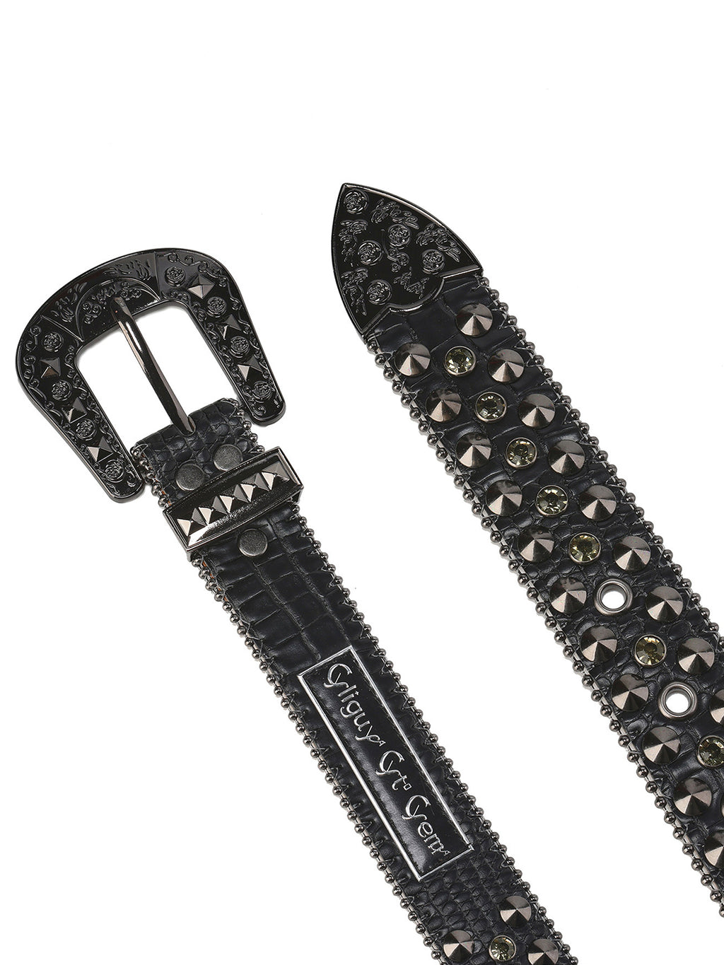 CYCYCY | Crocodile-Patterned Black Diamond Studded Belt