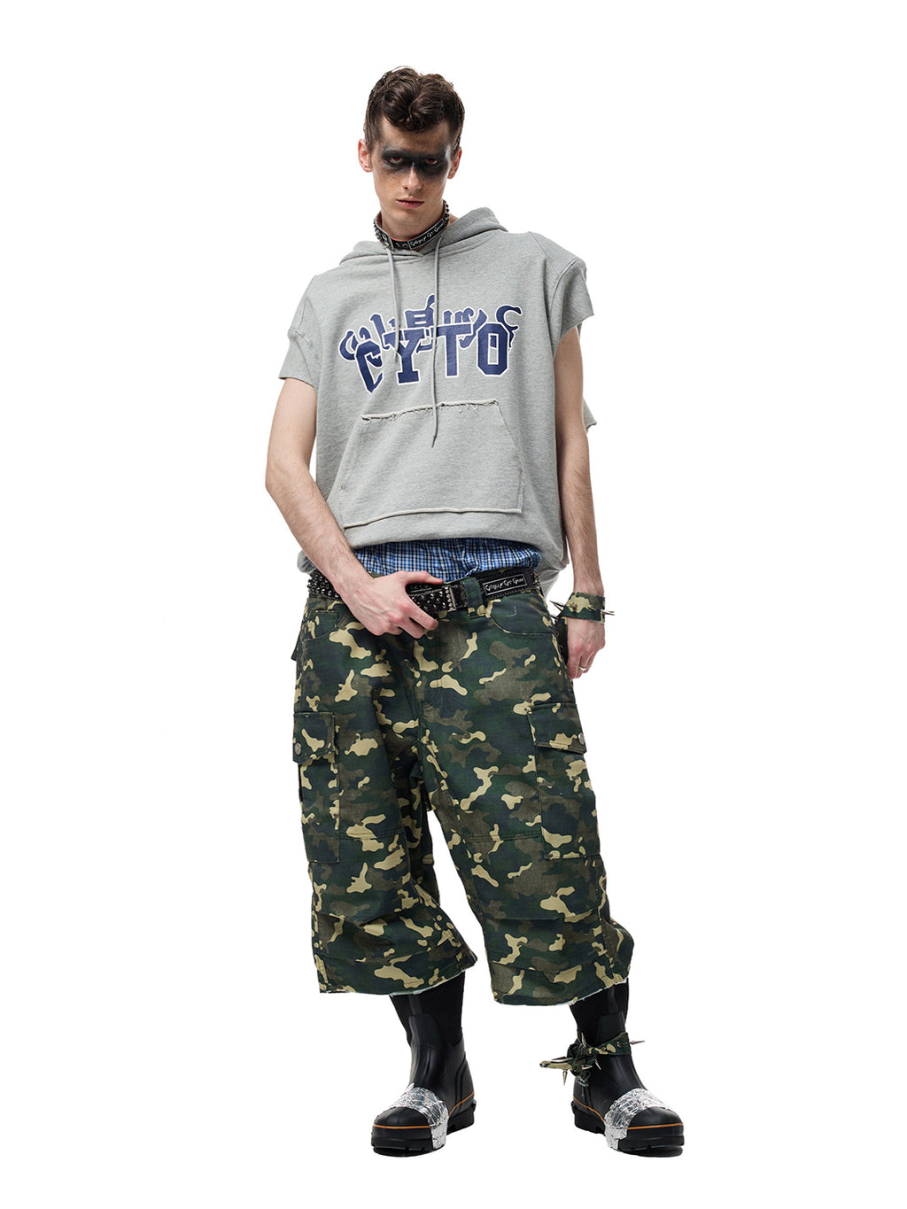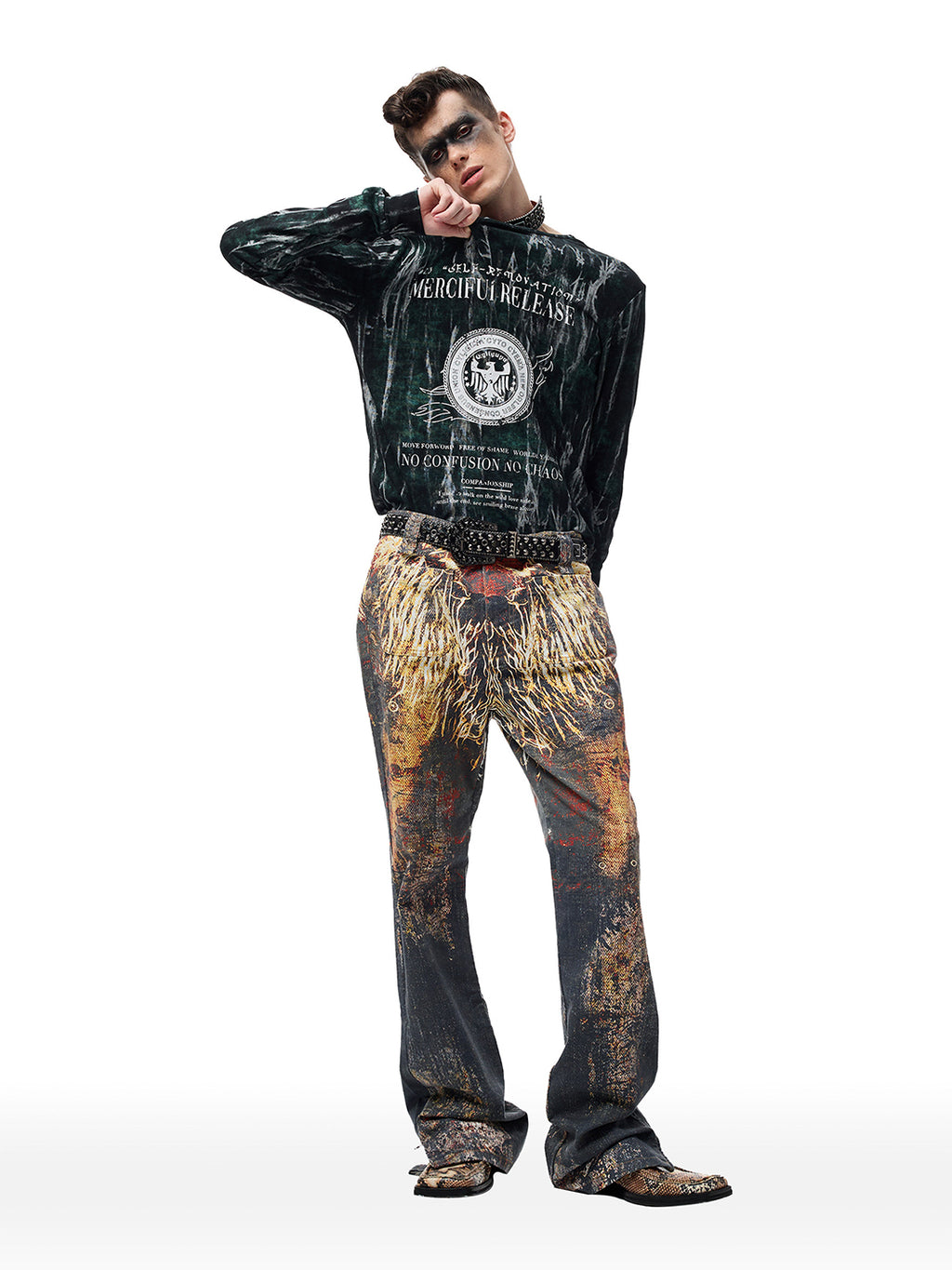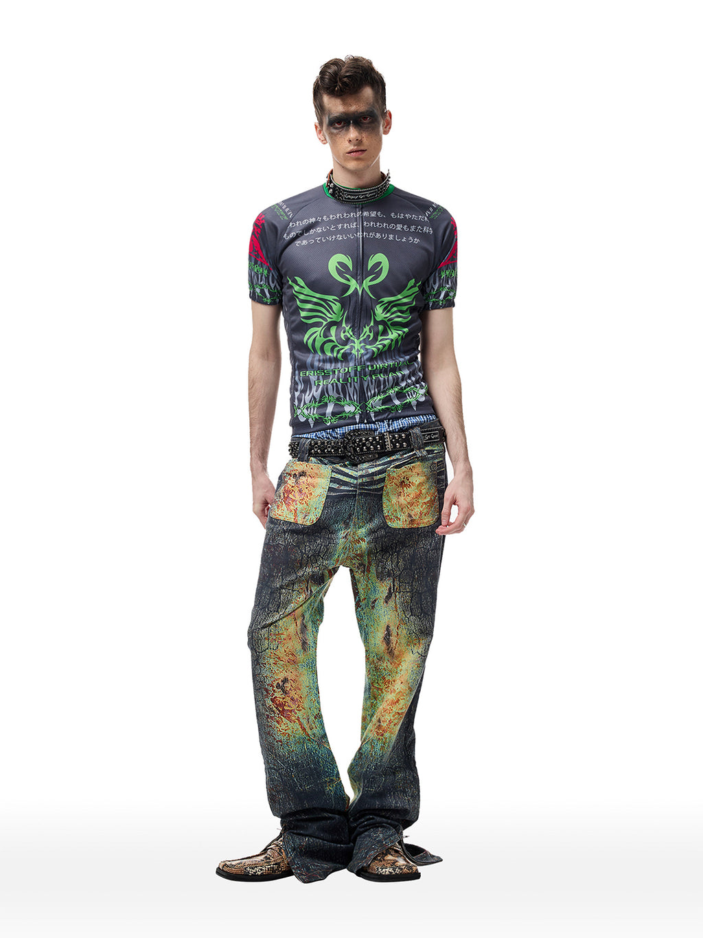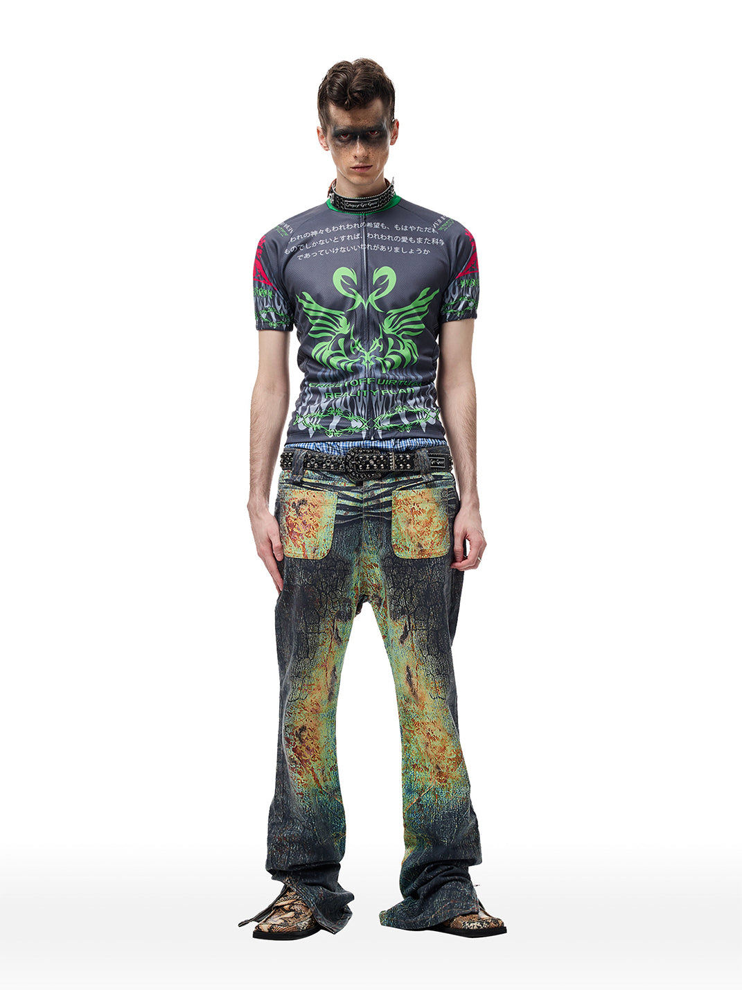 CYCYCY | Crocodile-Patterned Black Diamond Studded Belt