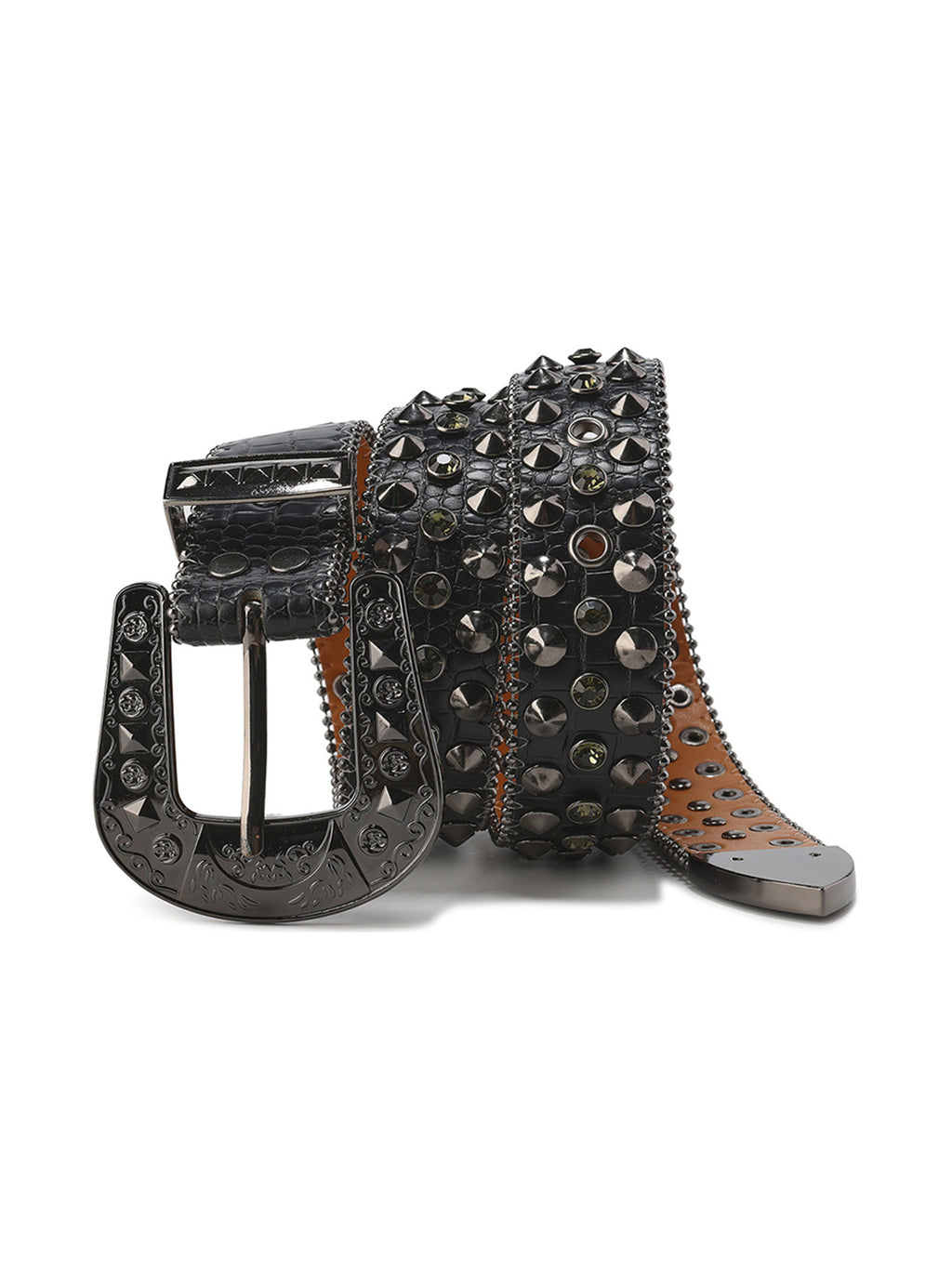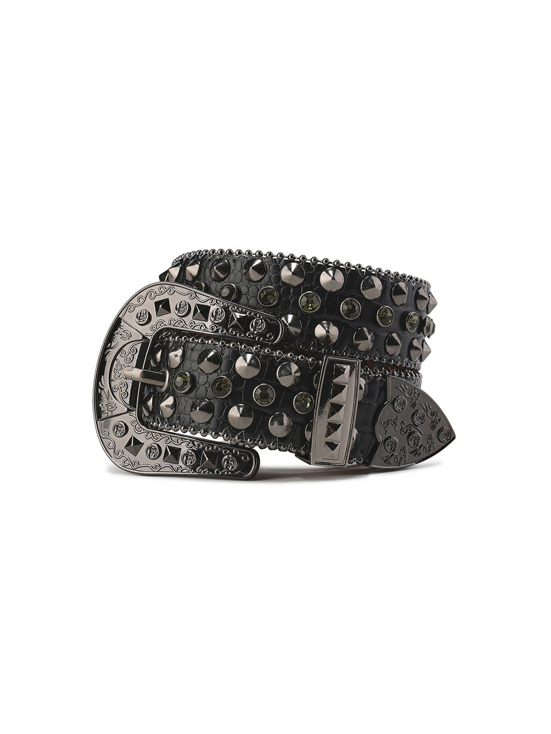 CYCYCY | Crocodile-Patterned Black Diamond Studded Belt Skip to content