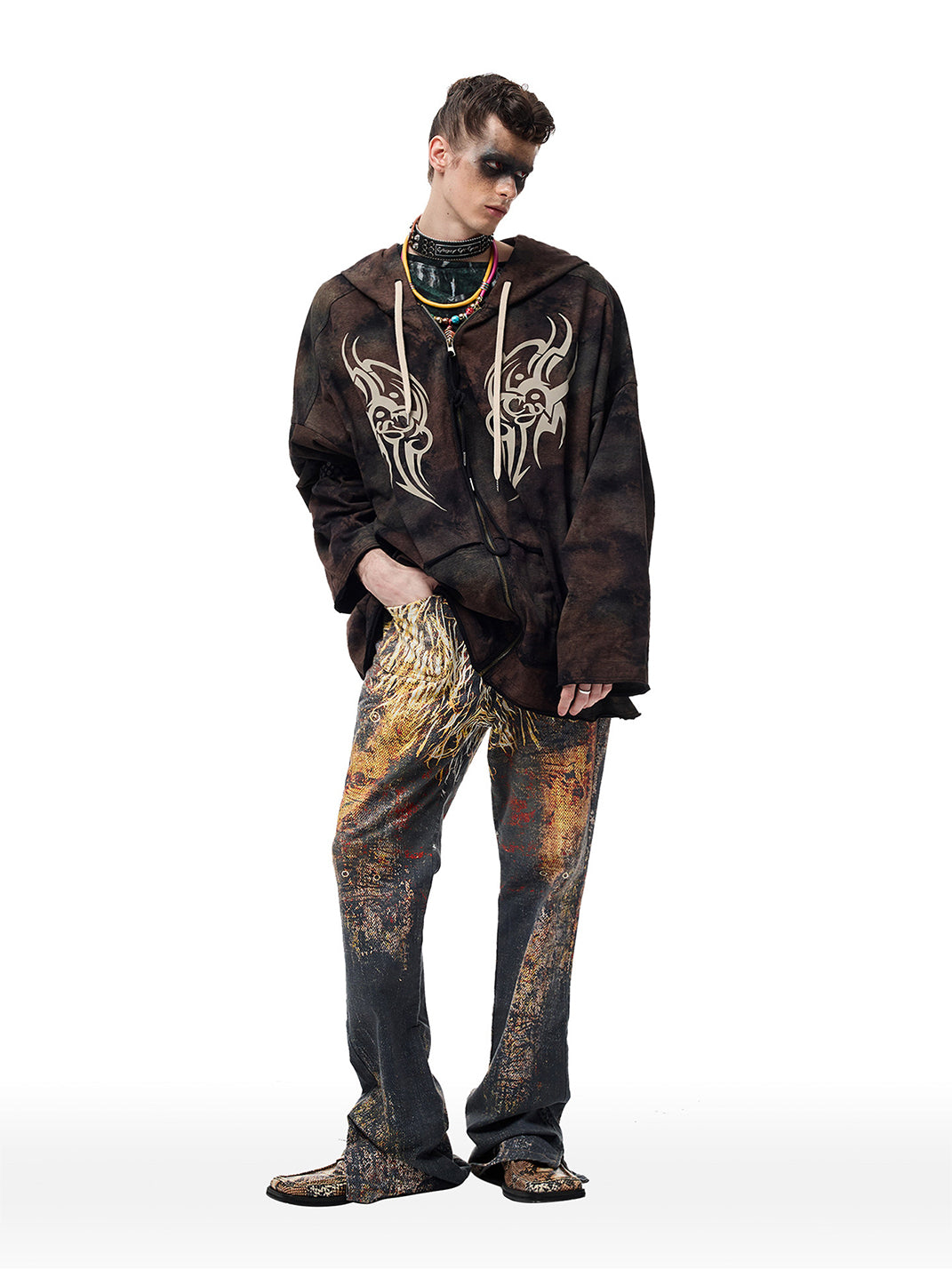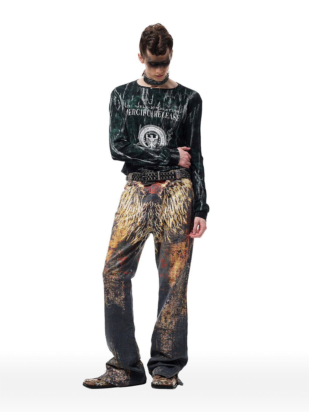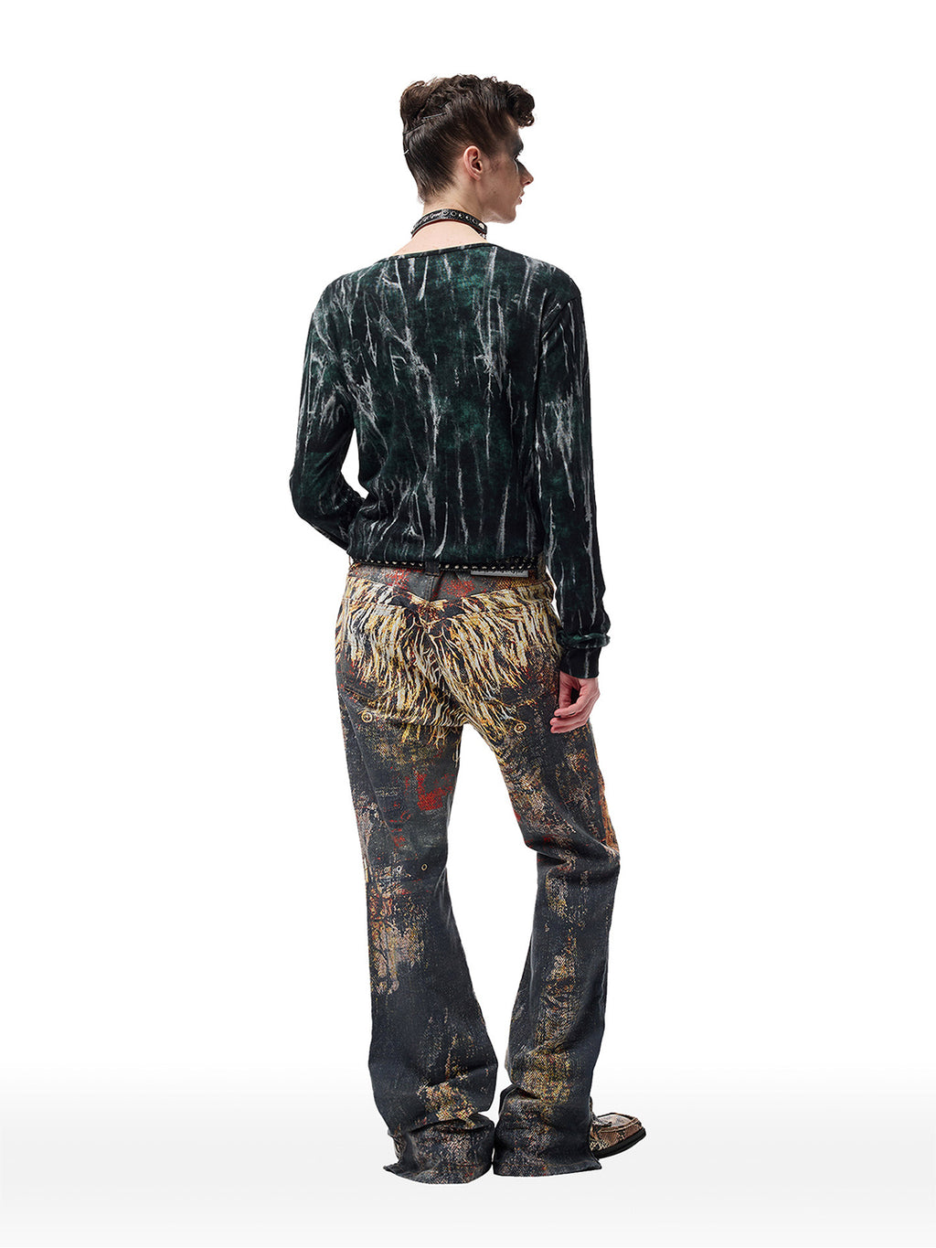 CYCYCY | Feather Print Flared Jeans Skip to content