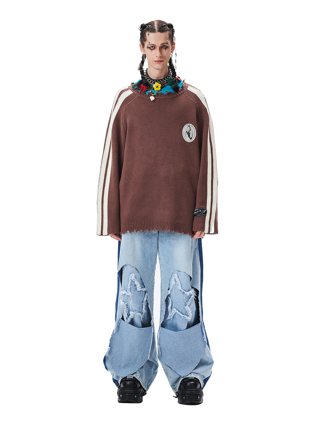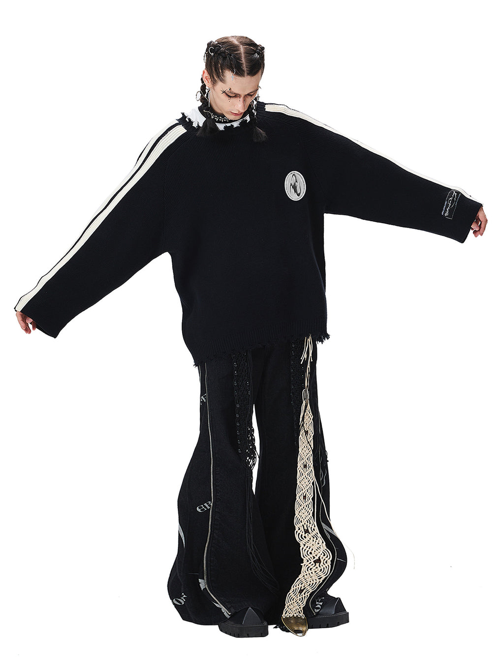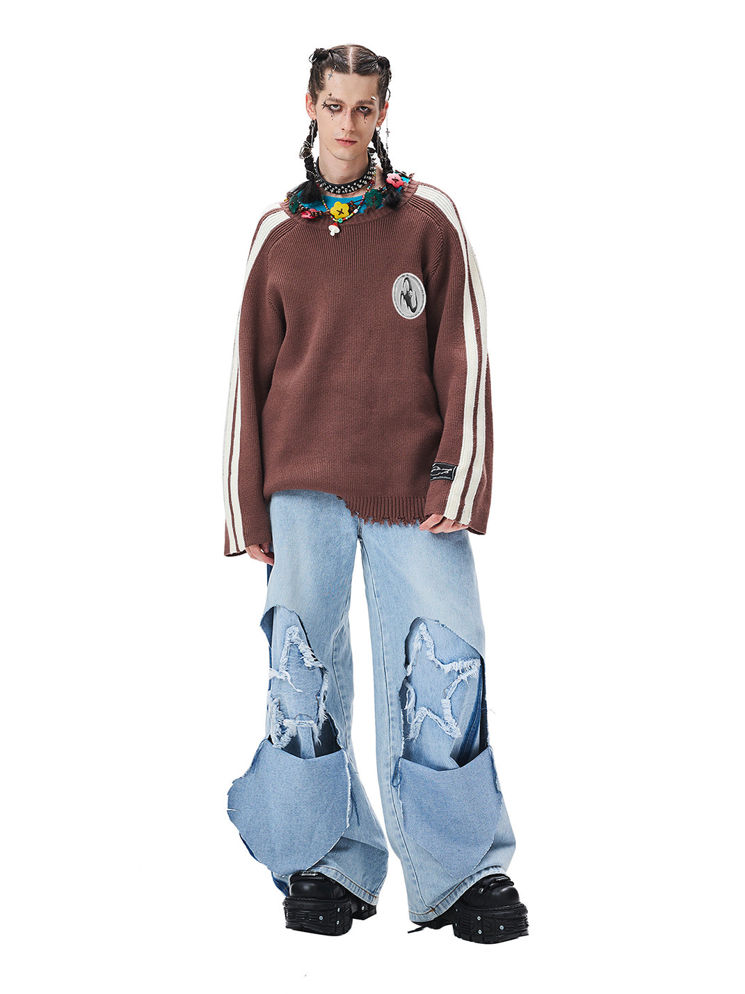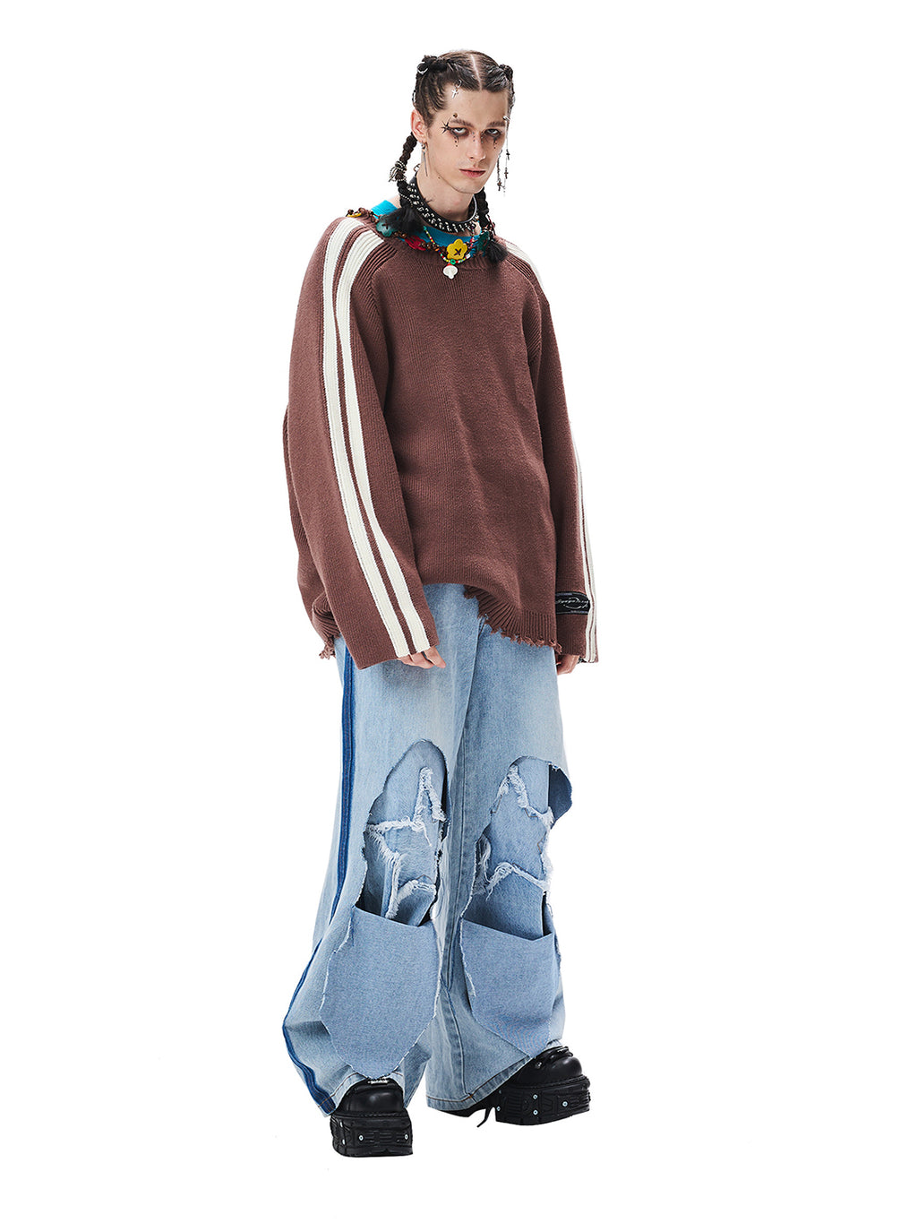CYCYCY | Punk Ripped Retro Color-Blocked Sweater Skip to content